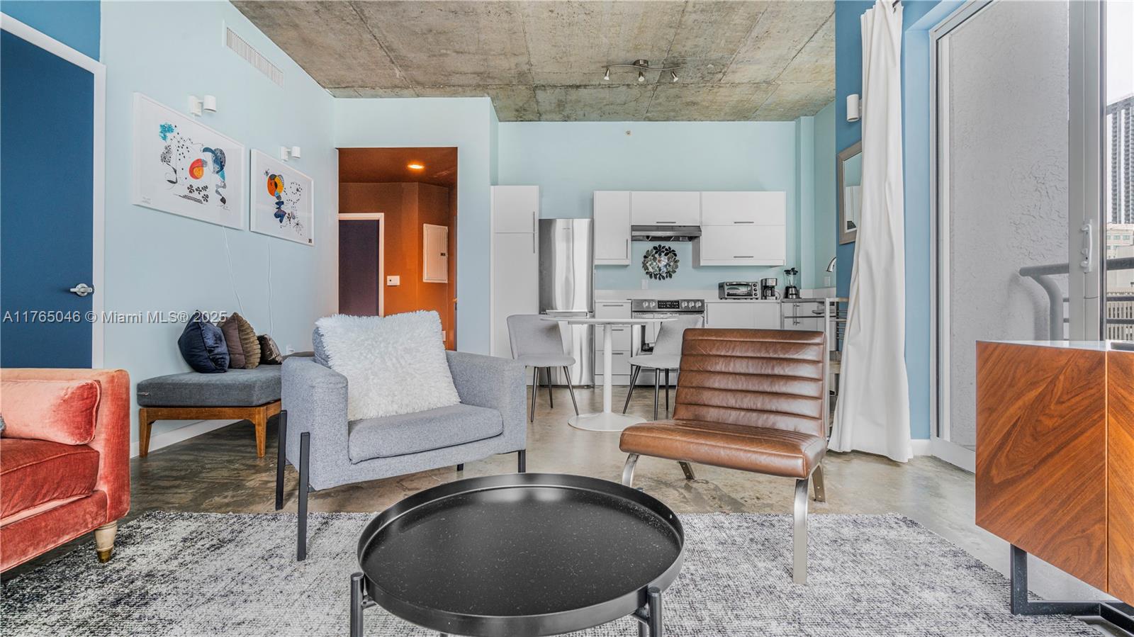 Spectacular corner unit renovated with artistic flare. Only two units on this floor. This is a must see 2 bed/ 1 bath spacious apartment, high 10FT ceilings, polished concrete floor, new kitchen with stainless steel appliances, new in unit washer/dryer & water heater. Building amenities feature a private rooftop pool, resident gym with view of the Miami skyline, additional ground pool with social area, sauna, club room lounge for work and socializing, 24/7 front desk & security, and a municipal parking garage available. Walking distance to Bayside. Located in the heart of Downtown Miami, next to Metro Mover stop, easy access to MDCC, Miami Arena, Performance Arts Center, Brickell, Design District, and more! Short-term rentals allow 30 days minimum. Rented until 11/30/2025 at $3,000 a month