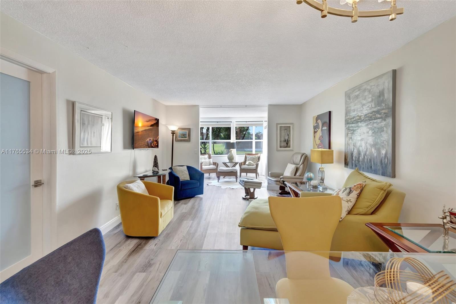 Stunning 1-bedroom, 1.5-bathroom ground-floor unit with a breathtaking view of the 6th hole of the golf course. Move-in ready with elegant vinyl and ceramic flooring throughout,Fully furnished. a convenient Murphy bed in the Florida room for guests. Enjoy a newly renovated building with a brand-new roof and elevator. The vibrant clubhouse offers exceptional amenities, including 3 pools, tennis courts, a barbecue area, and more. Prime location with easy access to expressways, shopping, and entertainment. Don't miss this opportunity!
