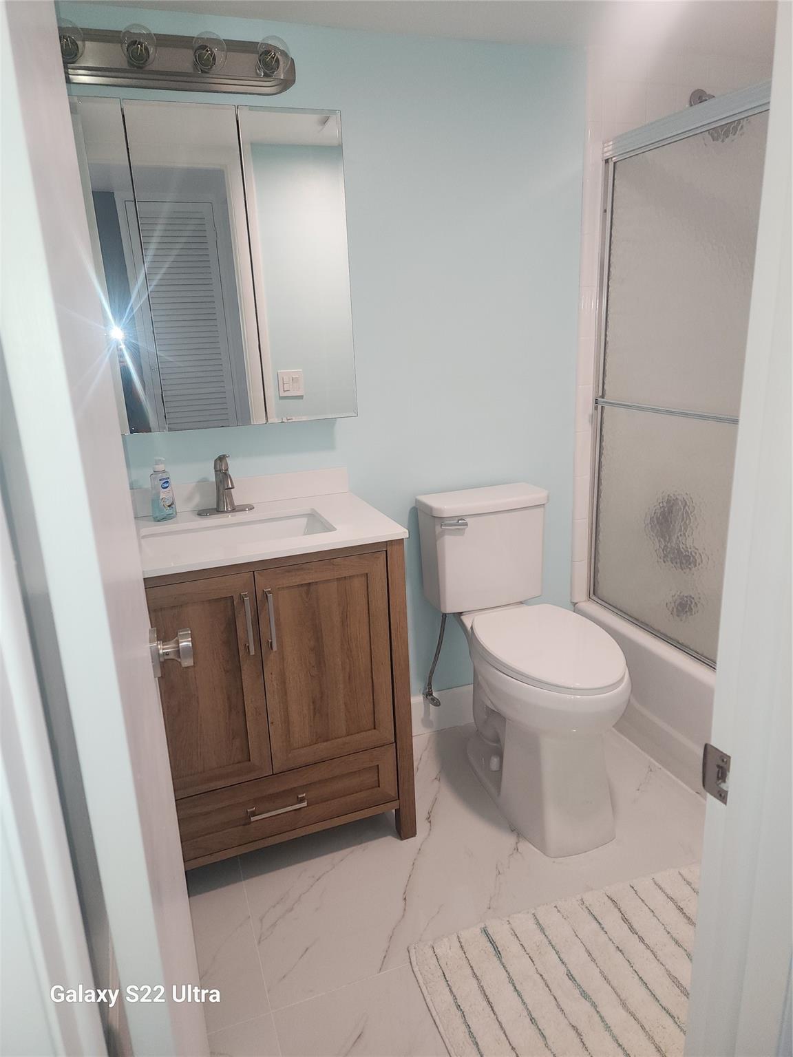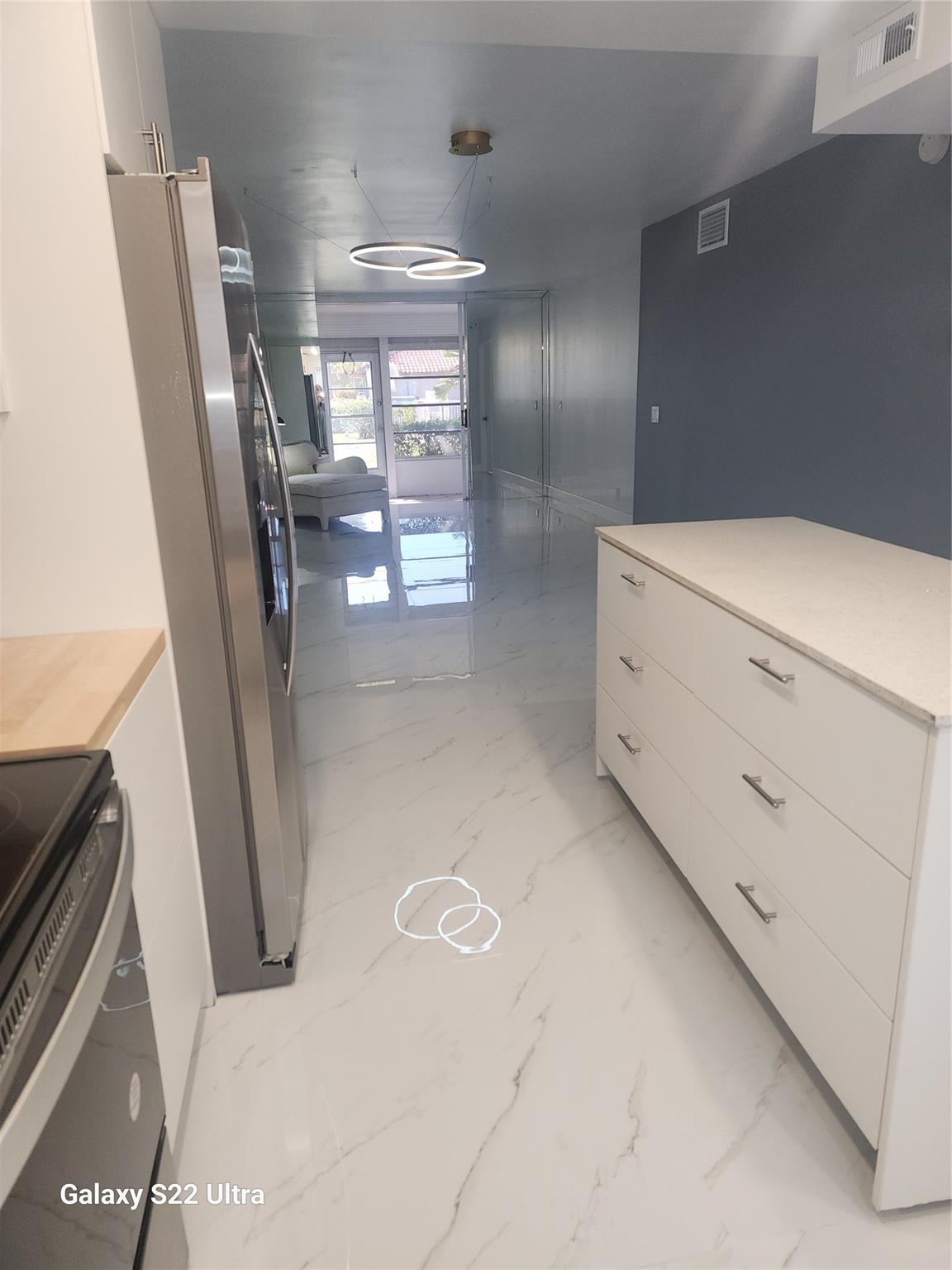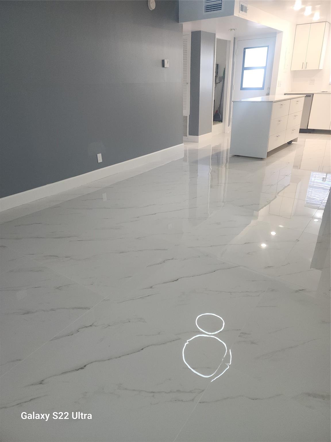 Renovated and Ready! Enjoy the comforts & convenience of this spacious 2 bed 2 bath 1st floor unit in North Gardens a 55 + community located minutes from Deerfield Beach! Park by your front door and walk into the open kitchen with granite countertops, new appliances and beautiful 32"x32" porcelain tile floors throughout. The dining room and living room are open and you can enjoy the enclosed patio that overlooks the courtyard and swimming pool. The Master bedroom has beautiful mirrored barn doors one opens into the Master bathroom that has an oversized jacuzzi tub, vanity with marble top, brass fixtures and smart toilet. The other door opens into the master bedroom closet and continues into the laundry area, with access to the guest bedroom and updated guest bathroom. A must see!