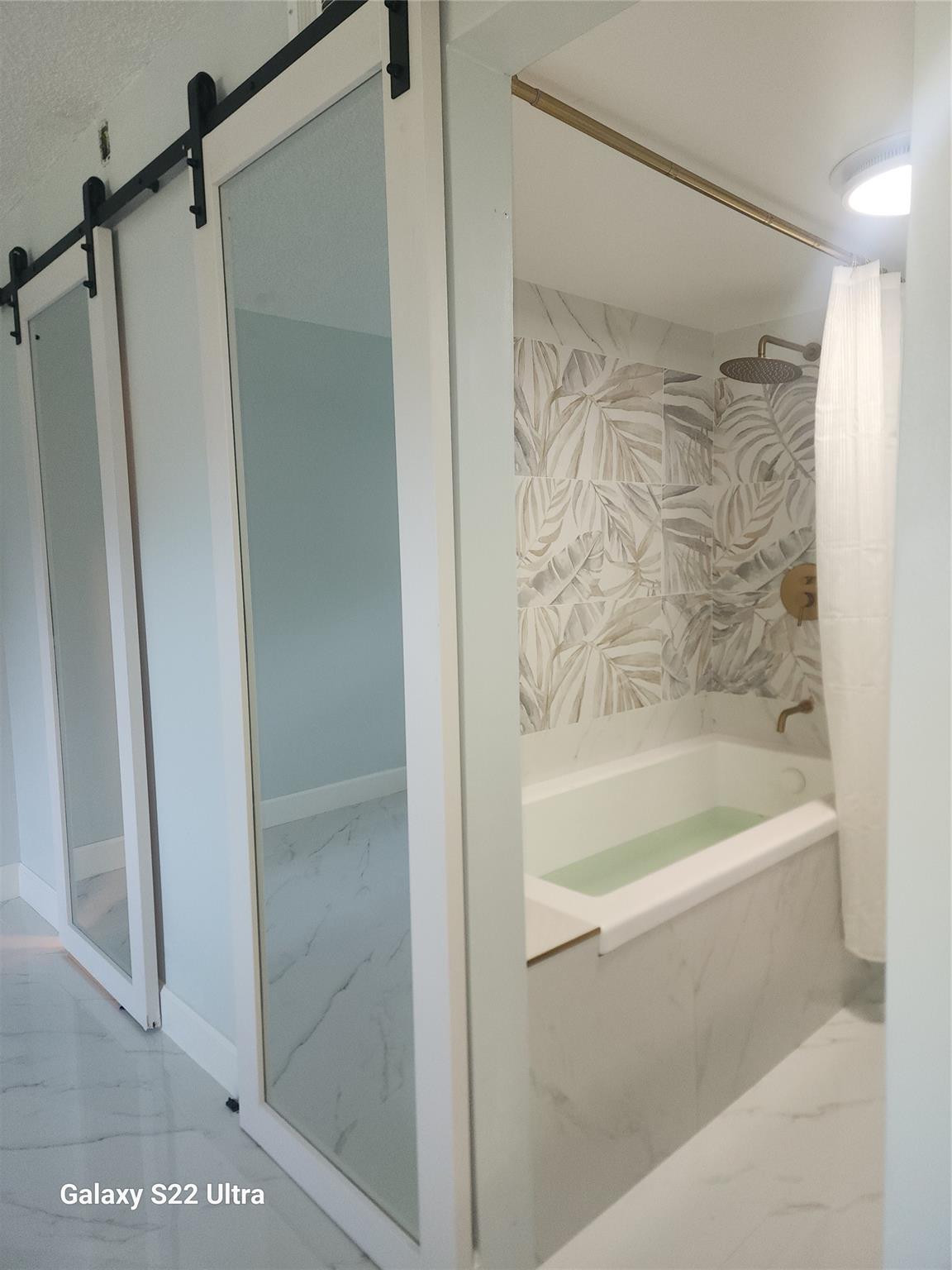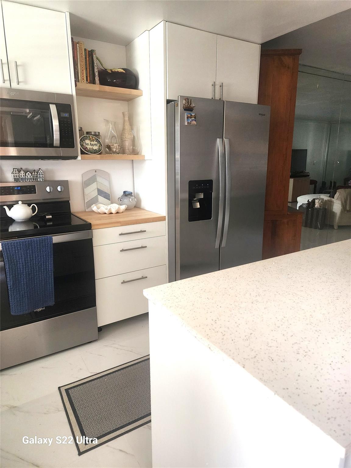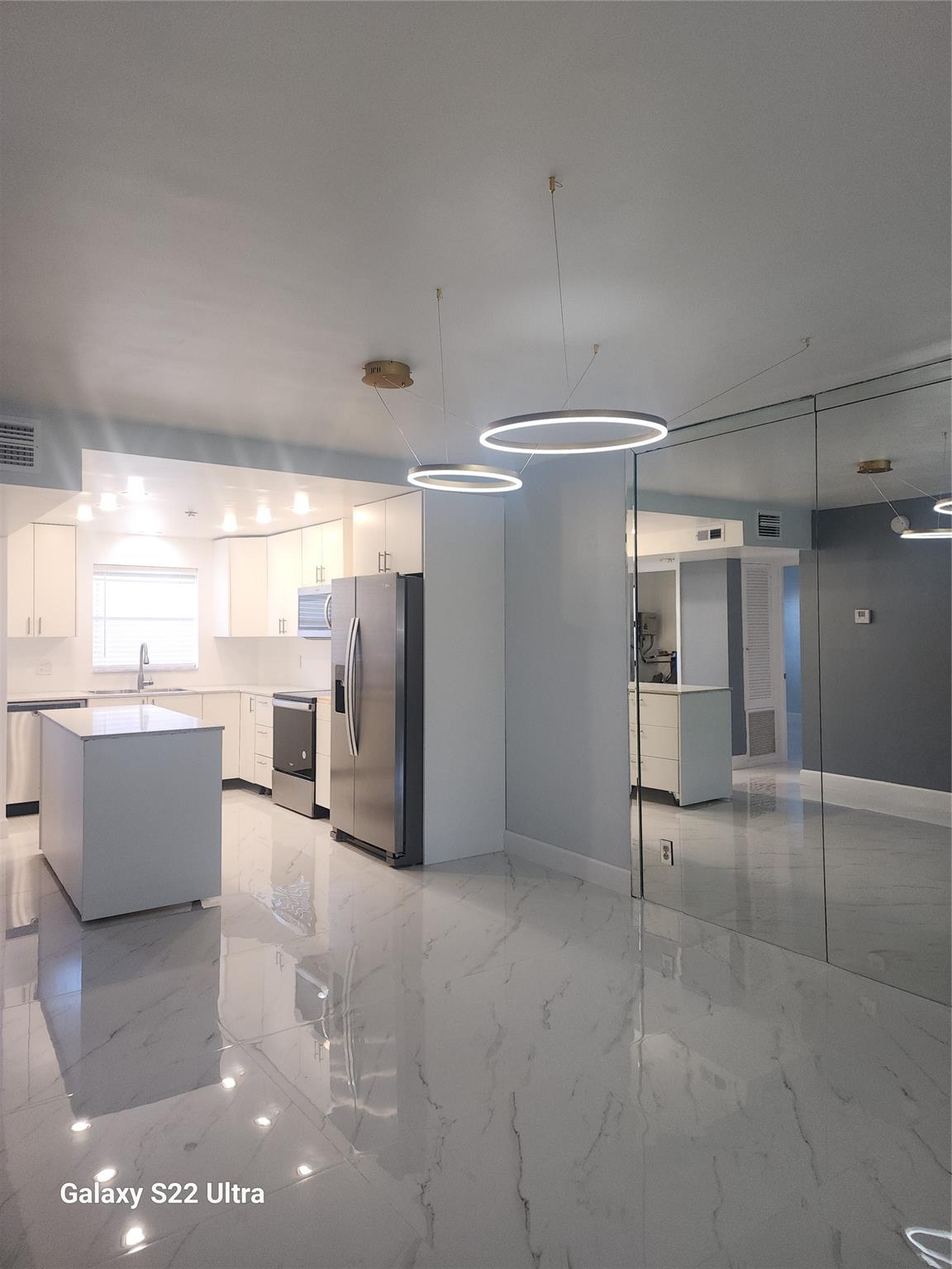 Renovated and Ready! Enjoy the comforts & convenience of this spacious 2 bed 2 bath 1st floor unit in North Gardens a 55 + community located minutes from Deerfield Beach! Park by your front door and walk into the open kitchen with granite countertops, new appliances and beautiful 32"x32" porcelain tile floors throughout. The dining room and living room are open and you can enjoy the enclosed patio that overlooks the courtyard and swimming pool. The Master bedroom has beautiful mirrored barn doors one opens into the Master bathroom that has an oversized jacuzzi tub, vanity with marble top, brass fixtures and smart toilet. The other door opens into the master bedroom closet and continues into the laundry area, with access to the guest bedroom and updated guest bathroom. A must see!