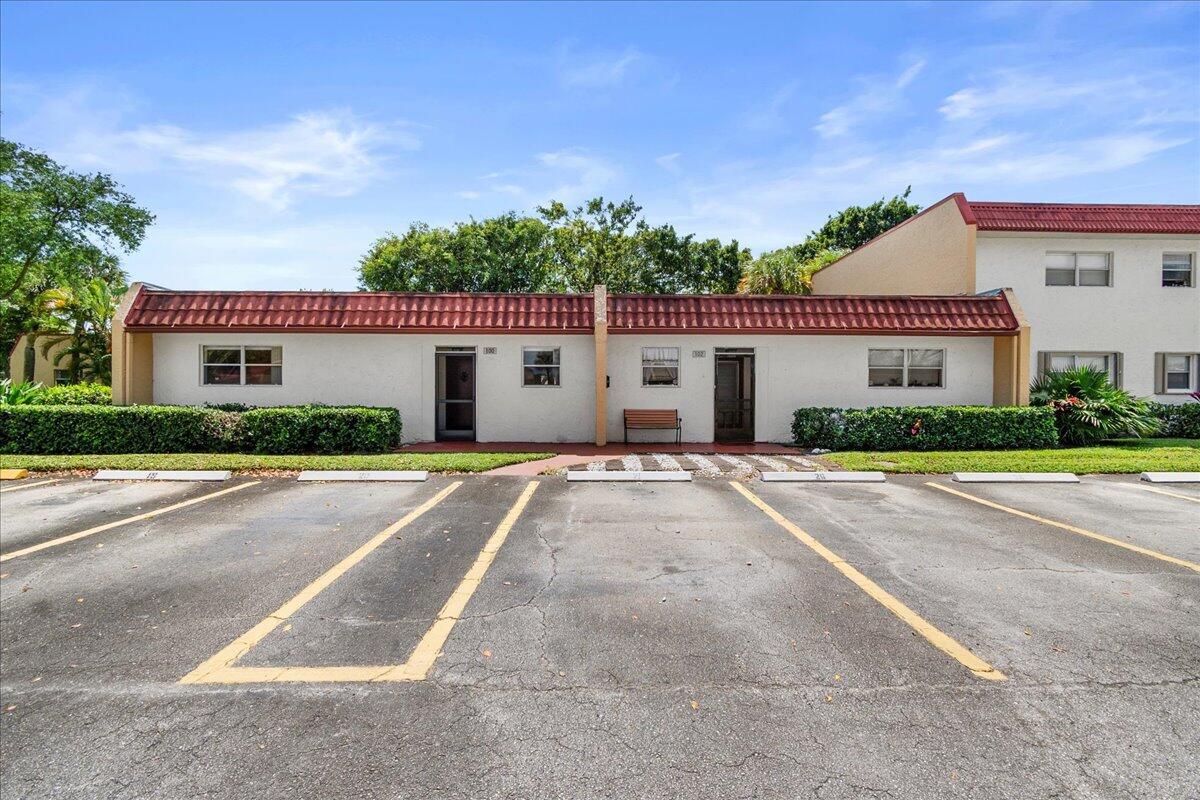 Don't miss this charming, corner, light & bright, water view villa! Great location with easy access from the secure, manned gated entry. Plenty of adjacent guest parking makes entertaining guests a breeze. Beautifully updated kitchen with stunning quartz countertops, lovely modern shaker cabinets & designer backsplash. It is a pleasure to prepare a meal or enjoy your morning coffee. This former model with an expanded floor plan offers living, dining & family room plus an enclosed patio. All tiled living area,front to back split bedrooms are spacious and there are two updated baths. This villa has its own full size washer & dryer & there is plenty of storage. Neutral and well maintained this home is move in ready. The amenities and social opportunities all in your backyard are endless