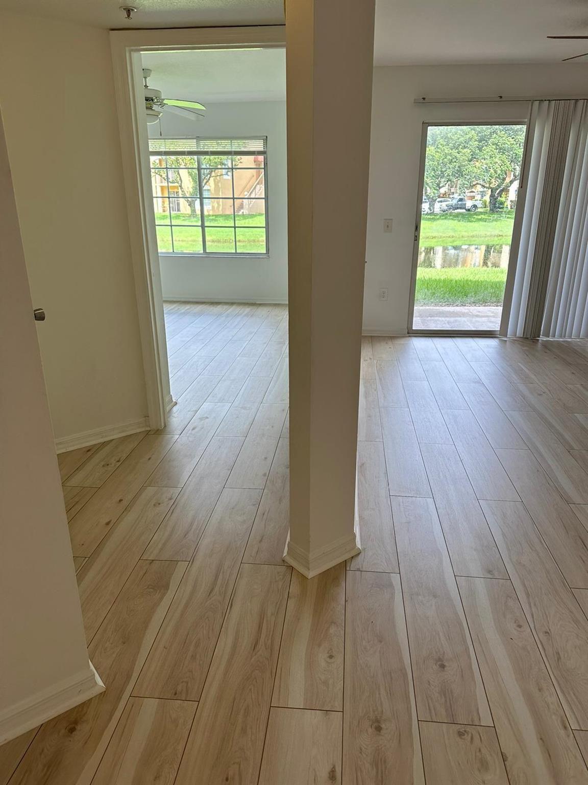 Welcoming home to this amazing lake front view at the stunning Emerald Isles! This first floor with fresh and new laminate living floor, two-Bedroom, two-Bathroom haven boasts a breathtaking lake view that will leave you in awe every single day. Imagine waking up to the serene sight of the glistening fountain lake from the comfort of your own bedroom. New laminate floors throught out, new fridge, oven and A/C (Nov 2024). This condo offers the perfect blend of comfort and convenience, with the added benefit of water, internet, lawn care and cable being included in the monthly HOA fee. Gated Community with all resort style amenities: Pool, Sauna, Tennis Ct., Fitness Center, Billardsroom and much more!
