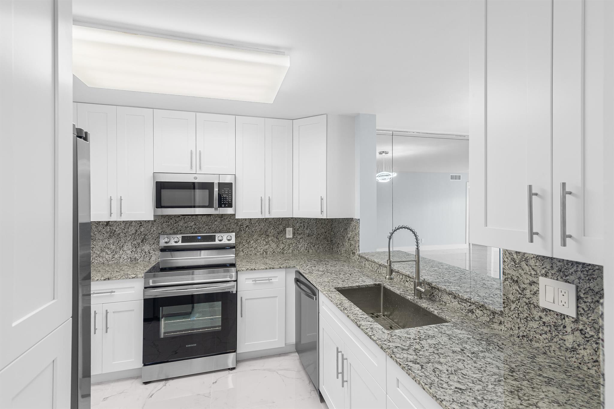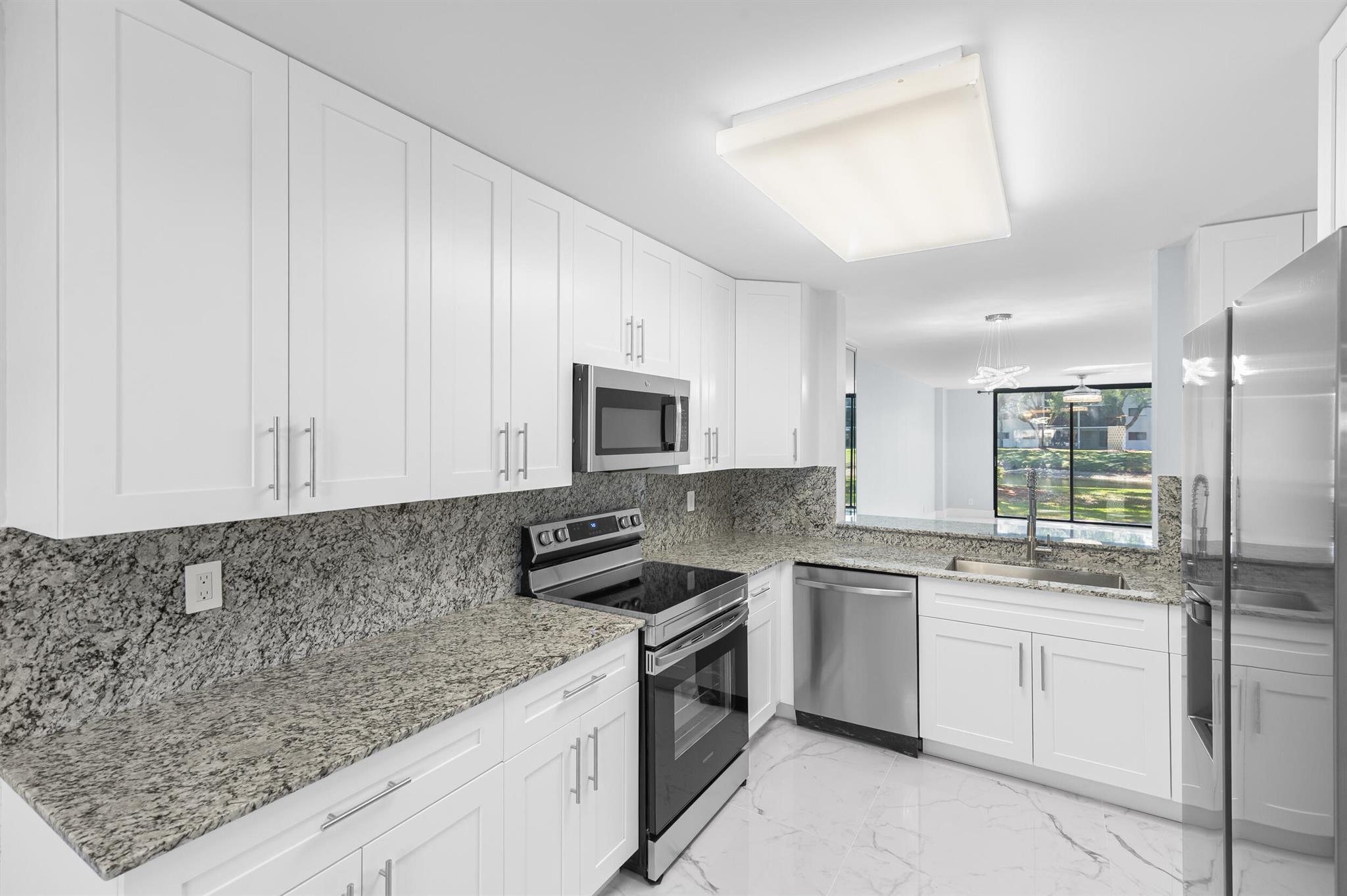 Stunning 2-Bed, 2-Bath Ground-Floor Condo - Lakes of Delray (55+ Community)! This absolutely gorgeous, fully renovated unit features the largest Water's Edge floor plan with breathtaking water views from the living room and master bedroom. Enjoy resort-style living just steps from the satellite pool--walk out your front door and jump right in! Conveniently located near the residential Sims Road entrance for easy access. Move-in ready with no assessments (all paid for brand-new roof), a passed structural milestone inspection, and fully funded reserves. The chef's kitchen boasts top-of-the-line stainless steel appliances, white shaker cabinets, granite countertops & backsplash, plus a large pantry with eat-in space, making it perfect for cooking and entertaining. The open-concept living and