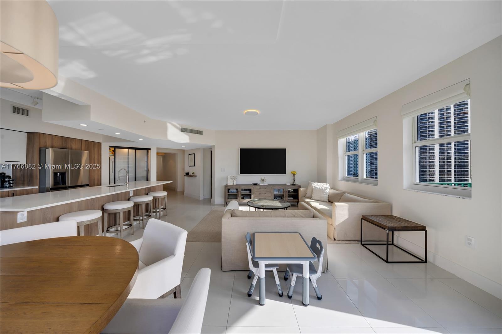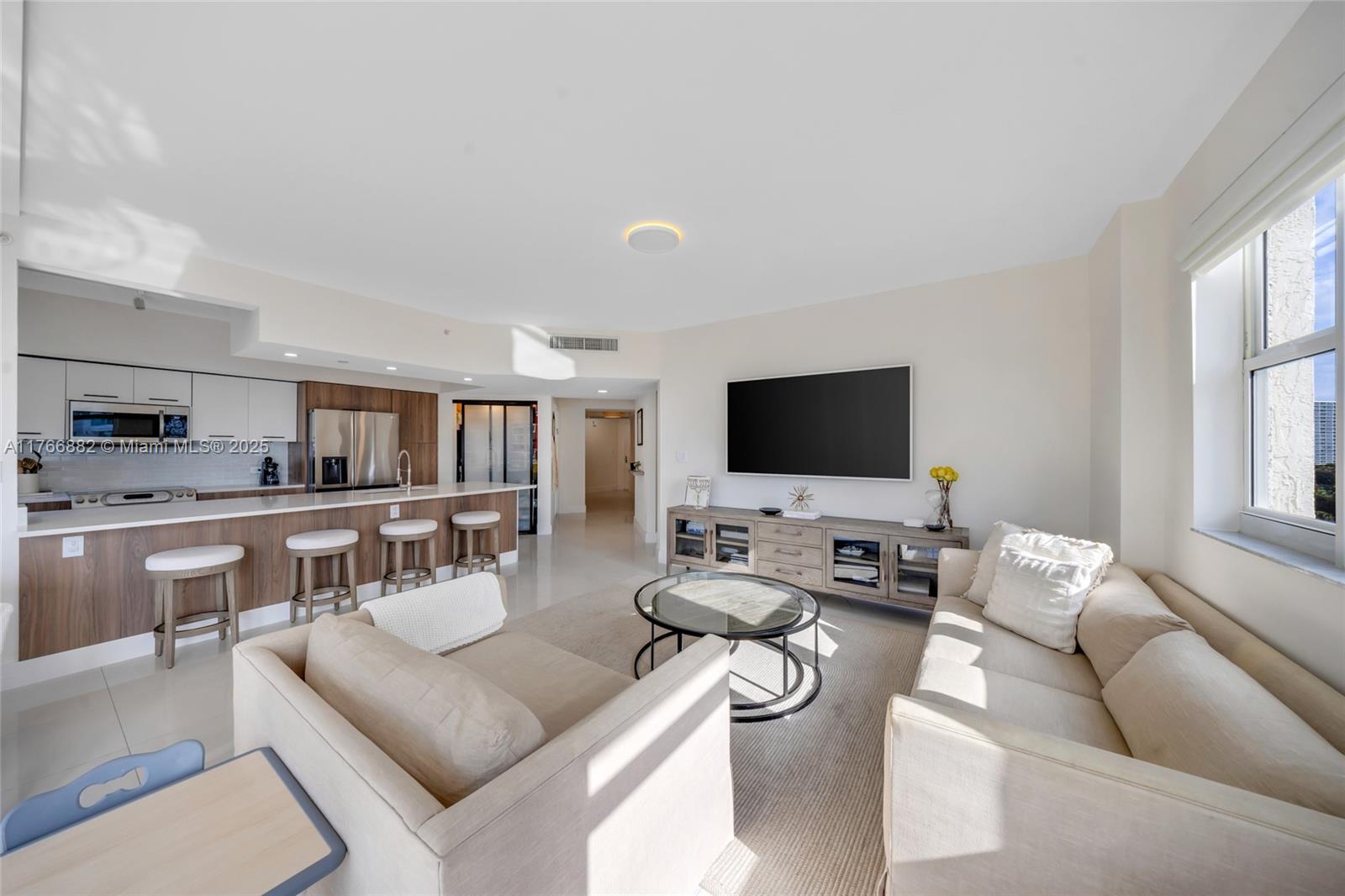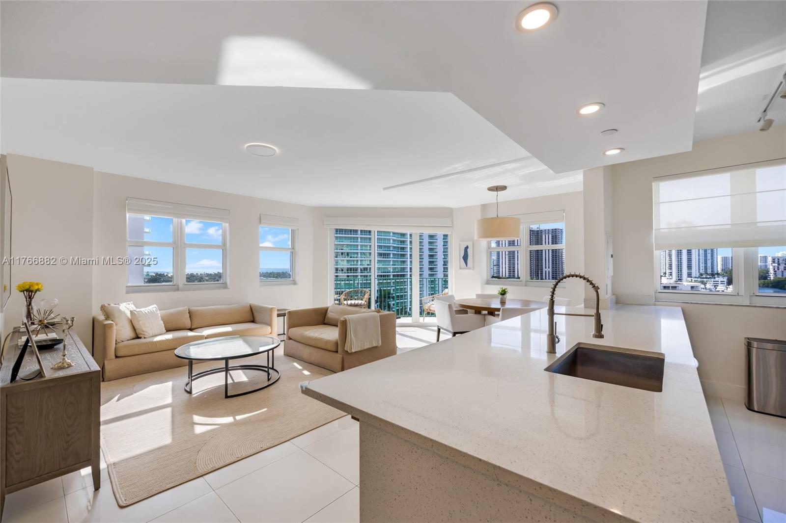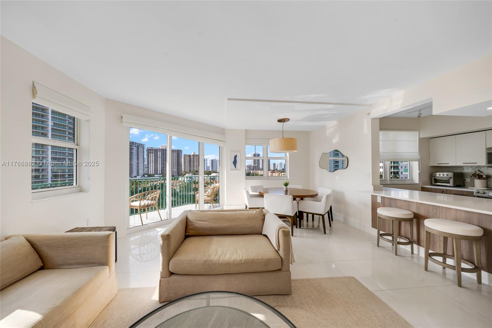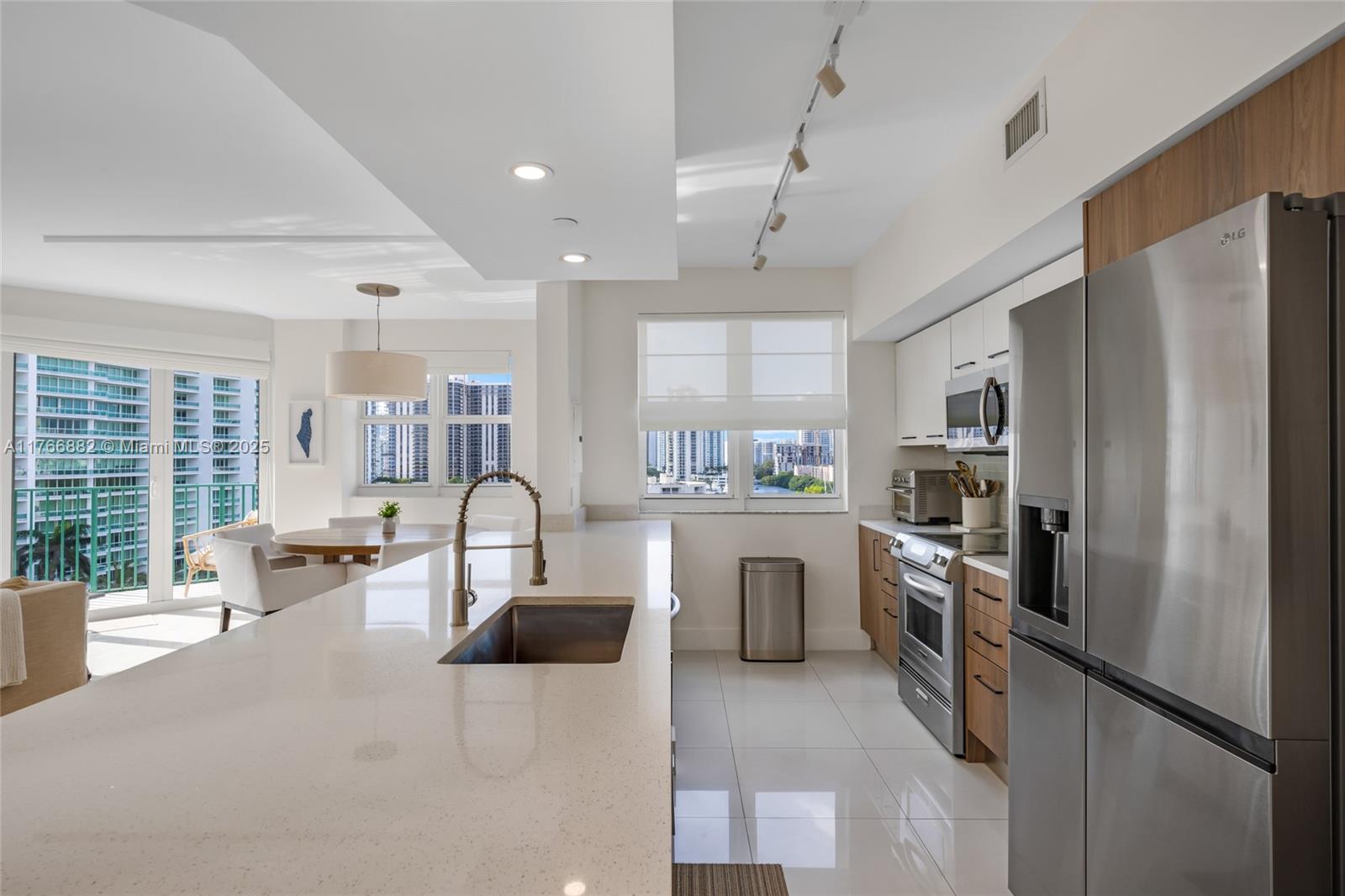 Wake up to breathtaking sunrises in this bright and spacious 3-bed, 3-bath corner condo located in the prestigious Turnberry Village. Offering 1,681 square feet of comfortable living space, this east-facing unit features tile flooring throughout, an open kitchen with updated sleek cabinets, quartz countertop, a newer refrigerator and microwave and custom closets throughout. Turnberry Village provides 24-hour manned guard gate, valet, and upscale amenities including an infinity-edge pool, spa, state-of-the-art fitness center, elegant party lounge, and billiard room. Unit comes with two covered parking spaces and private storage. There is even a house of worship on the premises. Property is conveniently located just minutes from the Aventura mall, fine dining and the beaches.