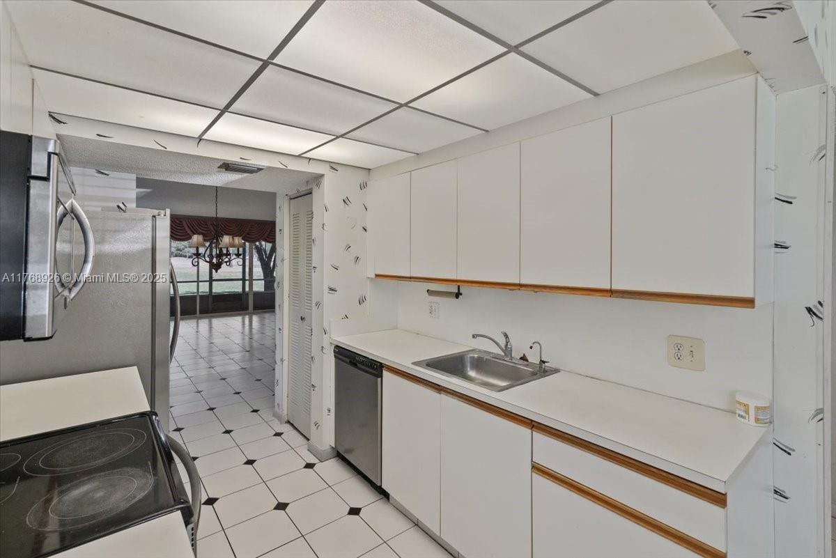 Beautiful views of golf course, this 2 bedroom/2 bath unit has over 1500 square feet of living. Open concept with lots of light and room to roam. Located on the first floor for easy access, enjoy South Florida living at its finest. Laundry inside unit. Century Village is an award-winning community for seniors with tons of amenities including, tennis, pool, clubhouse, theatre and even a market. Close to restaurants, places of worship and highways.