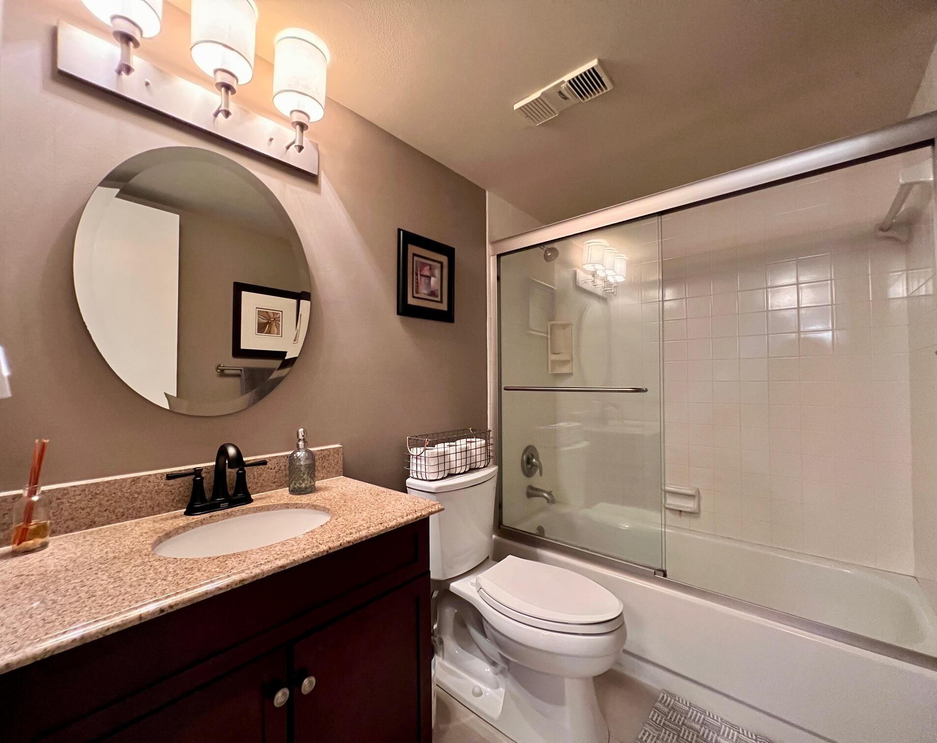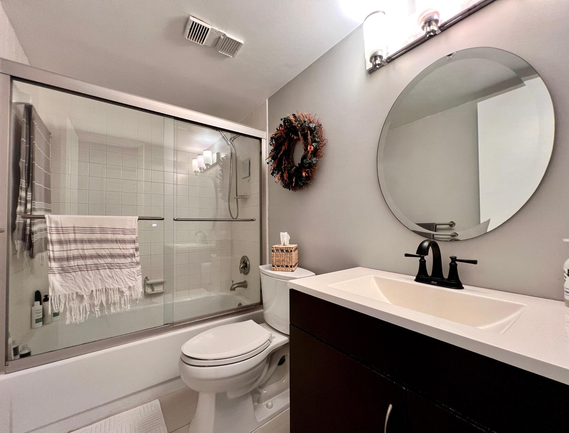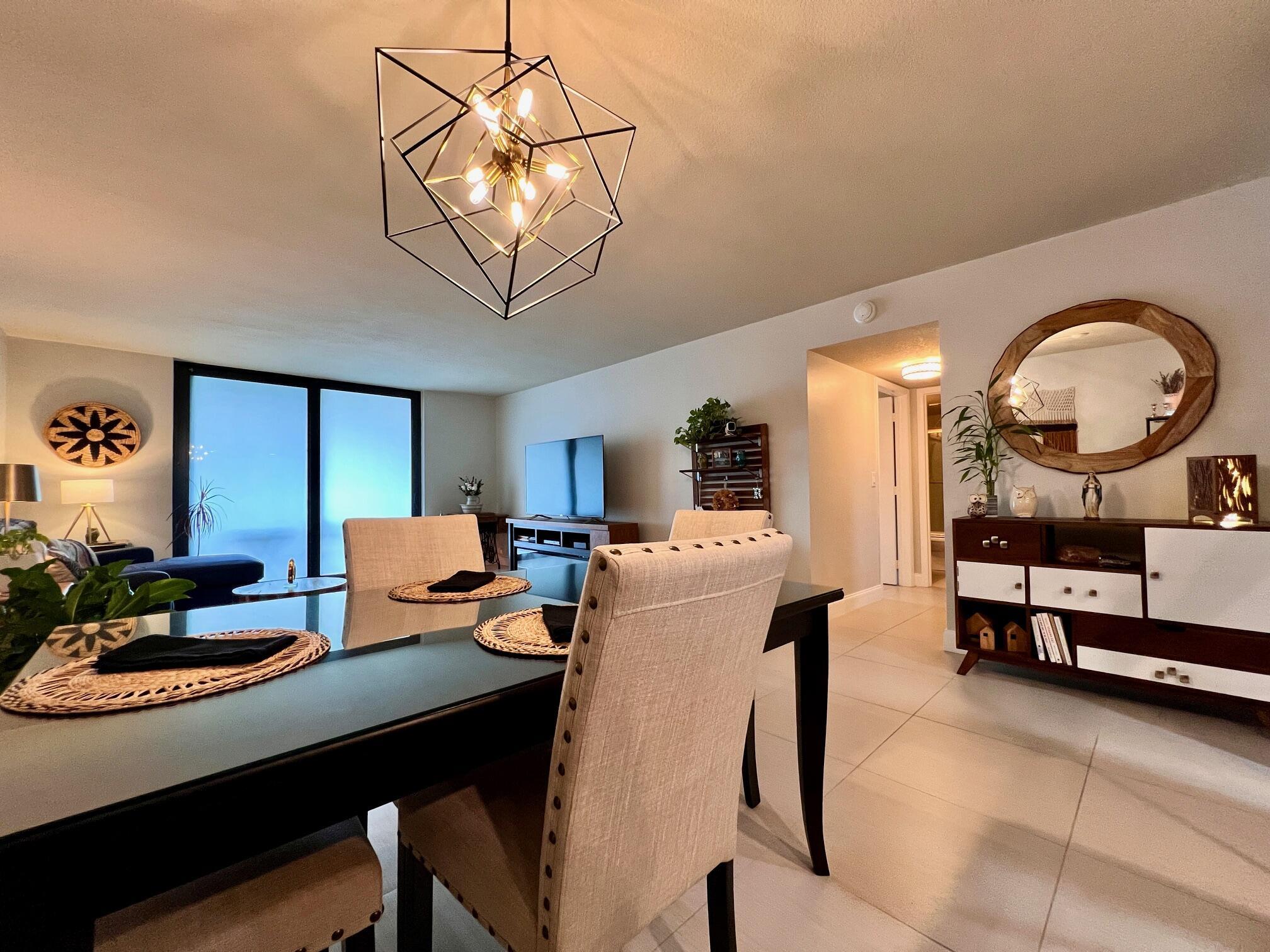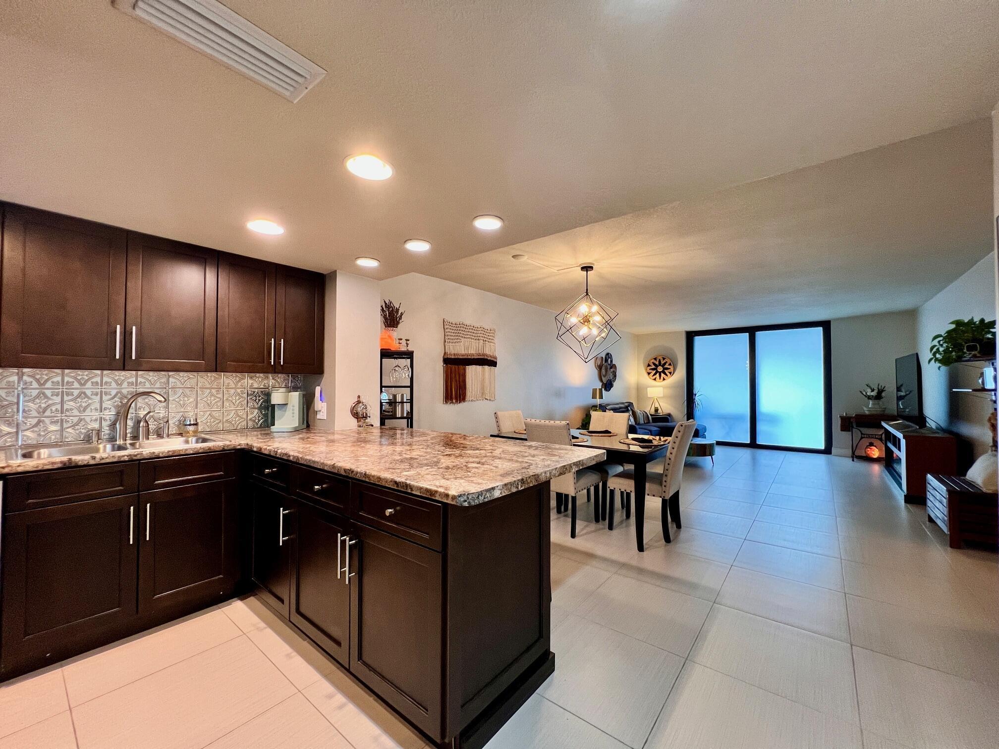 Gorgeous & Spacious Updated Penthouse Condo With Lake Views! Gracious 2/2 Floor Plan. Stylish Updated & Open Kitchen Featuring Shaker Style Cabinets, Designer Decorative Backsplash, High Hat & Pendant Lighting, Large Breakfast Bar, and Newer Stainless Appliances Including a Stacked Washer & Dryer! Two Updated Full Baths. Large Bedroom Suite W/Updated Full Ensuite Bath. Balcony Offers Outdoor Space Lake & Tennis Court Views. Large Format Neutral Tile Flooring Throughout. Knock Down Ceilings (no popcorn!). Impact Windows, Including the Slider W/ Privacy Frost, Completed in 2022. Nicely Maintained W/ New Water Heater (2022) & Electrical Panel (2023). Dining Table & Chairs, Two Bar Stools, Couch, Patio Table, Chairs, Herb Garden Included. A Well-Priced Gorgeous Place to Call Home