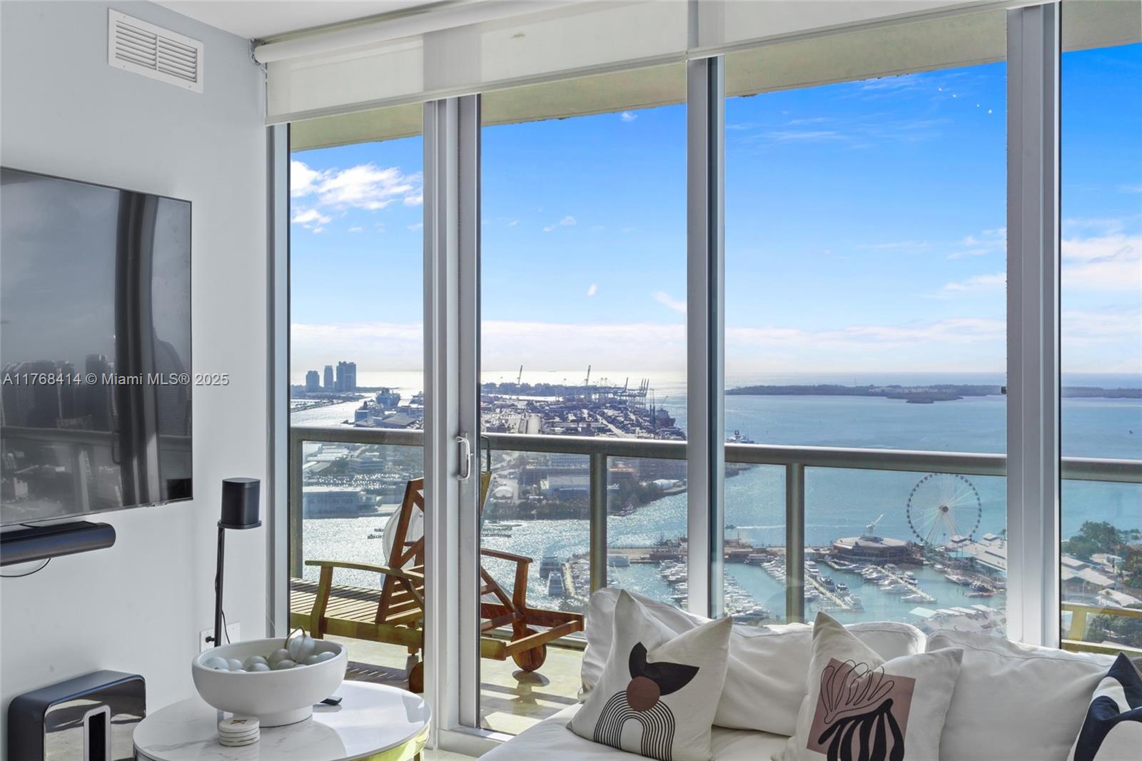 Breathtaking ocean and bay views from the 42nd floor of this very spacious one-bedroom apartment with a den, one full bathroom, and a half bathroom. The unit includes an assigned parking space and one storage space. Enjoy to-tier amenities such as two pools, a gym, a jacuzzi, a volleyball sand court, party rooms, and more.