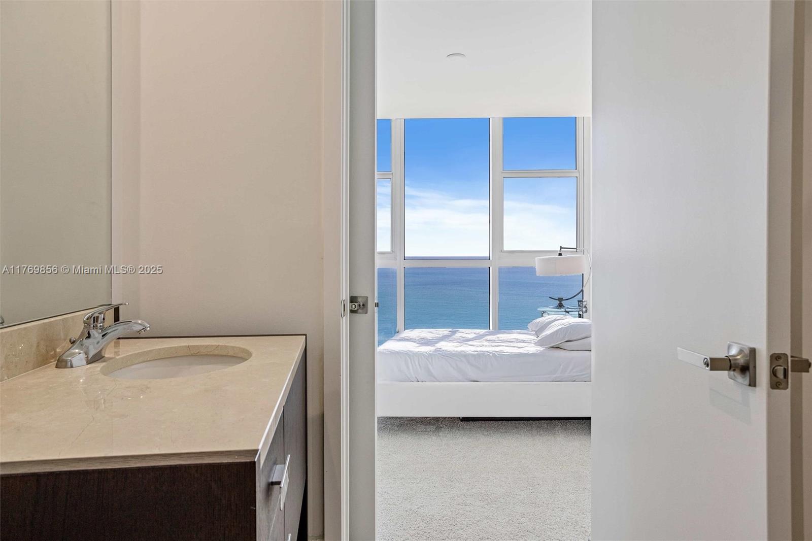 Breathtaking Oceanfront 2-bedroom, 2.5-bath Residence at TRUMP ROYAL Sunny Isles Private paradise on the 47th floor. Direct elevator access into your residence. Ocean views from EVERY room. Floor-to-ceiling glass walls that flood the home with natural light and frame ocean views. The balcony with stunning bay views is ideal for morning coffee or evening cocktails. The primary suite features panoramic ocean views, closets, and a spa-inspired bathroom with a deep soaking jacuzzi tub and glass-enclosed shower. Featuring a kitchen with lots of cabinets, storage space & black granite countertop. Trump Royal offers five-star amenities, including concierge service, a fitness center, a resort-style pool, a full-service spa, valet parking, and direct beach access.