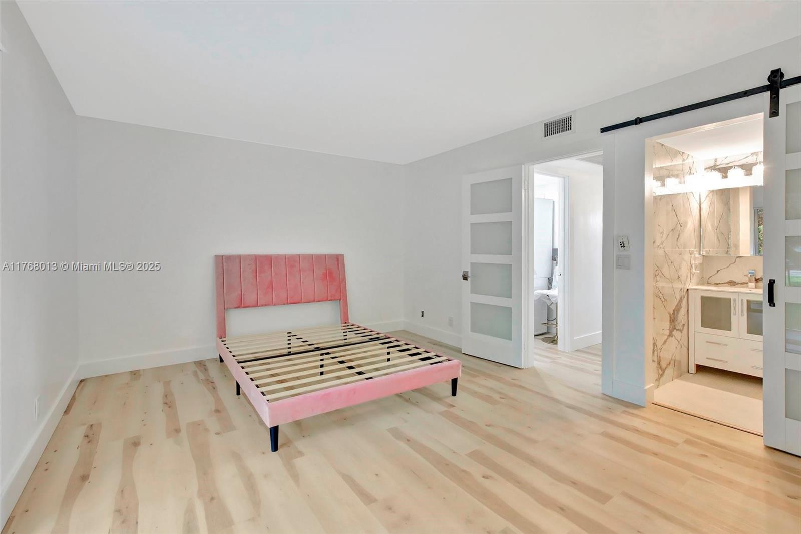 Stunning, completely remodeled 1-bedroom, 1.5-bathroom 2nd-floor unit in Ivanhoe West, Century Village. Features include stylish wood/laminate waterproof flooring, a breakfast counter, and stainless steel appliances. The pristine white cabinets and counters enhance the clean, bright aesthetic. Enjoy built-in closet cabinets, a charming barn door, and an in-unit washer & dryer. This 55+ community offers resort-style amenities including a clubhouse, fitness center, swimming pools, tennis courts, and golf. Centrally located near I-75, shopping, and dining.