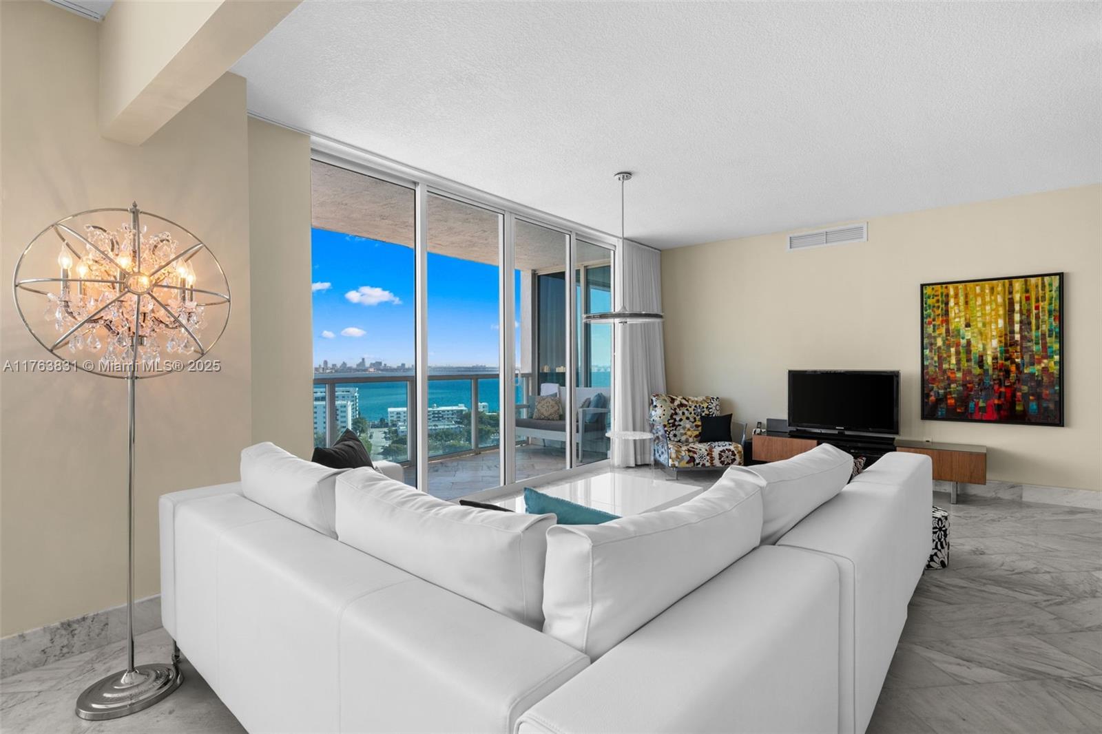 This stunning turn-key 2bed/2bath condo in North Bay Village offers unparalleled views of Biscayne Bay & the Miami skyline from EVERY room + a large private patio & a spacious laundry room with W/D. The spacious split-bedroom layout includes an open-concept guest bedroom designed to maximize light and water views—perfect as a bedroom, office, or flex space. The open kitchen is ideal for entertaining, while marble floors and natural light create a luxurious, airy ambiance. Newly renovated amenities include a sparkling pool, Jacuzzi, fully-equipped gym, and scenic boardwalk. With 24-hour security, easy access to highways, beaches, South Beach & just 15 min to the airport. Multiple closets provide ample storage—perfect for vibrant city living! SIRS completed. Building has reserves.