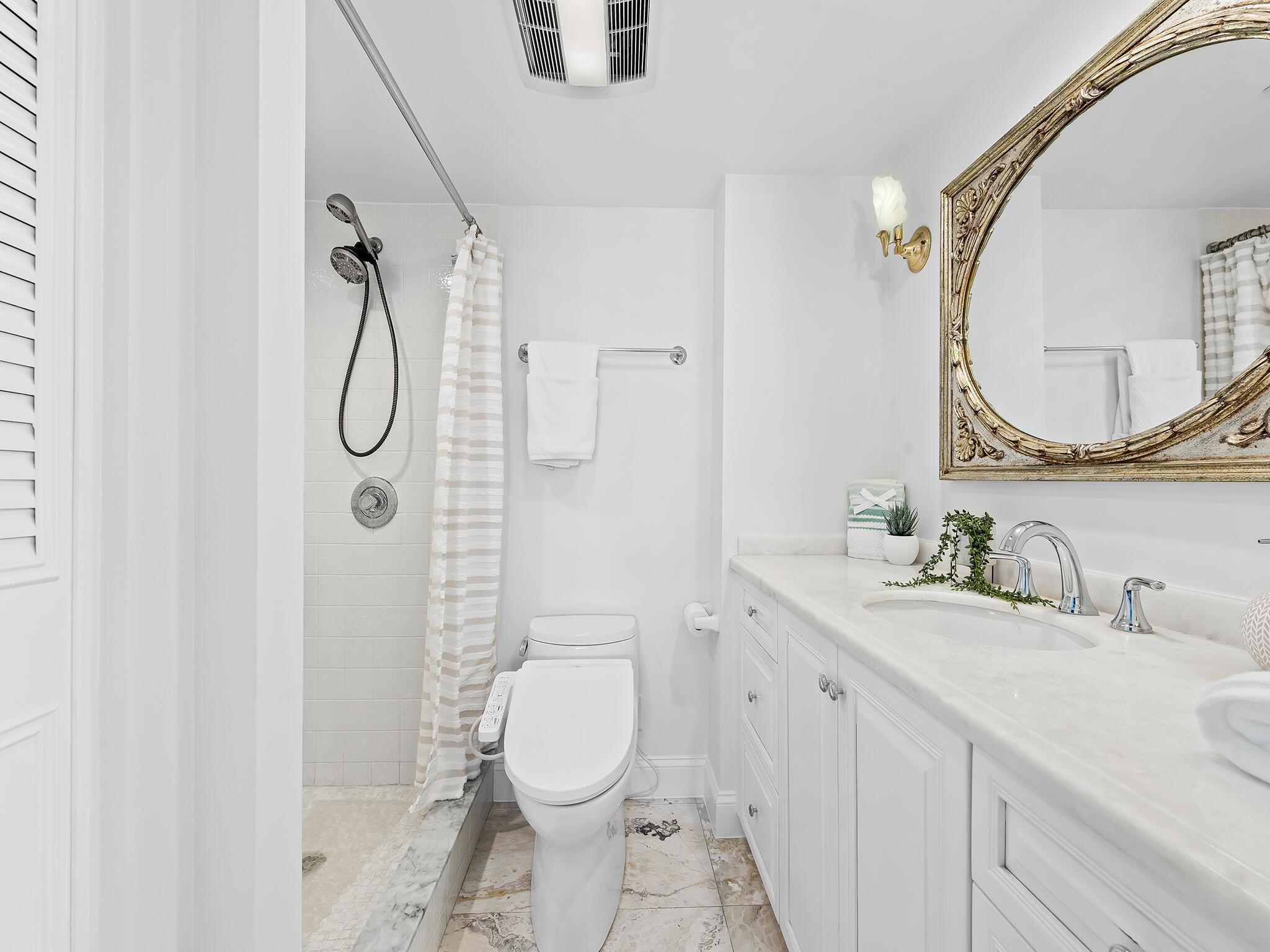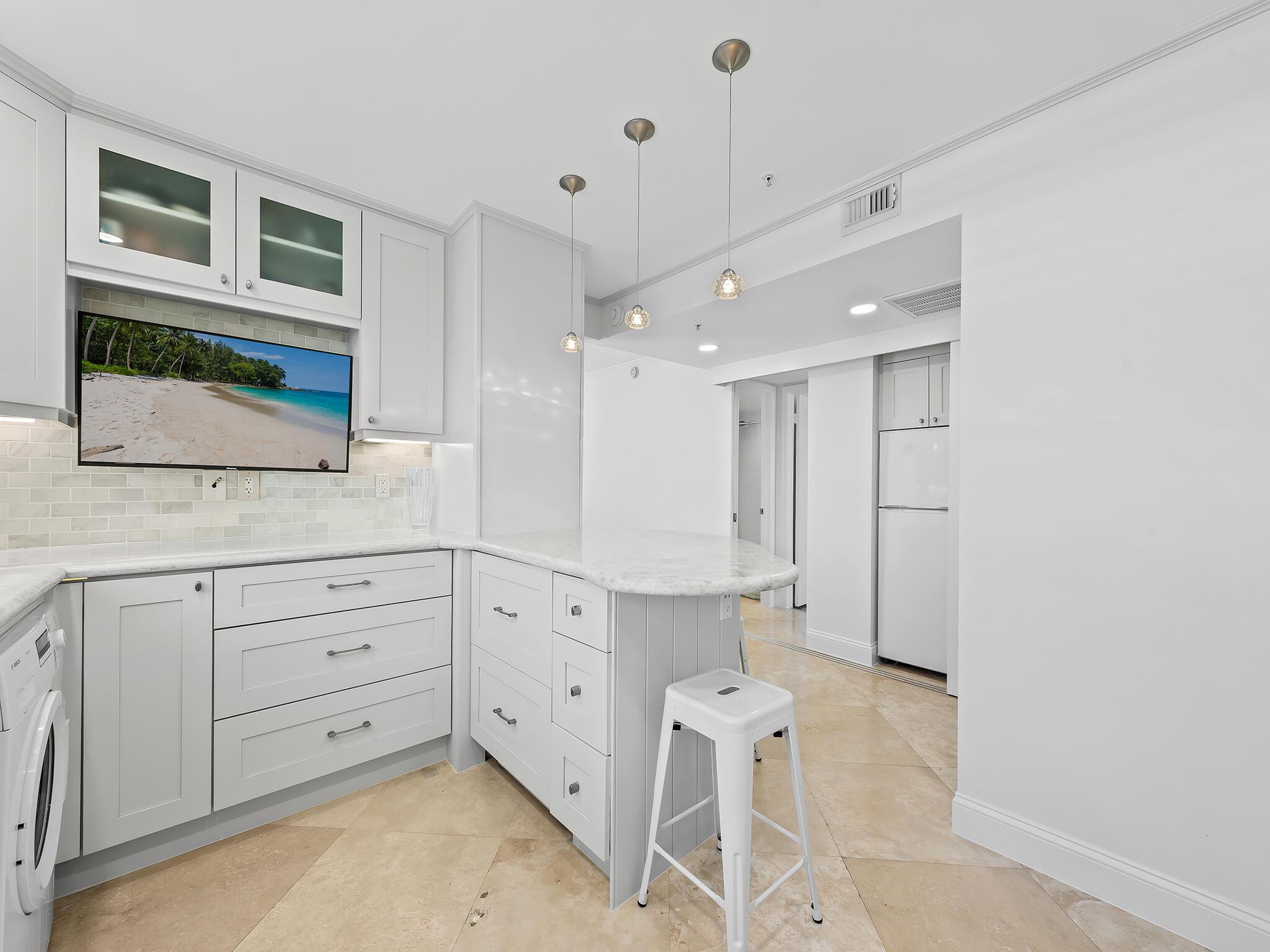 Beautifully updated Southern Corner with direct Intracoastal views! In addition, since this is a corner, you have additional southern facing windows a larger kitchen & private window w/ views of the Ocean! This renovated home features marble flooring, designer quartzite counters, custom cabinetry w/ a bar style ice maker, a Bosch Double Oven, Induction cooktop, Sub Zero refrigeration drawers, full sized washer and dryer and coffee bar! The until also has two bedrooms, an enormous indoor/outdoor balcony, with interior storage and walk in closets. Seagate of Highland is a beautifully renovated building with great amenities - Pools, Clubhouse, plus deeded beach access across the street with chairs, covered parking, chase loungers and a shower on the sand, community Boat dockage, bocce, etc.