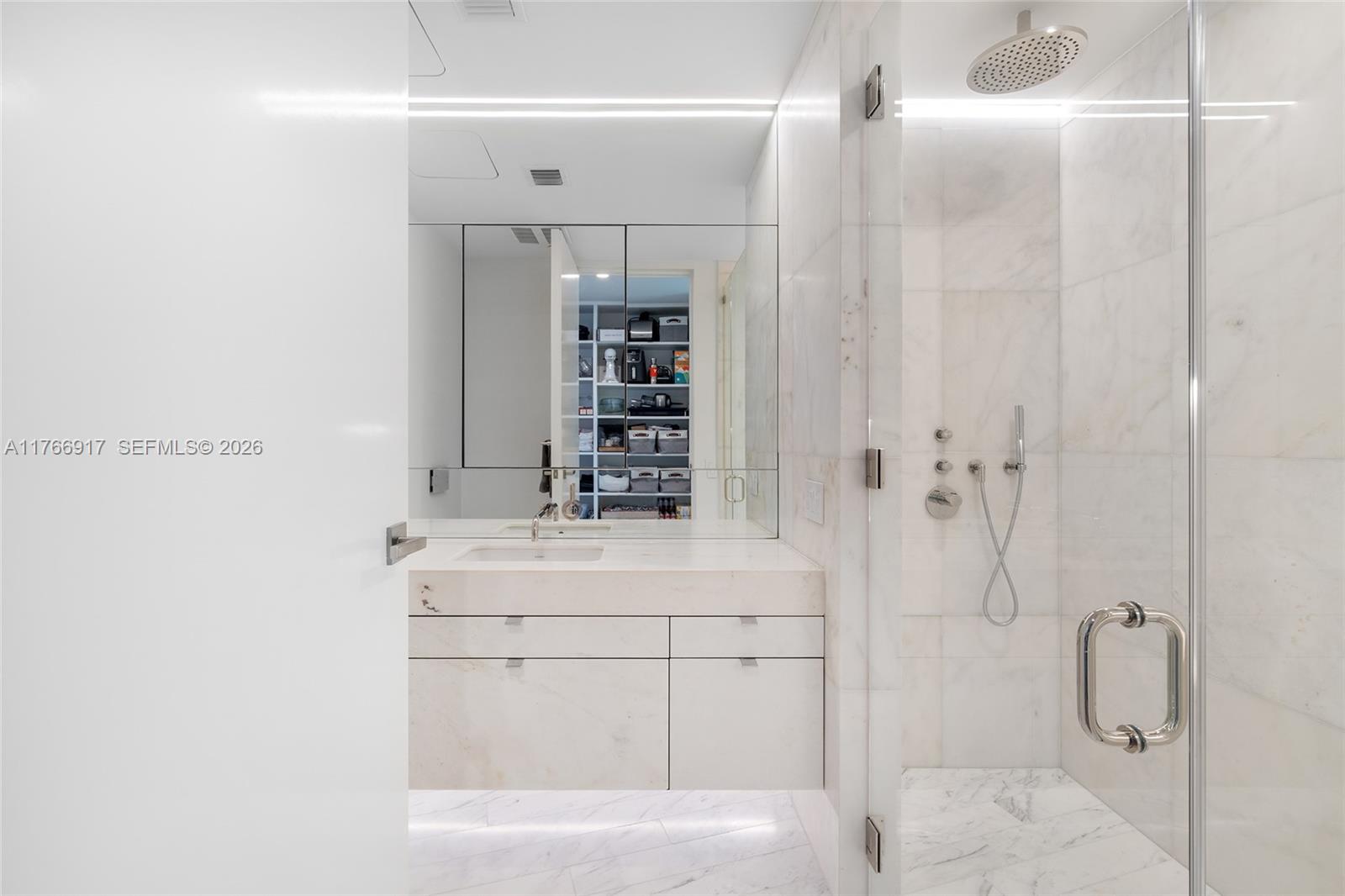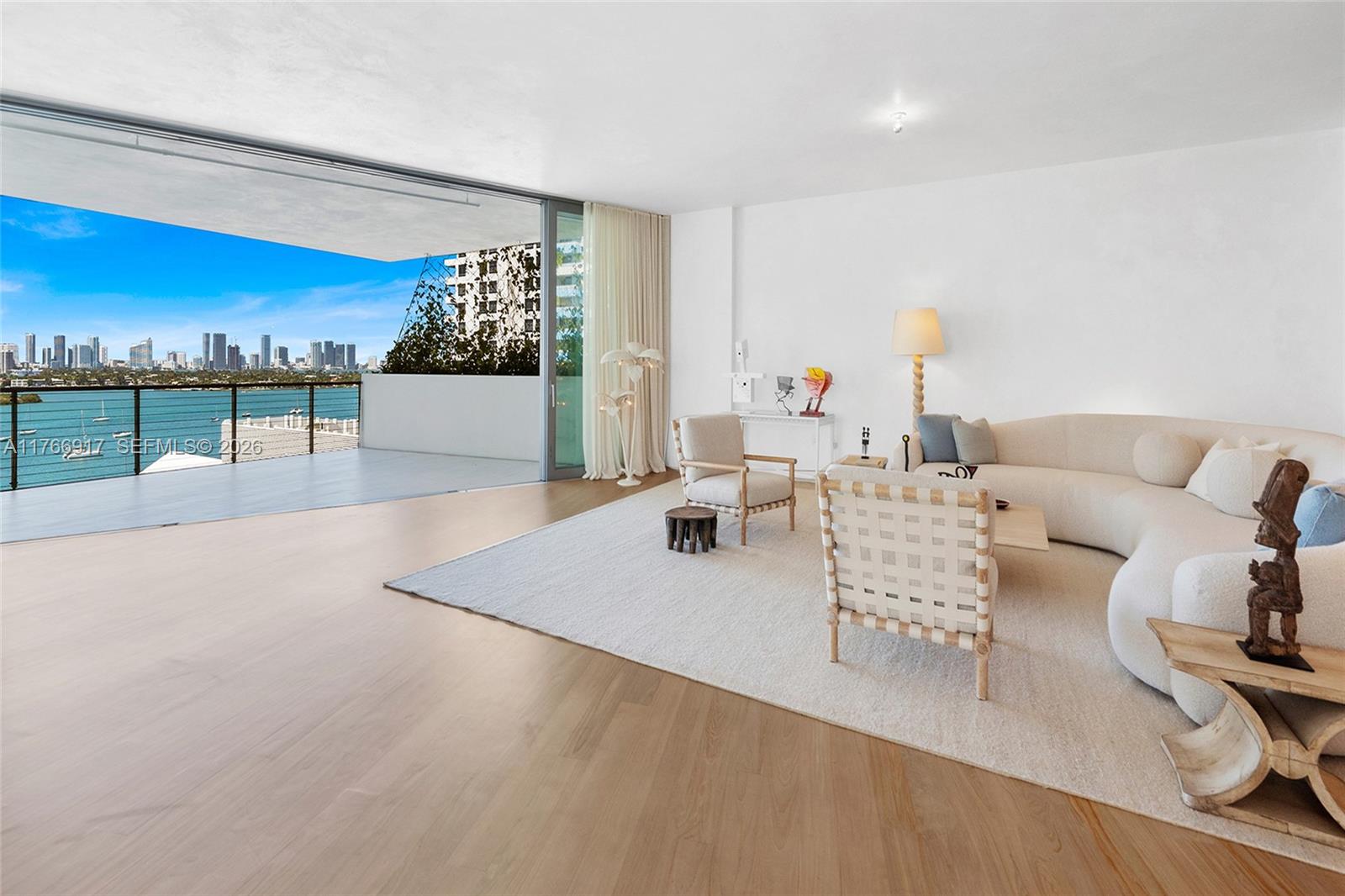 MID-CENTURY MINIMALIST INTERIORS BY AUSTIN HARRELSON WITH STUNNING SUNSET VIEWS OVER THE BAY & CITY SKYLINE FROM THIS SPRAWLING 5-BEDROOM RESIDENCE AT MONAD TERRACE BY AWARD-WINNING ARCHITECT JEAN NOUVEL! Flowthru 5 Bed + 5.5 Bath Residence in 3,936 SF wrapped in 1,474 SF Terraces. Private Foyer greets you to Oversized Great Room. Custom Wall-to-Wall Bookcases + 10 FT Ceilings in Elegant Venetian Plaster. Poliform Kitchen in White Calacatta Gold Marble w/Sculptural Cantilevered Marble Island & Wine Rack + Gaggenau Appliances. Custom Oak Breakfast Banquet. Primary Suite w/Bathroom in Calacatta Gold Marble & Floating Wood Vanity + Steam Shower & Ago Soaking Tub by Antonio Lupi. Laundry Room Doubles as Service Quarters. Diagonal Teakwood floors. Private Elevator with Direct Access to Garage.