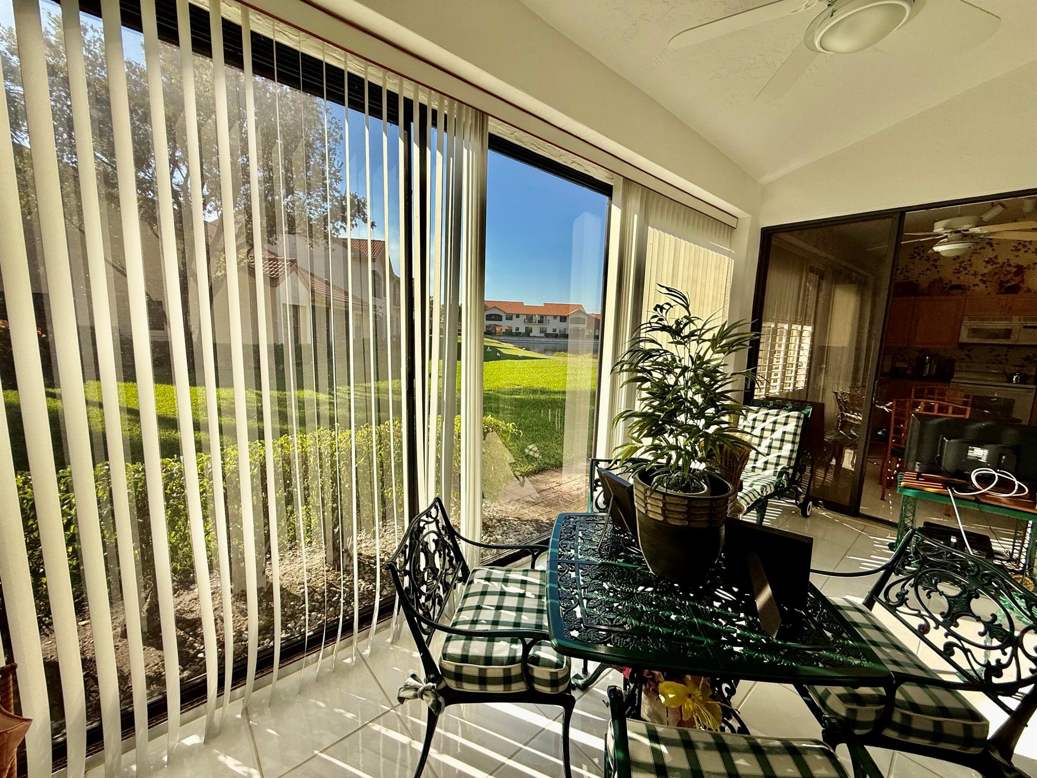 ..Rarely available Santa Barbara model in the Harbours @ Aberdeen East. This 3 bedroom/2 bath home is tiled throughout. The third bedroom is being used as a den but can be converted. Beautiful plantation shutters throughout the home. The glass and screen enclosed air-conditioned Lanai is not included in the square footage but adds to your comfortable living space. Relaxing lake views in your backyard from your Lanai. Vaulted ceilings make this unit light and bright. Newer AC and HWH in 2024. Full accordion storm protection. Enjoy the many amenities with NO MEMBERSHIP FEES. The clubhouse amenities are all included in your HOA fee. Aberdeen East is a beautifully landscaped 55+ community that features an active adult lifestyle in a great location.