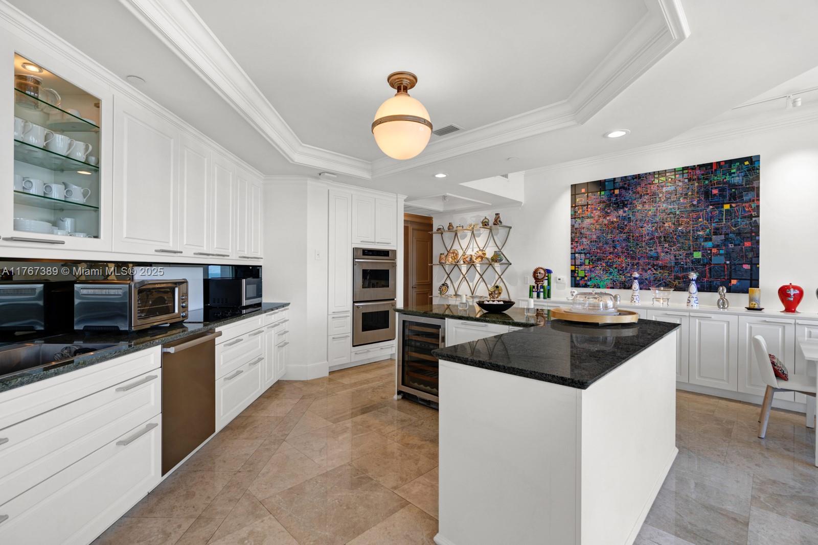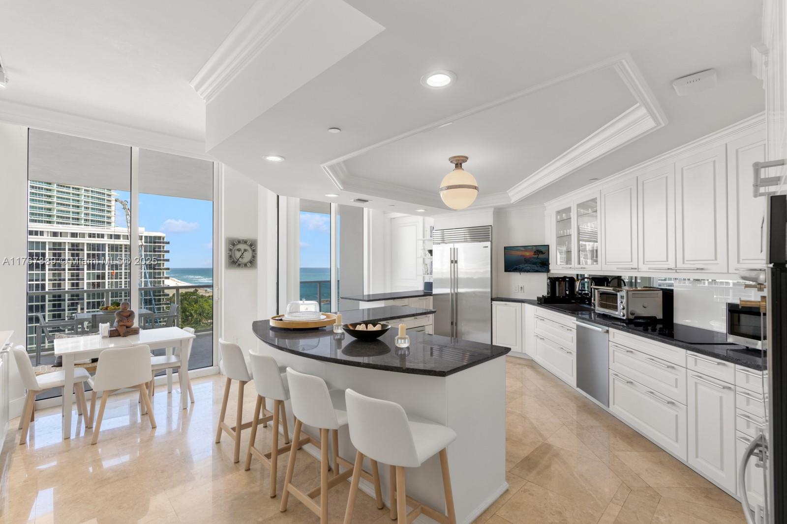 Luxuriate in this Bellini corner residence in Bal Harbour with stunning N.E. & W. Ocean views. This 3BR+office, 6.5BA, 3,820 SF gem features exquisite woodwork, custom storage, and a private elevator opening to bright living spaces with floor-to-ceiling windows and a 700+ SF terrace surrounded by endless ocean views. The gourmet kitchen boasts 10-ft ceilings, premium appliances, and custom cabinetry. The primary suite offers sunrise views, 3 walk-in closets, and 2 spa-like bathrooms. Enjoy exclusive amenities: heated pool, private beach pavilion, gym, spa, salon, Pilates, dining, and 2 parking spaces. Steps from the beach and world-class shopping/dining, this is your ultimate coastal retreat.