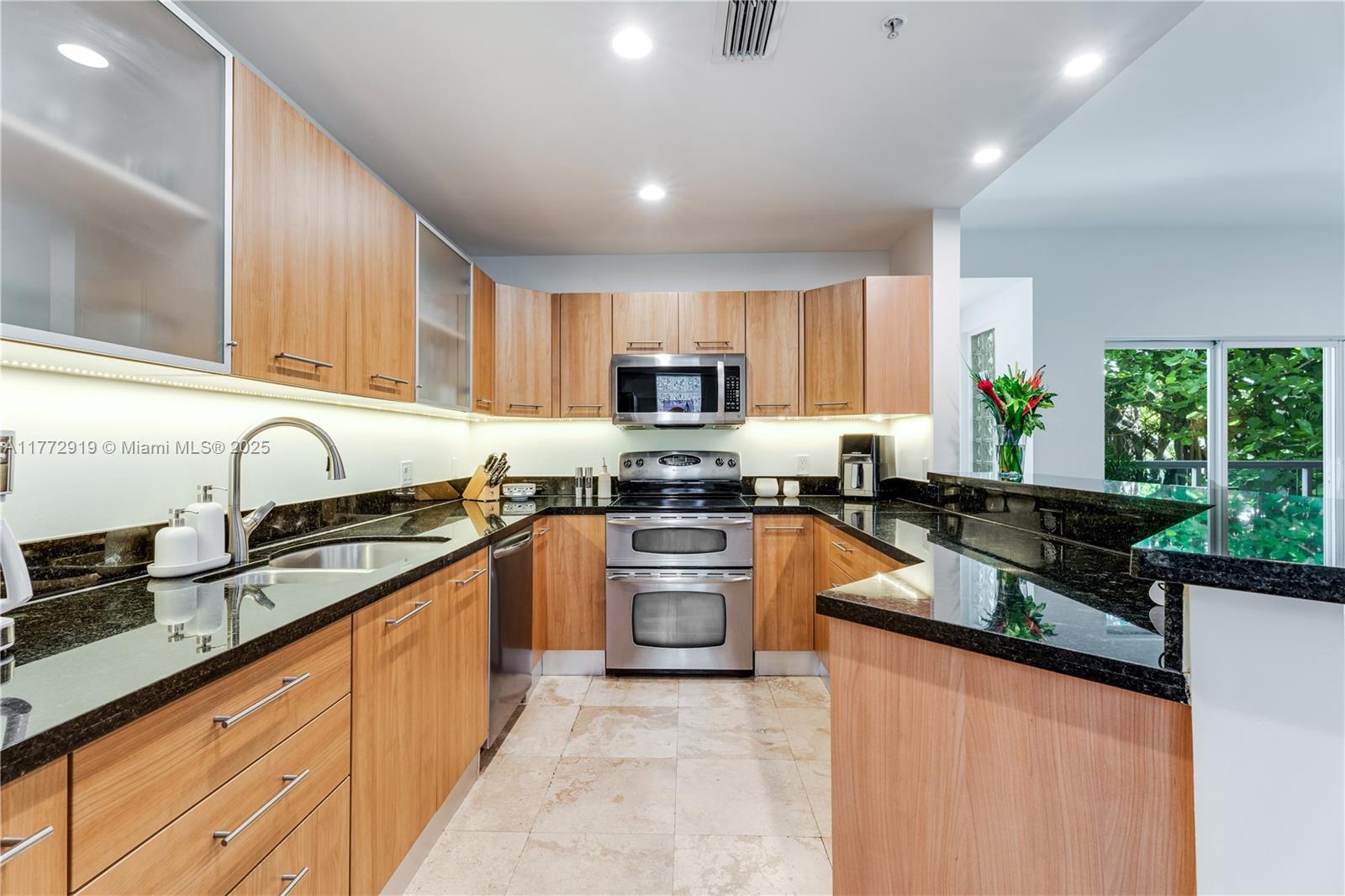 Elegant Corner Unit in Boutique Coconut Grove Building. Experience the best of Coconut Grove in this stunning corner unit, just steps from Downtown Coconut Grove, Mr. C’s, the Ritz-Carlton, Four Seasons, and Biscayne Bay. This thoughtfully designed residence boasts an open floor plan with travertine marble floors throughout and a kitchen featuring expansive countertops & ample storage. A semi-private elevator opens directly to the unit’s private patio, offering a seamless blend of privacy & convenience. Building is very well managed and funded. It was recently painted on the outside and new pavers in the front. NO SPECIAL ASSESSMENTS! The home features 2 spacious bedrooms, each with ensuite baths. The primary suite includes double sinks, a soaking tub, & a steam shower.