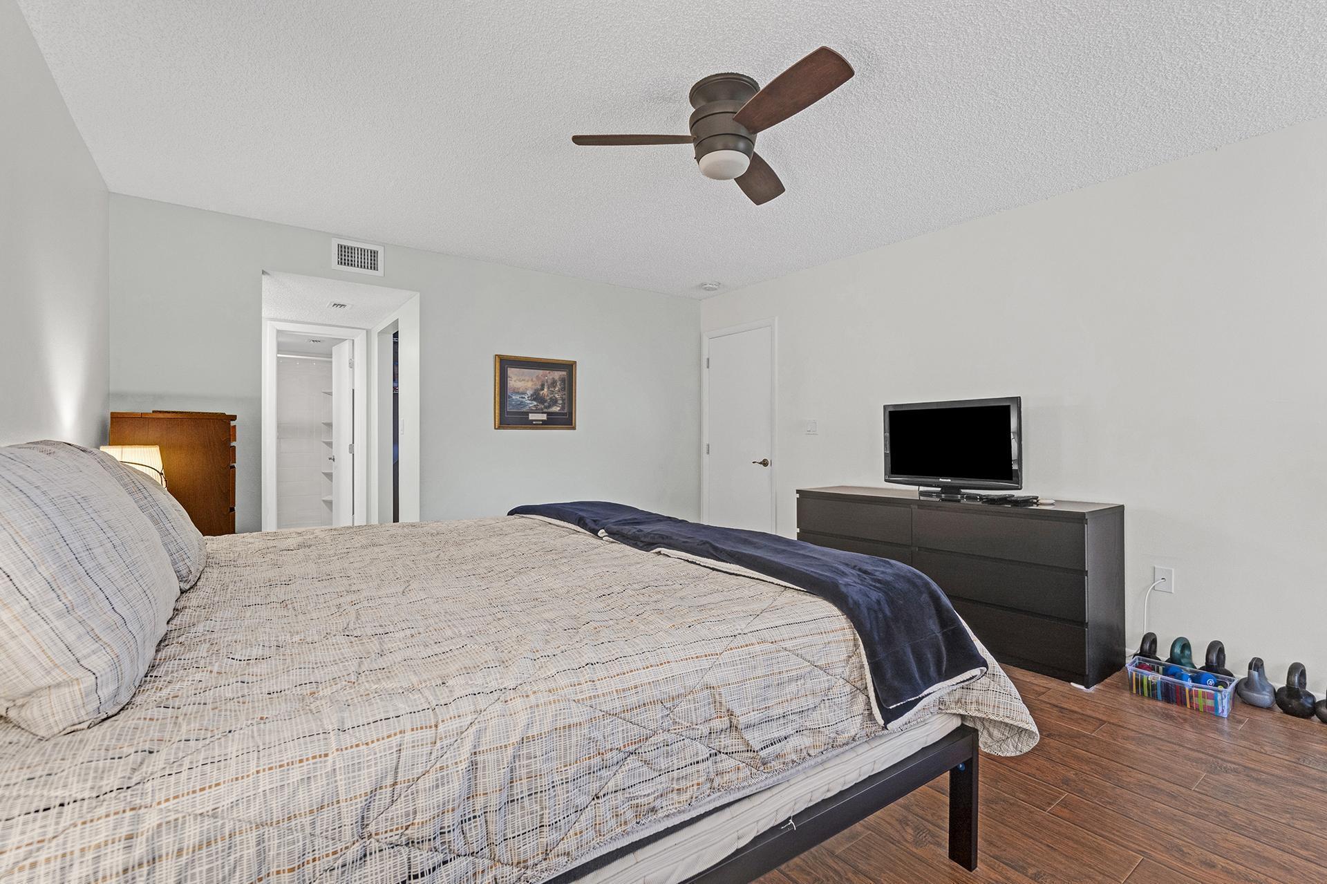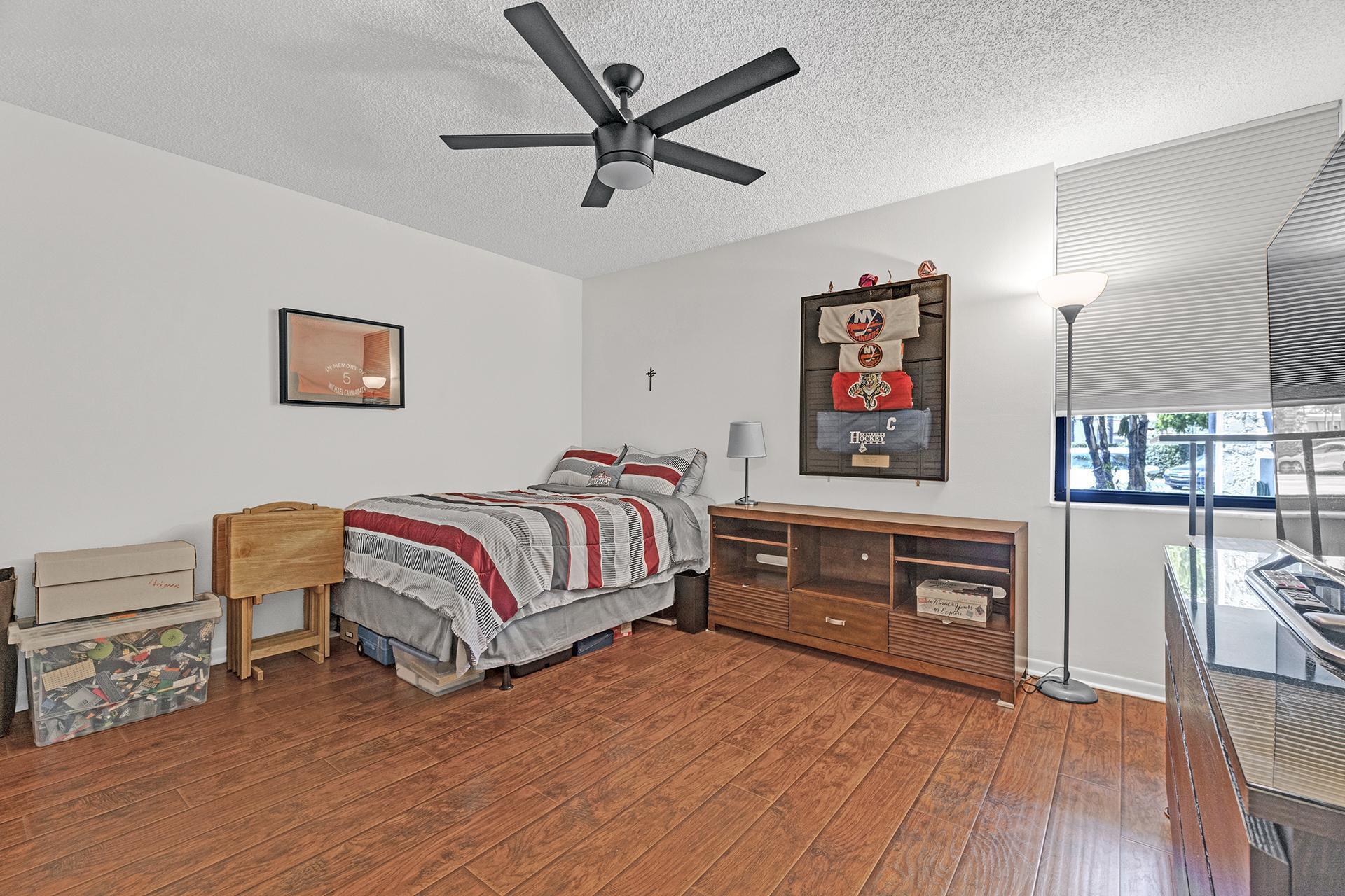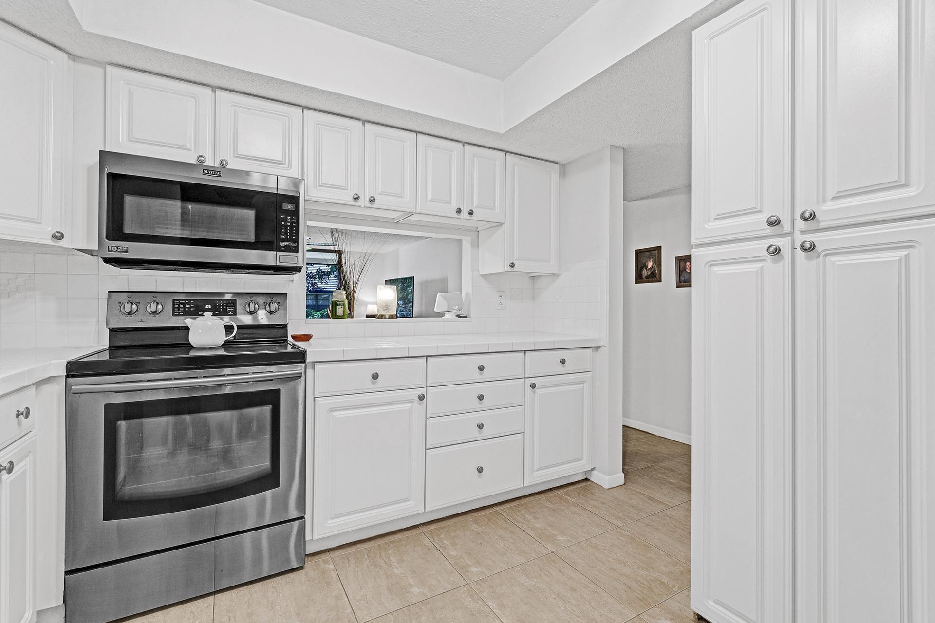 Welcome to this spacious and well-appointed first-floor condo in the heart of Delray Beach! This 2-bedroom, 2-bathroom home features laminate flooring in the bedrooms, large bedrooms, and a coat closet for added storage. The kitchen is designed for convenience, offering roll-out drawers for pots and pans in the pantry, making organization effortless.Enjoy Florida living on your screened patio, perfect for relaxing in the fresh air. Hurricane shutters provide peace of mind during storm season. This prime location is just steps away from shopping and restaurants, with easy access to I-95 and within walking distance to the beach!Don't miss this opportunity to own a fantastic home in a highly desirable area!