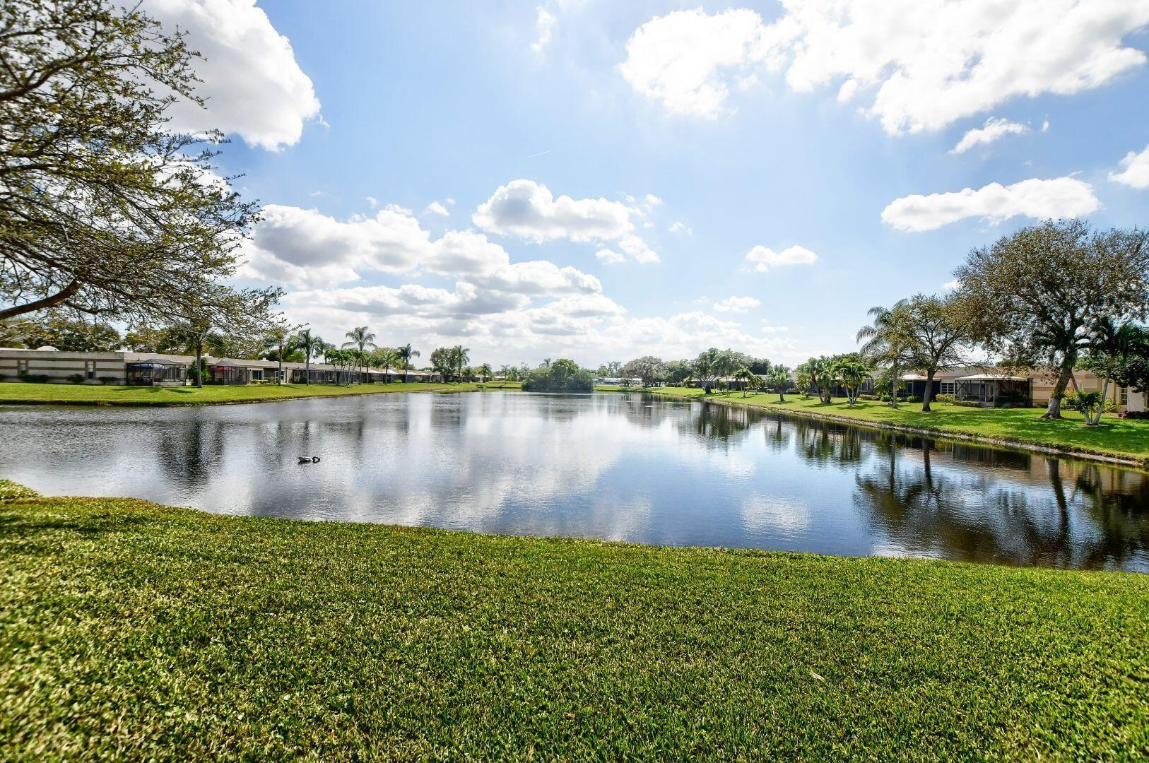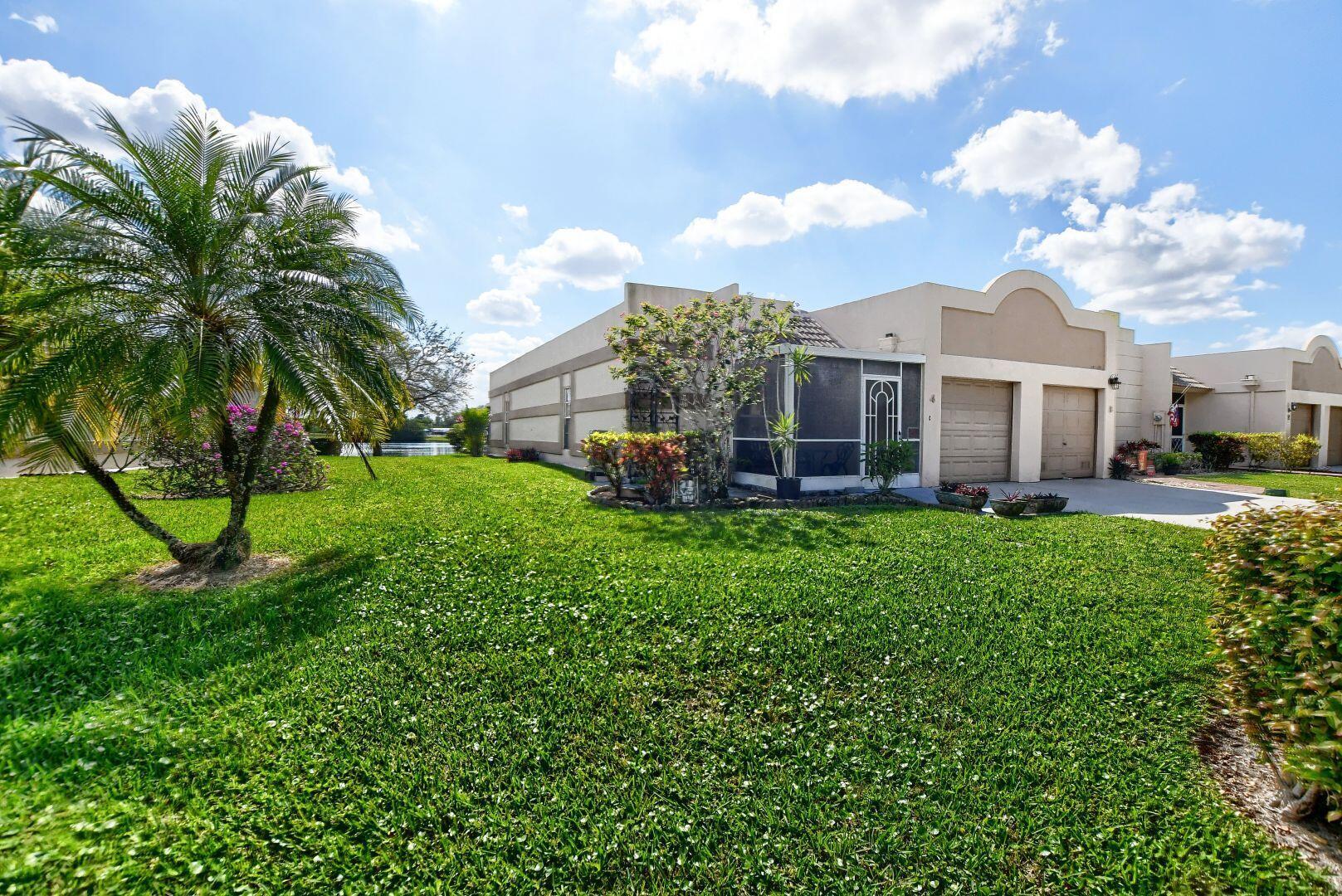 2/2 CORNER Villa with long driveway, 1 car garage, Front and back patio, eat in kitchen, magnificent lake view.Short walk to active clubhouse with heated pool, tennis and bocce courts, game and exercise rooms,etc.. Close to shopping,restaurants,and entertainment. This magnificent home is a must see !!!