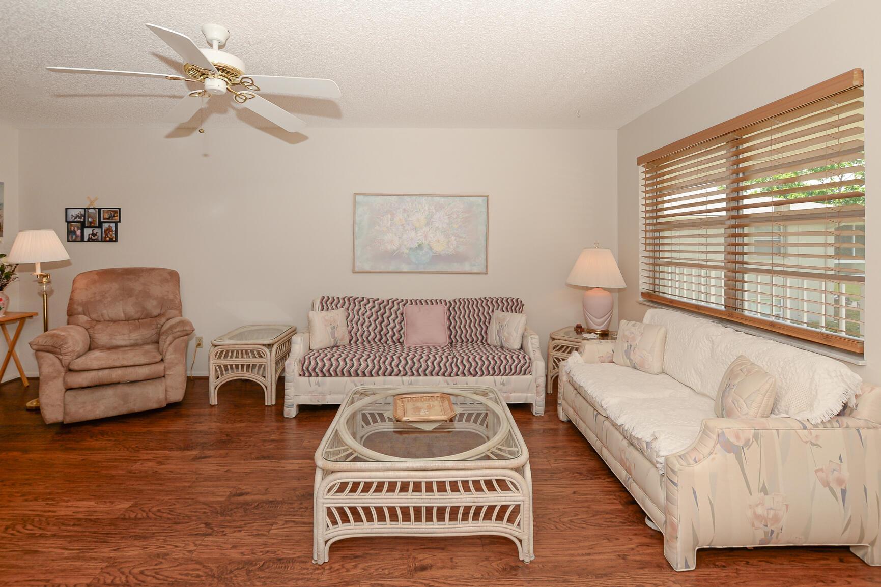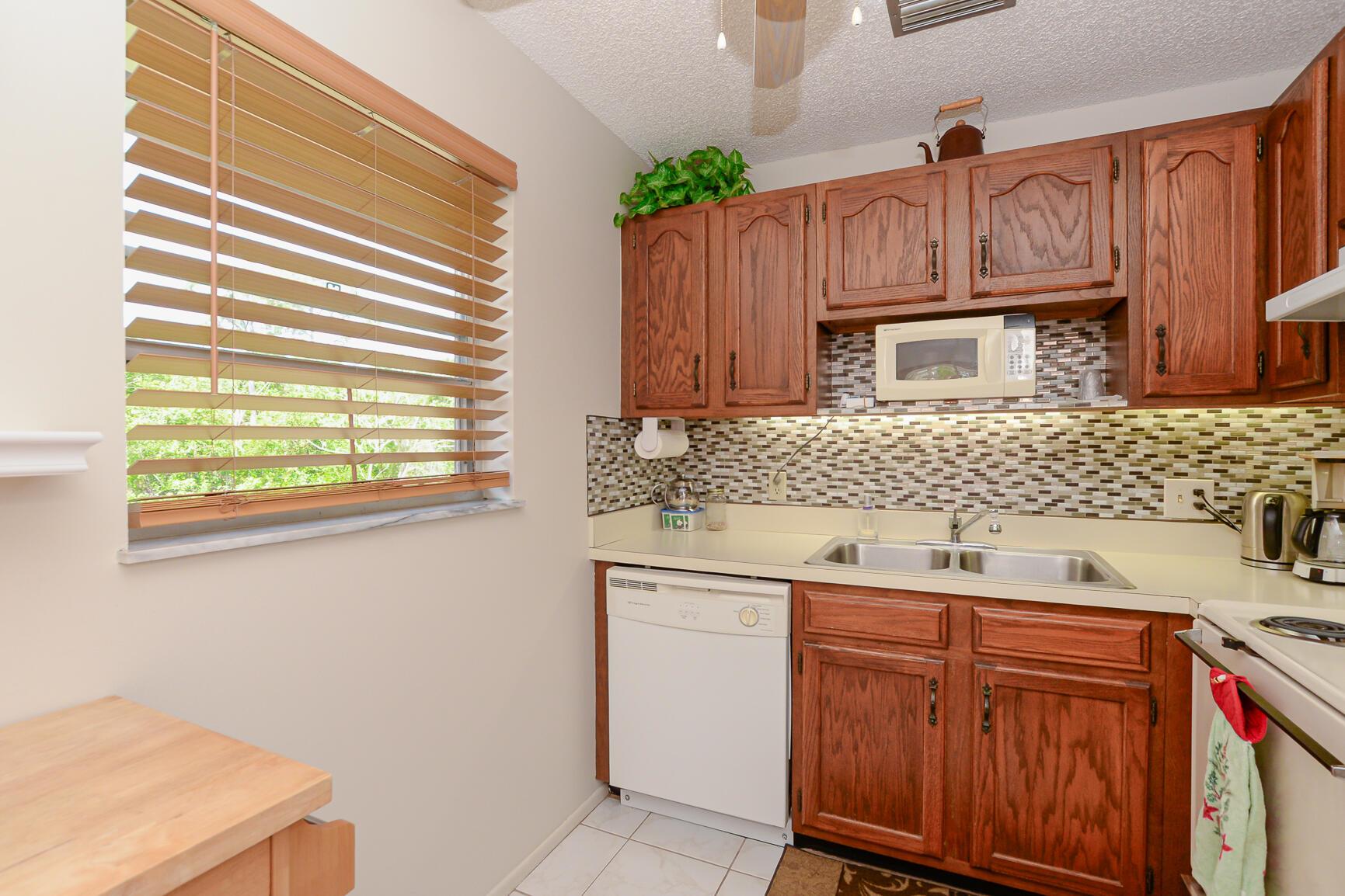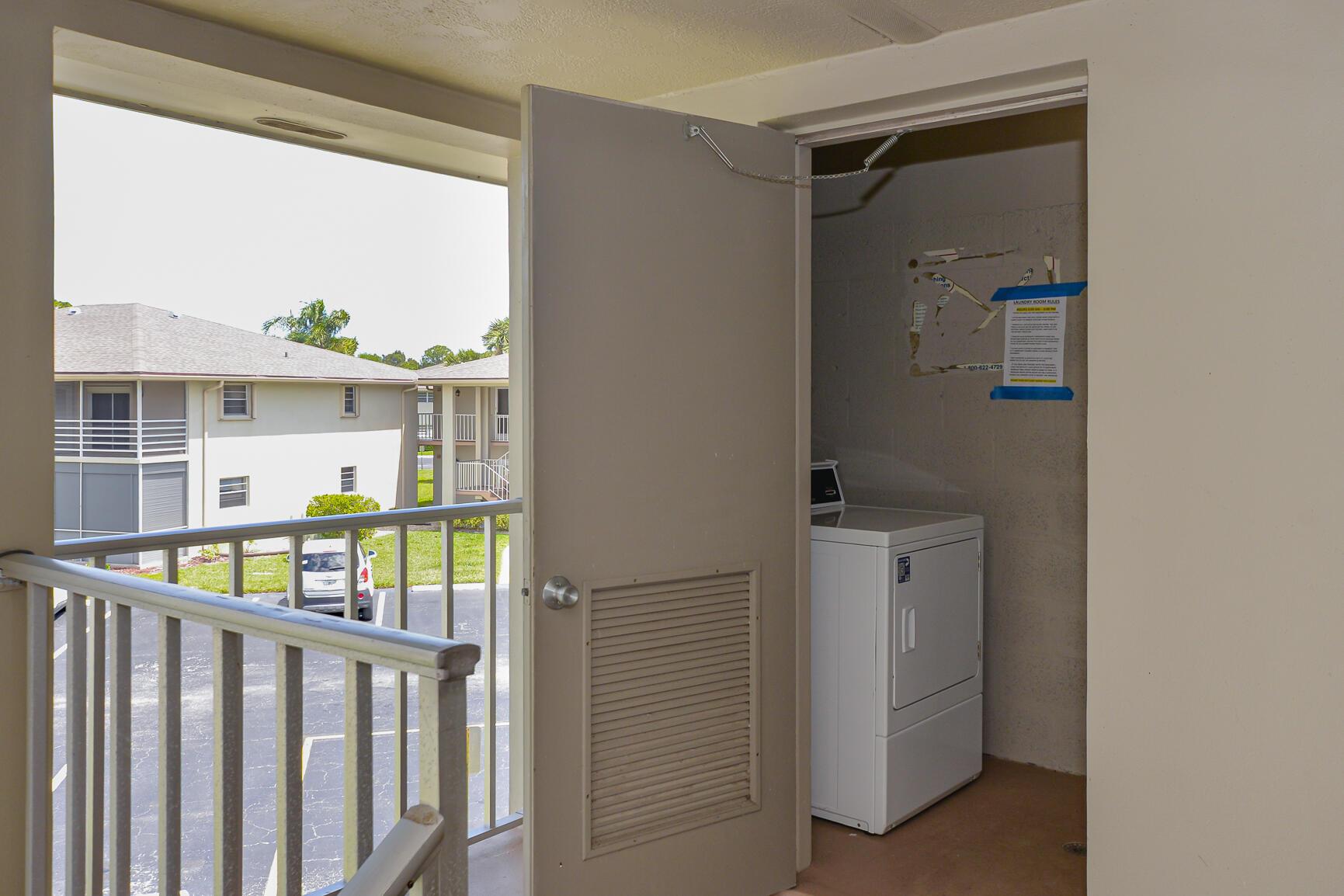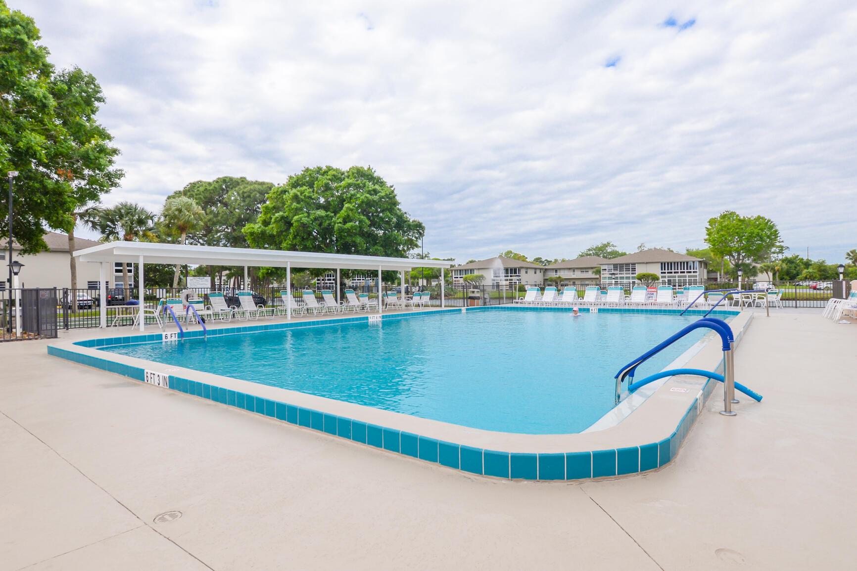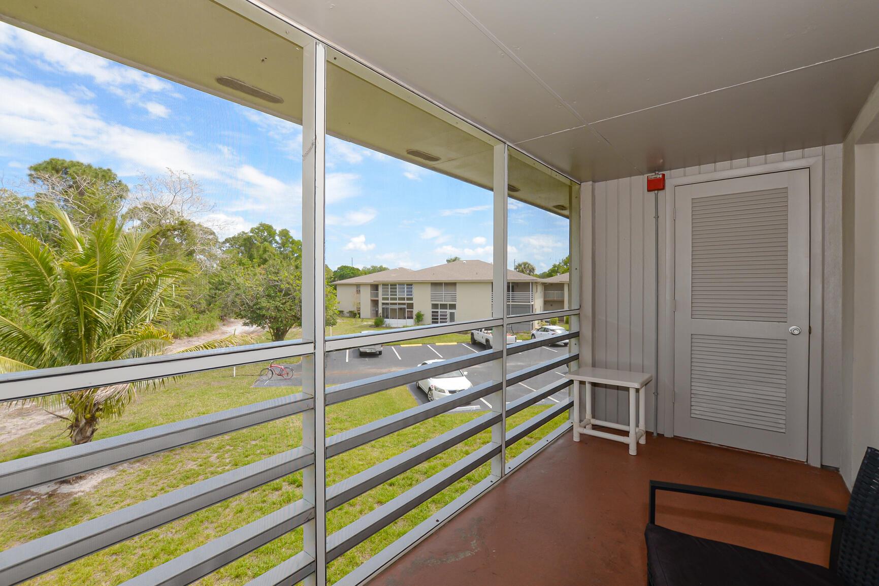 Welcome home to this fully furnished, 1-bedroom, 1.5 bath, turnkey condo with everything included; all you need is your toothbrush. Very clean and well-maintained with newer AC (Dec. 2020), pretty wood-like flooring, and a lovely, private, screened back porch with no neighbors behind you. Corner unit with lots of natural light, solid wood cabinets, and a great location with communal laundry right out your front door. Life is easy with lawn care, cable, internet, water, trash removal, sewer, exterior maintenance, all included. Nestled in the quiet but active 55+ community of Vista Saint Lucie with many activities to enjoy, including billiards, arts & crafts, pool, hot tub, gym, library, golf club, bowling league, tennis, pickleball, shuffleboard, potlucks, bingo, dances, and various classe