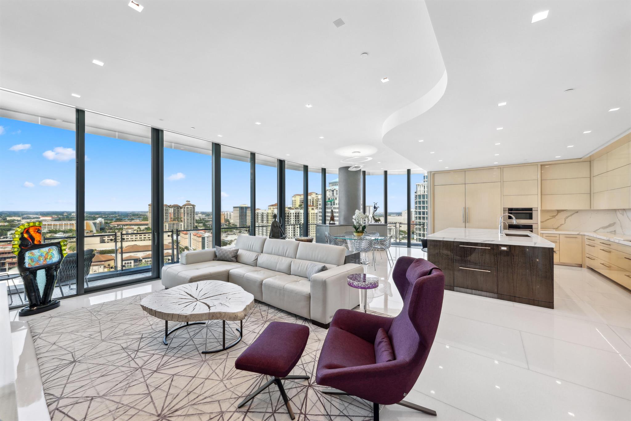 THE ONE YOU'VE BEEN WAITING FOR!! An extraordinary completely custom one-of-kind residence including a rare private garage designed for 3 vehicles. An elevated architectural masterpiece designed for those who demand the finest. This contemporary 4-bedroom, custom built by Shapiro Pertnoy, includes a substantial waterfront office and an abundance of light-filled entertaining areas that span an impressive 5,544 interior sq ft. Experience the grandeur and comfort of your own private estate within the most exclusive ultra-luxury building in Palm Beach County. An exquisite primary suite features unrivaled ocean & Intracoastal views which can also be admired from each of the two bathrooms surrounded by marble ceilings, walls, & floors. The dual oversized & elegantly appointed dressing room