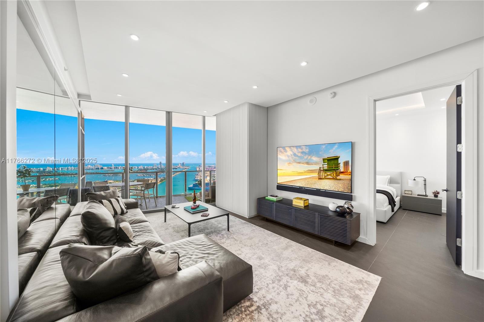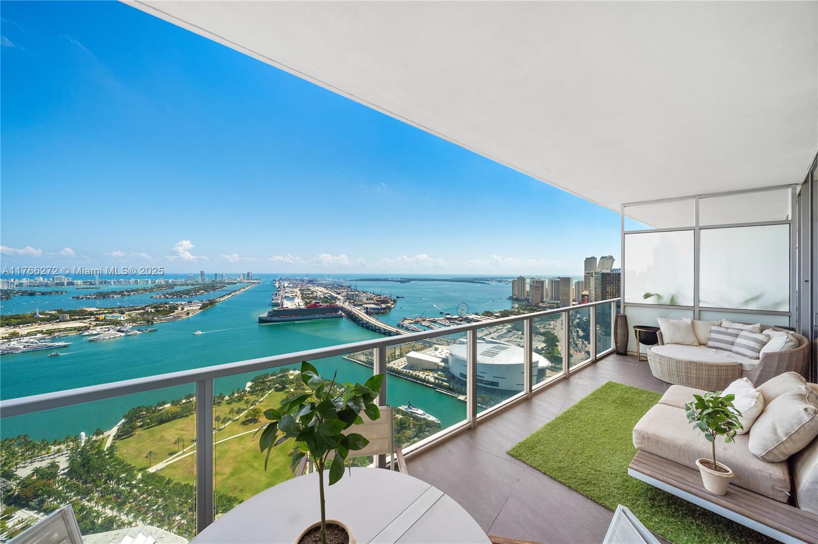 Rarely available waterfront 03-line unit at Marquis Residences. This high-floor flow-through residence features a private elevator, 2 spacious bedrooms, floor-to-ceiling windows, an oversized balcony, & spectacular panoramic water & city views! Enjoy a chef’s kitchen with Viking appliances, custom black porcelain tile floors, custom closets, & electric shades. Indulge in world-class amenities: two pools, a state-of-the-art fitness center & spa, 24-hour concierge & valet, plus the 5-star ME Hotel, STK restaurant & bar. Unbeatable location! Steps from top shopping, dining, nightlife, parks, museums, the Performing Arts Center & Kaseya Center.
