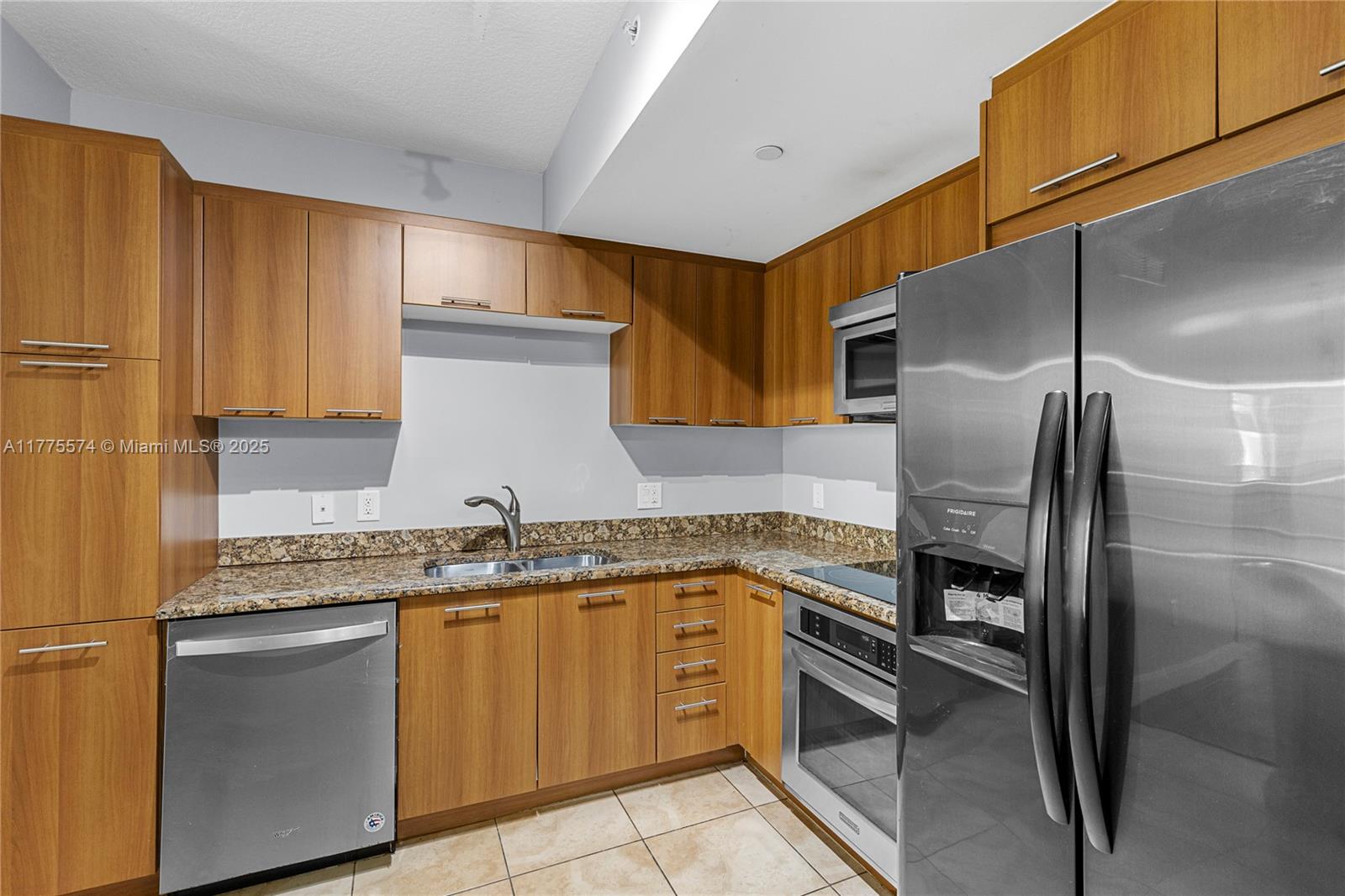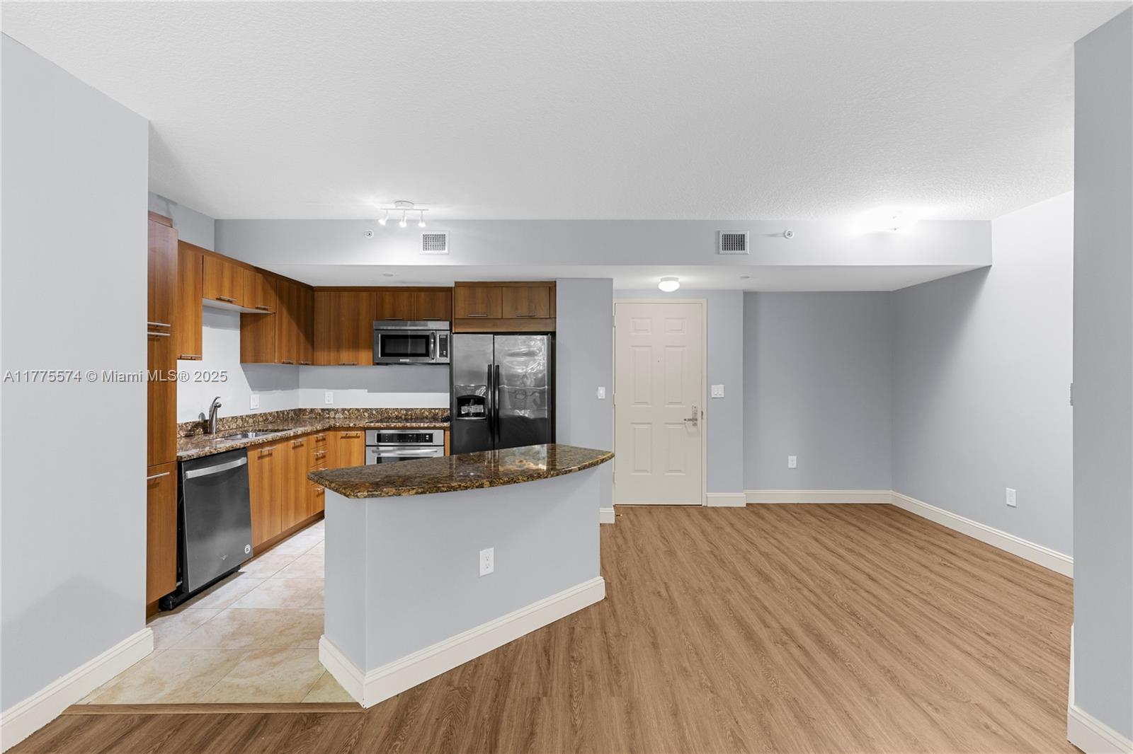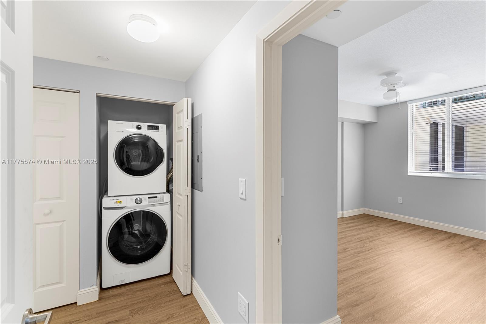 This stunning 2-bedroom, 2-bathroom condo offers modern living with brand-new laminate floors, a luxurious master bathroom featuring a marble shower and soaking tub, and a sleek kitchen with granite countertops and stainless steel appliances. Enjoy the convenience of an in-unit washer/dryer, smart key FOB entry, and two assigned parking spaces. The resort-style amenities include a tropical heated pool, Jacuzzi, fitness center, dry sauna, and a residents’ clubroom. With 24-hour concierge, high-tech cameras, and high-impact doors/windows, safety is a priority. Ideally located within walking distance to supermarkets, restaurants, a hospital, and places of worship, this home combines comfort and convenience. Plus, internet, cable, and water are included.
