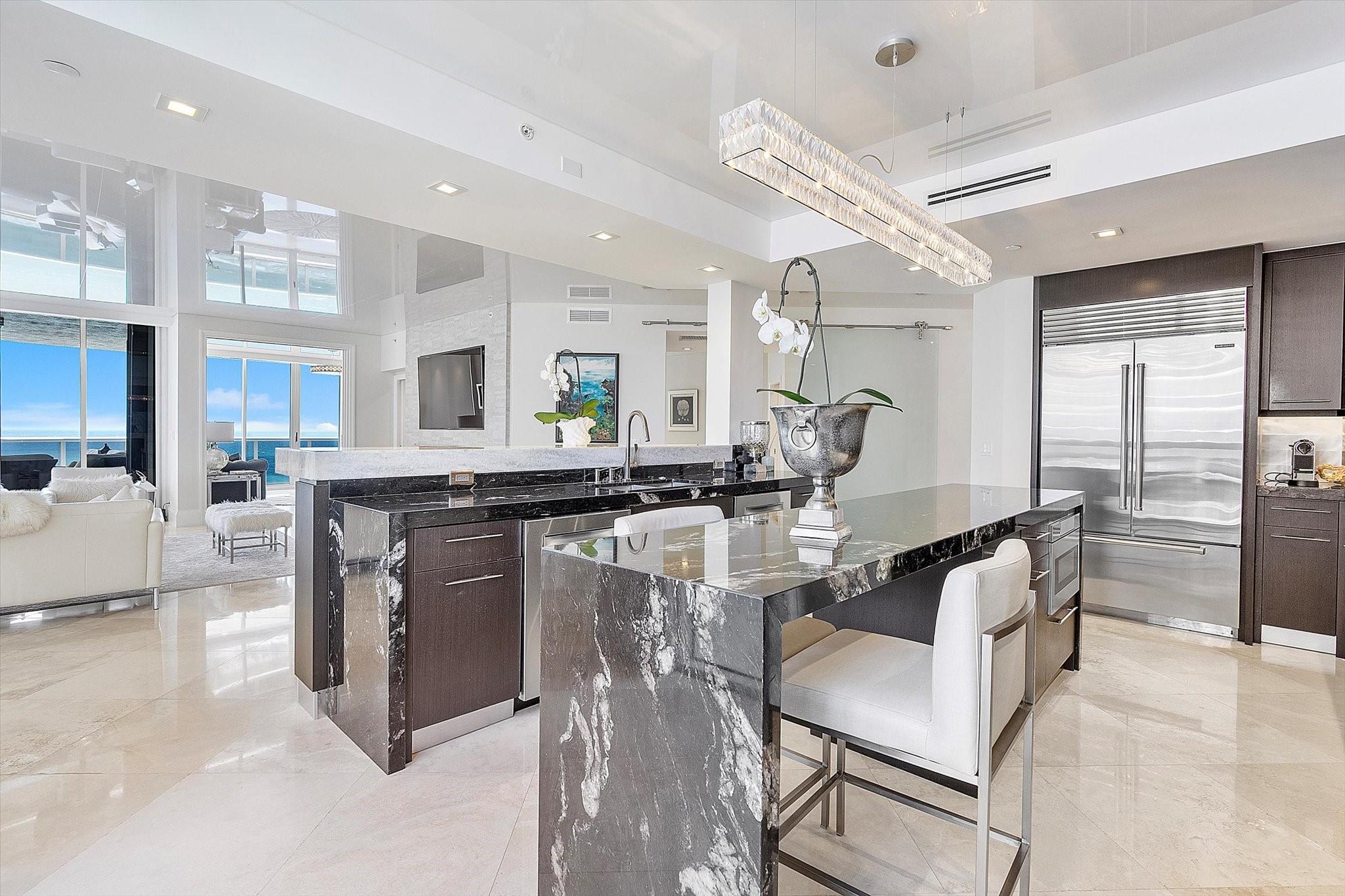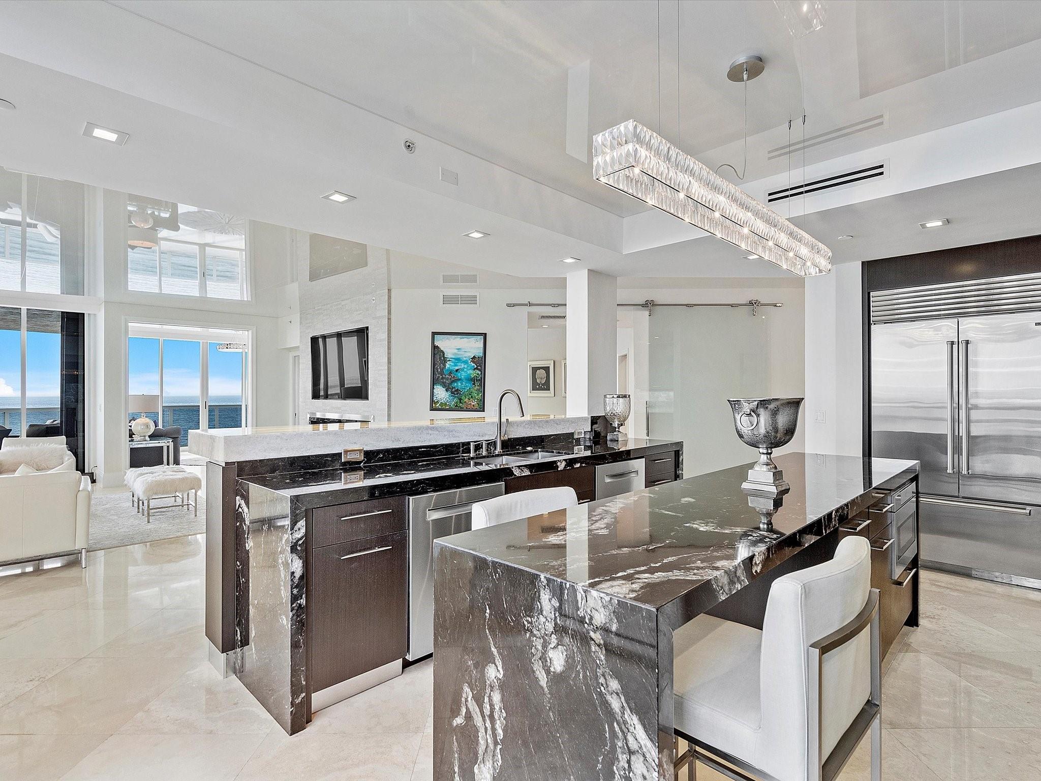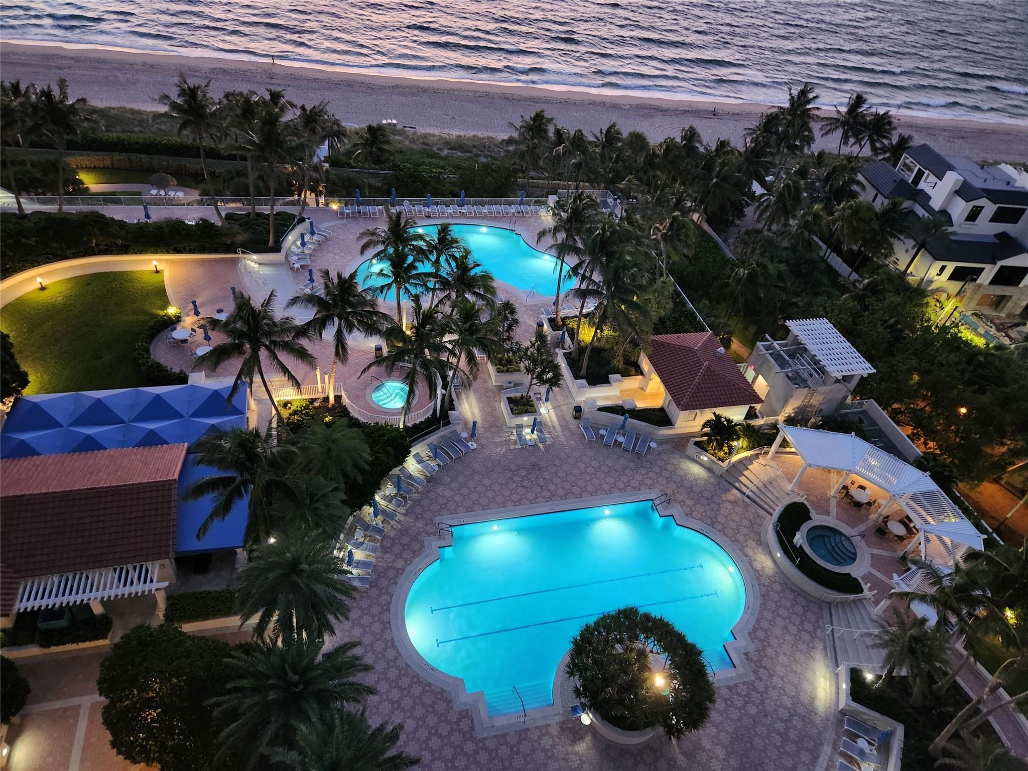 Direct Ocean Custom Renovated L'Hermitage Dream Home with 3 en-suites overlooking resort, sand, ocean, coastline. Magnificently renovations include new kitchen, baths, rooms, closets, stretch ceilings, entrance way. Private elevator, 2 SubZero Wine Towers. 2 GARAGE SPACES, large wraparound balcony. The most sensational sunrises. L'Hermitage is a resort-like complex with over 10 acres of Oceanfront/Beachfront property with tennis, fitness, fenced complex, attended beach. Pool deck has over 2.5 acres which includes an outdoor restaurant, a lap pool and a separate oceanside pool, 2 spas, kiddie pool, and ocean access. Fitness center, saunas, steam, massage. Restaurants/Salons/Shopping Minutes from Las Olas. Pet friendly.