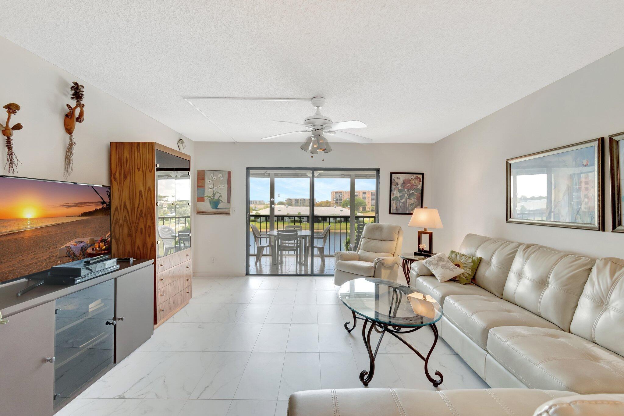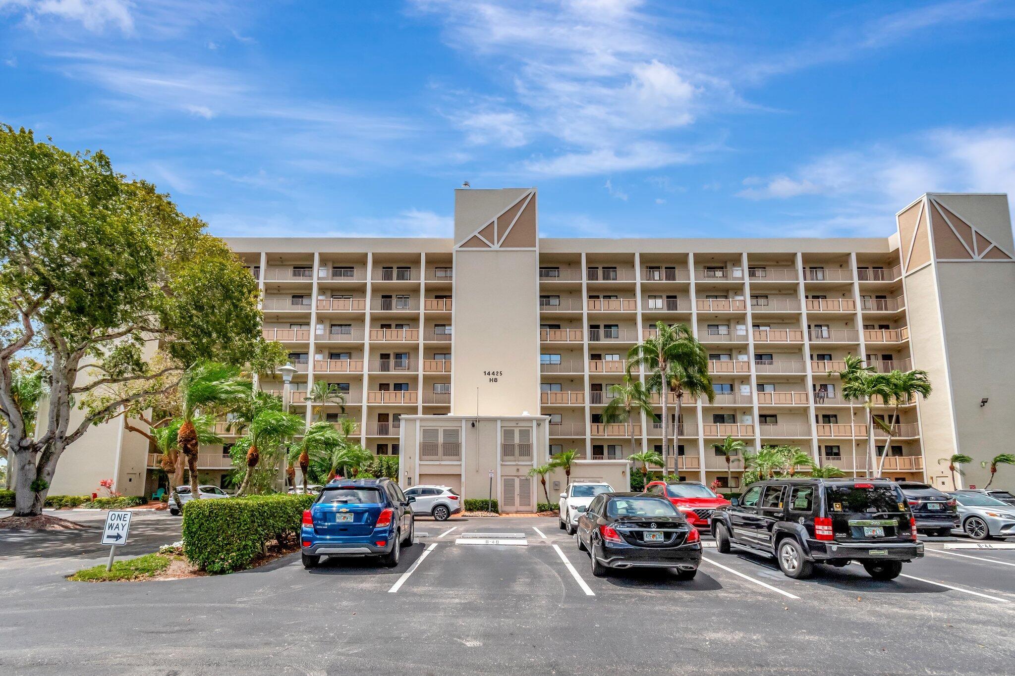 Immerse yourself in the vibrant lifestyle of Huntington Lakes, an exceptionally Active Adult Community. This third-floor unit at 14425 Strathmore Ln #304, Delray Beach, Florida, presents an enviable blend of comfort and convenience.Upon entry, ceramic tile flooring guides you through the welcoming layout--light streams in through generous windows, bathing the interior with warm Florida sunlight. The functional kitchen has beautiful cabinetry, a convenient pantry, and a pleasant eat-in area to enjoy casual meals.The featured room--a sizeable master bedroom--is a sanctuary of tranquility. A plush carpet provides warmth and softness underfoot, while a roomy walk-in closet affords plentiful storage.