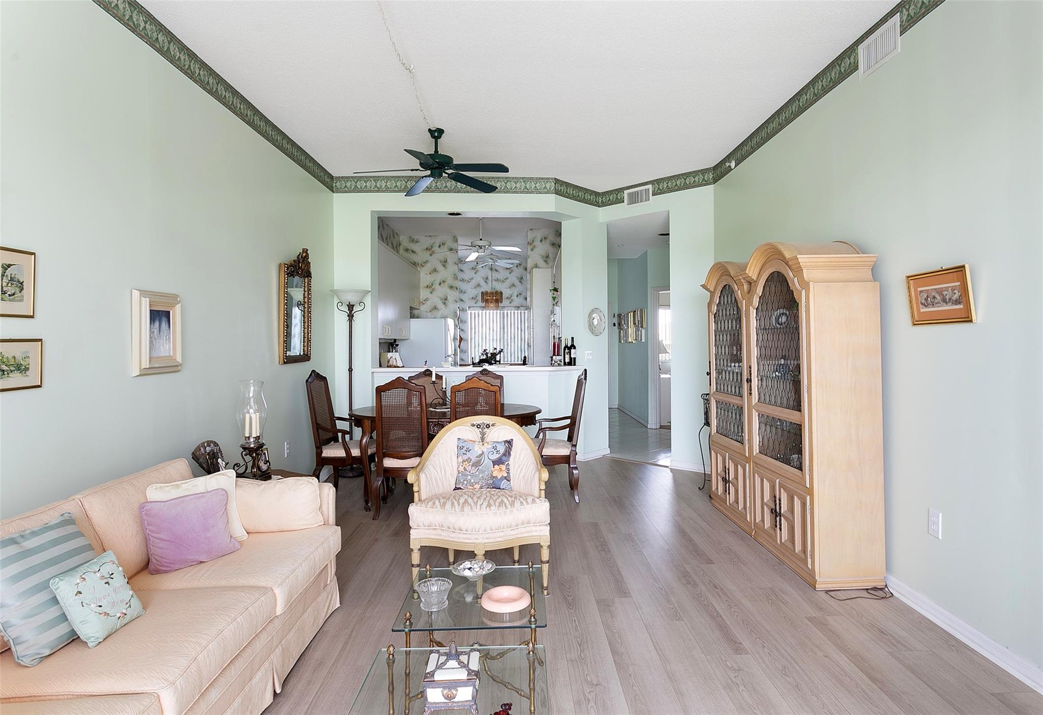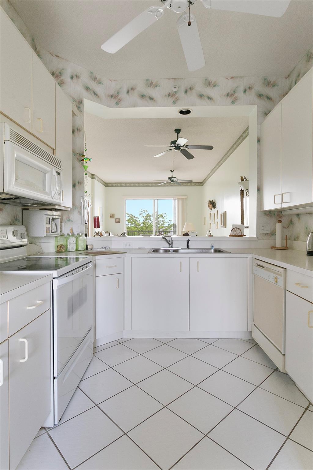 Welcome to this bright and spacious 2-bed 2-bath condo, perfectly situated on the top (4th) floor, offering serene lake and treetop views. Located in the sought-after Kings Point, a meticulously maintained 55+ active community, this home features high ceilings and an open-concept living/dining area that creates an airy and inviting atmosphere. The kitchen offers both an eat-in area and a large pass-through, making entertaining a breeze. Step onto the large, screened-in balcony—perfect for relaxing or enjoying outdoor dining. Additional conveniences include an in-unit washer and dryer and a deeded membership to Kings Point’s exceptional clubhouse, brimming with activities and resort-style amenities. Don’t miss this opportunity to embrace the South Florida lifestyle.
