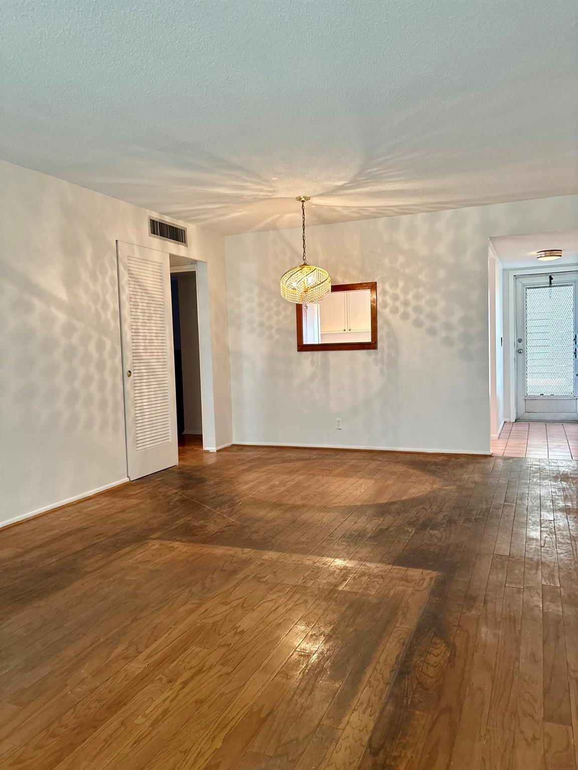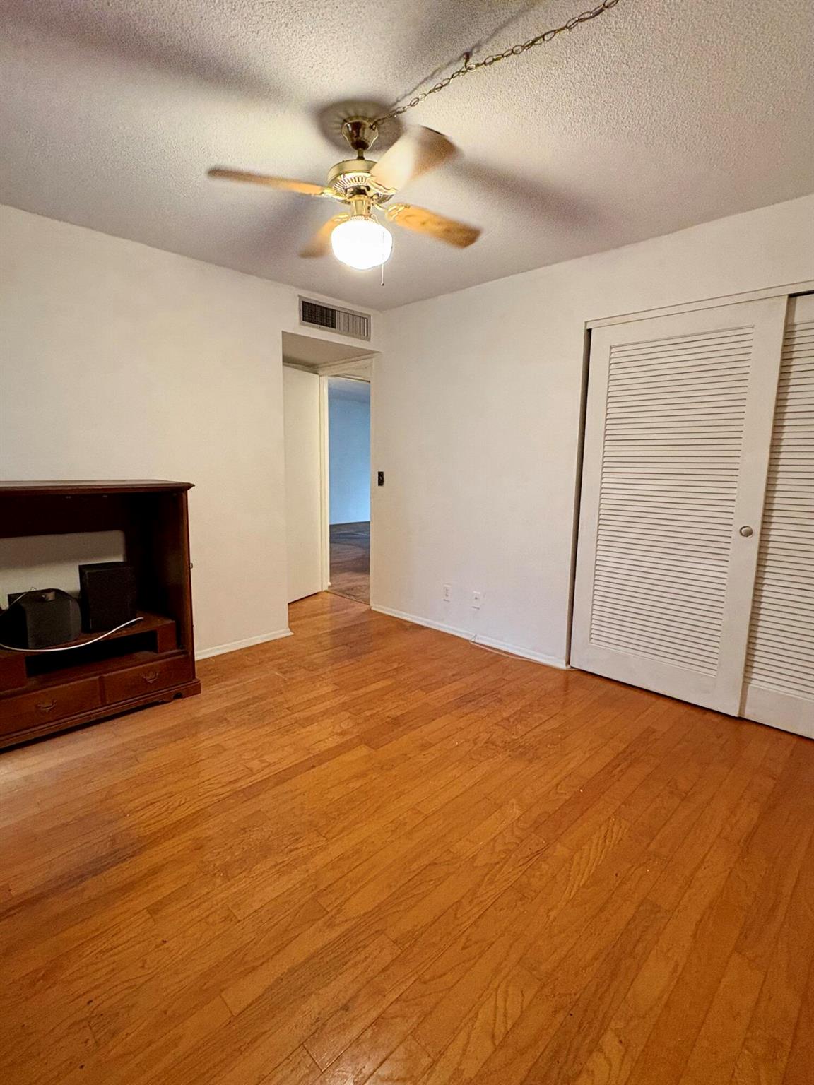 Take advantage of this opportunity to create your dream condo in the lovely 55+ community of Boundbrook! Centrally located in West Palm Beach, this freshly painted home features hardwood floors throughout, 2 spacious bedrooms, and 1 bathroom. The primary bedroom offers a walk-in closet and large sliding doors that lead to an extended back porch/sunroom, creating the perfect indoor-outdoor living space. As you enter, you'll find a bright kitchen with a window over the sink for natural light. Additional highlights include a washing machine, ice-cold HVAC, and room for storage. Conveniently located close to parking, the community pool, and the clubhouse for your enjoyment. With tons of potential and a MOTIVATED SELLER, this is a wonderful opportunity to bring your vision to life!