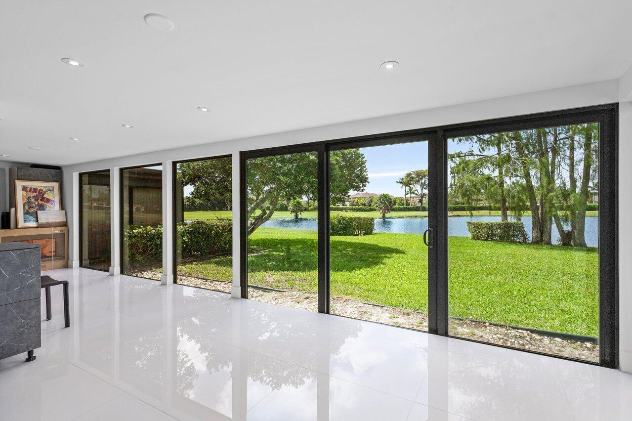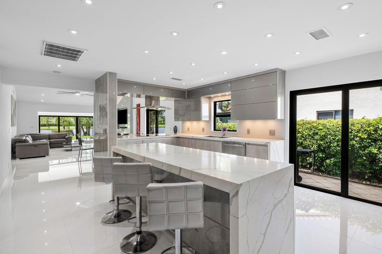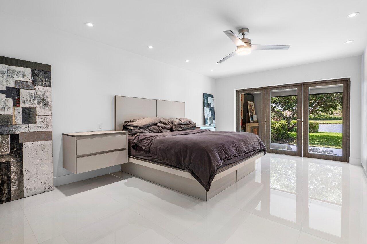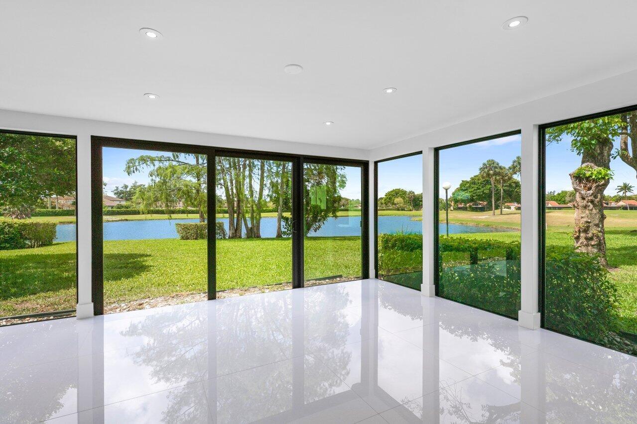 Modern masterpiece and builder's model home residence with the highest & finest custom finishes! Completely remodeled with breathtaking views of the lakes, golf course, wildlife and nature with the most impressive sunsets from inside and outside your home. Cypresses of Boca Lago is gated and patrolled. New roof and A/C systems are 2022. New paved roads & driveways 2024. Complete hurricane impact windows and doors! Smart home technology. Kitchen equipped with S/S GE Profile appliances & double-oven. 32''x32'' rectified glass-porcelain floors! Master bathroom with spacious infinity shower, extra-large rain head with hand held & power jets, frame-less glass doors, floating vanities with double sink & under mount lighting. Additional features of this masterpiece include Blum under-mount...