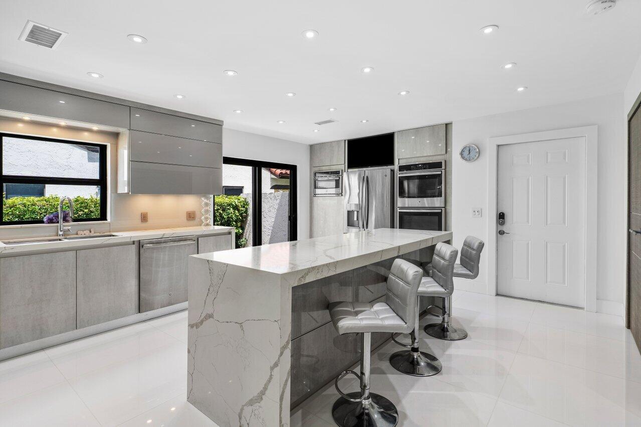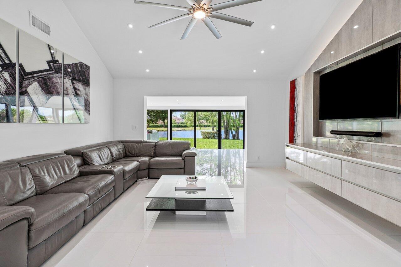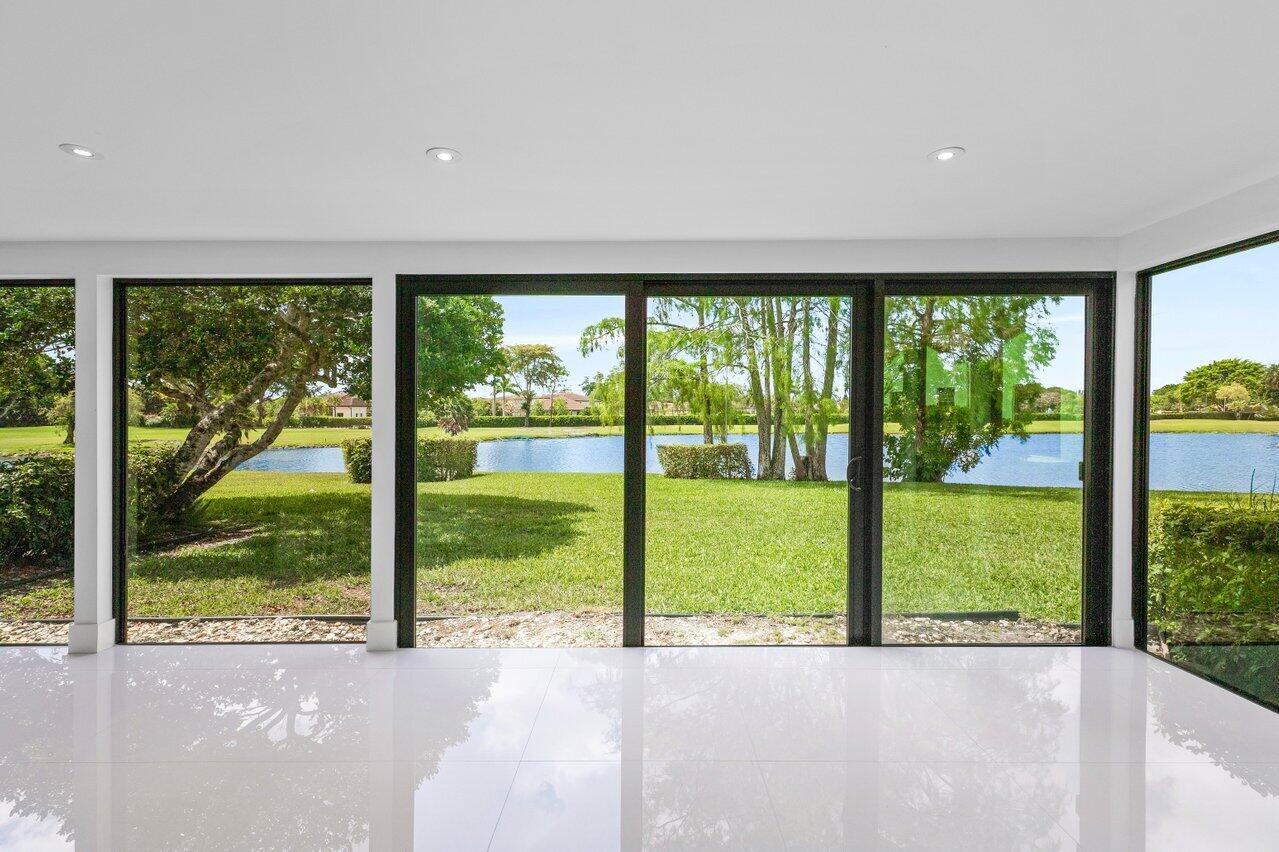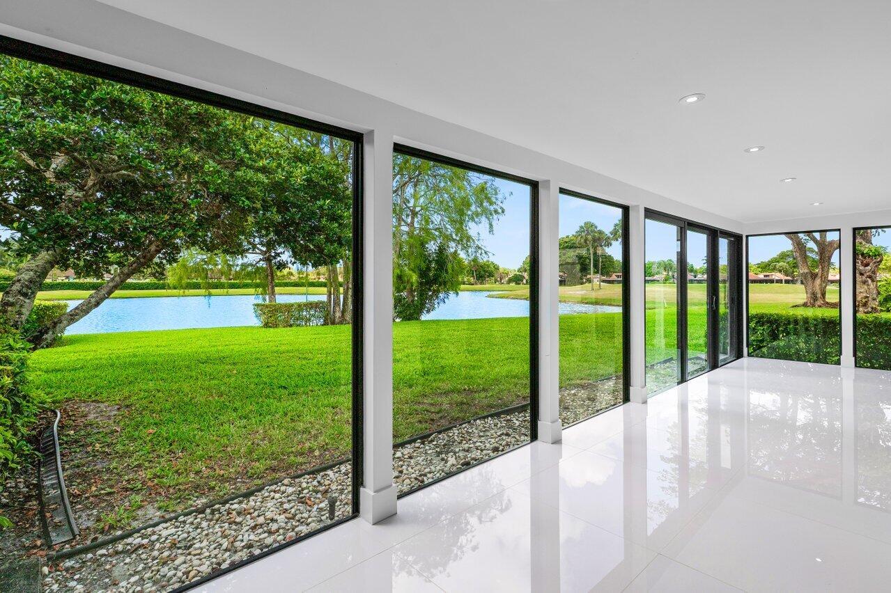 Modern masterpiece and builder's model home residence with the highest & finest custom finishes! Completely remodeled with breathtaking views of the lakes, golf course, wildlife and nature with the most impressive sunsets from inside and outside your home. Cypresses of Boca Lago is gated and patrolled. New roof and A/C systems are 2022. New paved roads & driveways 2024. Complete hurricane impact windows and doors! Smart home technology. Kitchen equipped with S/S GE Profile appliances & double-oven. 32''x32'' rectified glass-porcelain floors! Master bathroom with spacious infinity shower, extra-large rain head with hand held & power jets, frame-less glass doors, floating vanities with double sink & under mount lighting. Additional features of this masterpiece include Blum under-mount...