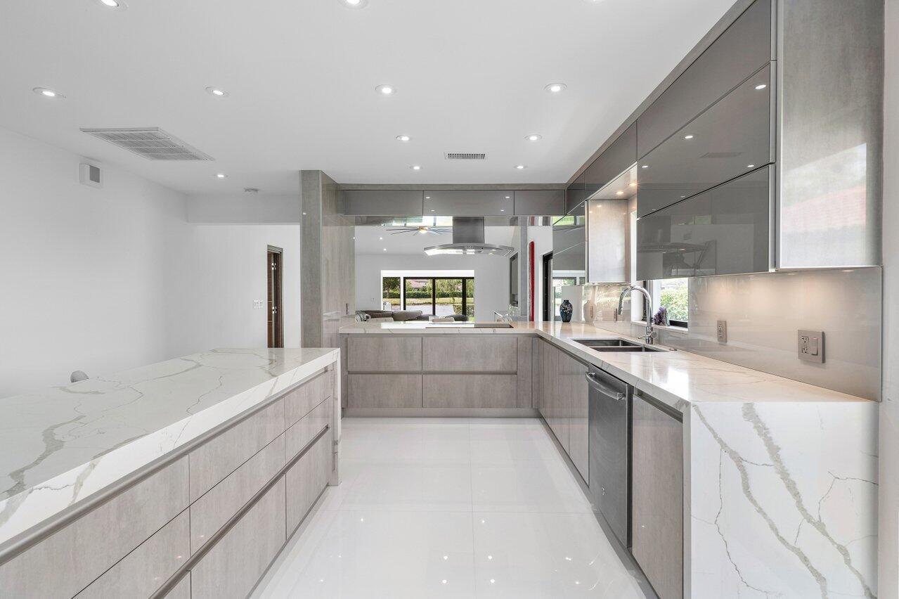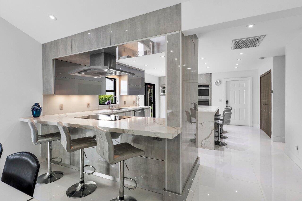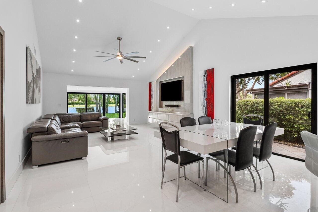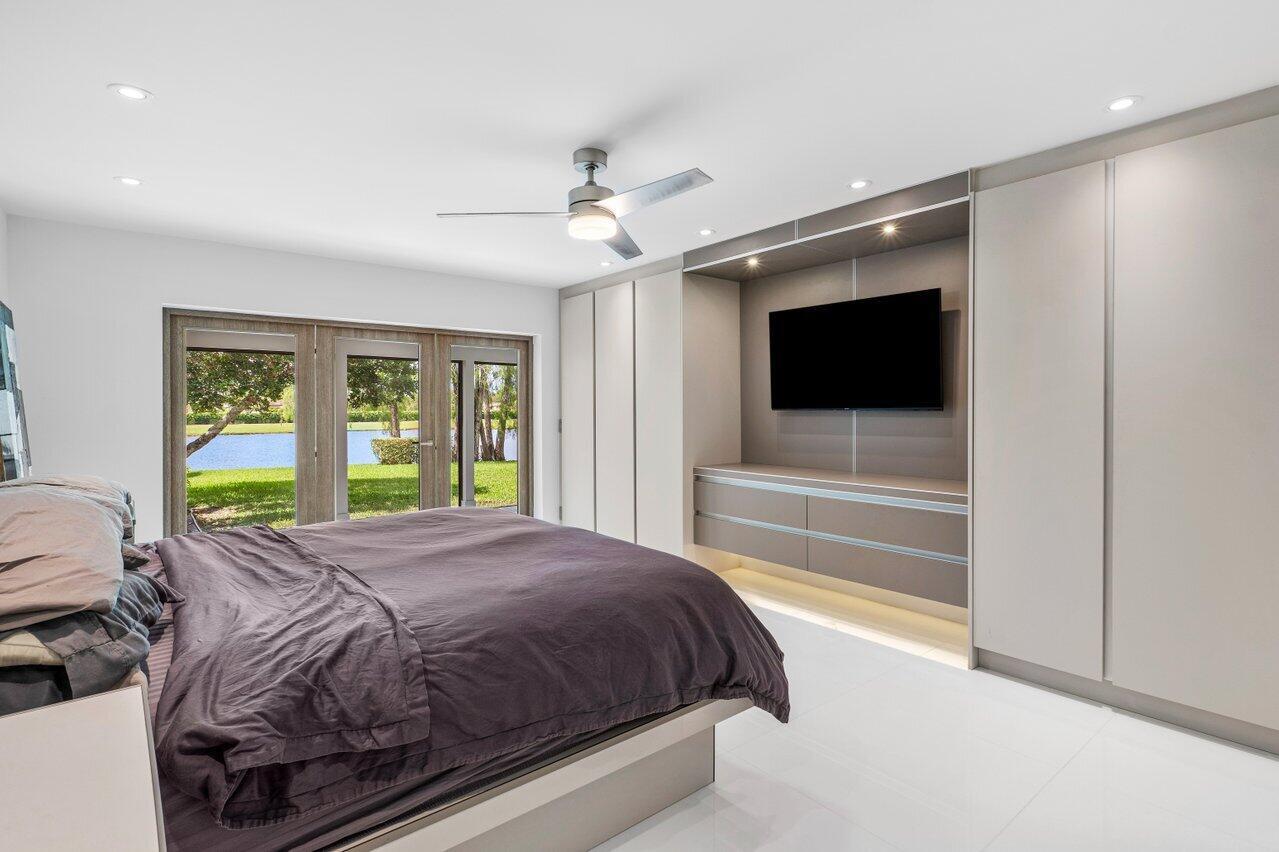 Modern masterpiece and builder's model home residence with the highest & finest custom finishes! Completely remodeled with breathtaking views of the lakes, golf course, wildlife and nature with the most impressive sunsets from inside and outside your home. Cypresses of Boca Lago is gated and patrolled. New roof and A/C systems are 2022. New paved roads & driveways 2024. Complete hurricane impact windows and doors! Smart home technology. Kitchen equipped with S/S GE Profile appliances & double-oven. 32''x32'' rectified glass-porcelain floors! Master bathroom with spacious infinity shower, extra-large rain head with hand held & power jets, frame-less glass doors, floating vanities with double sink & under mount lighting. Additional features of this masterpiece include Blum under-mount...