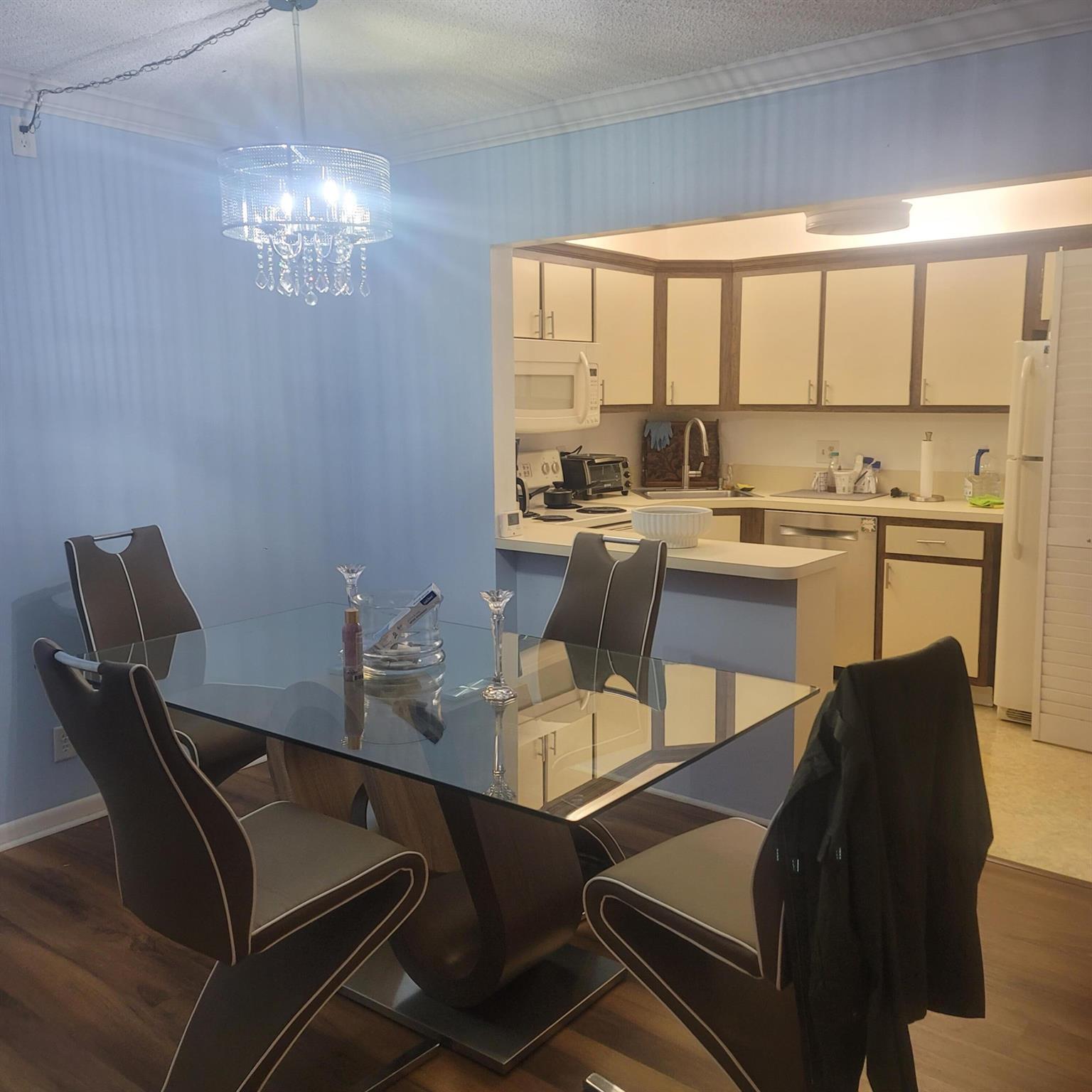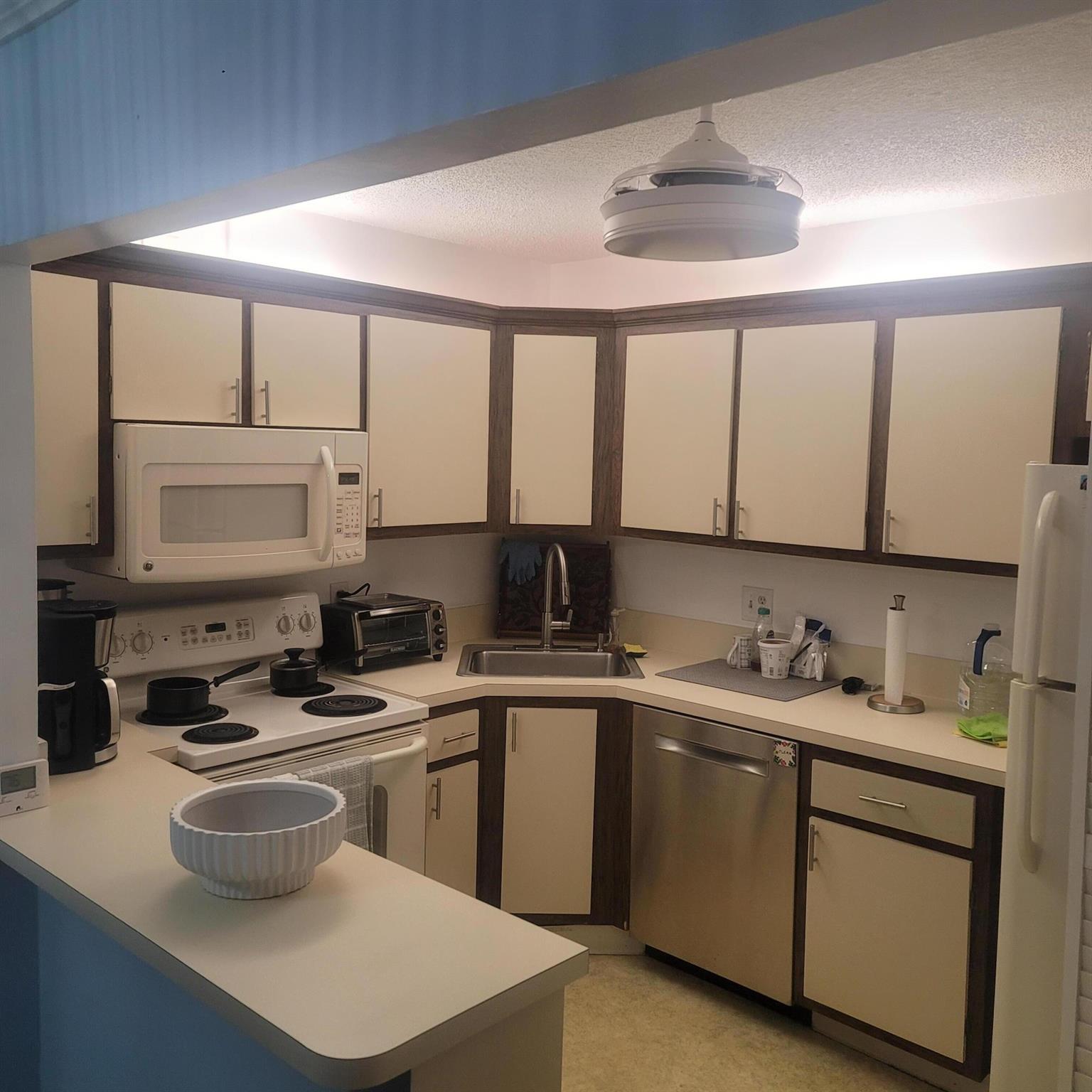 This move-in ready condo offers 2 bedrooms and 1.5 baths on the convenient corner of the first floor. The unit features impact windows, blinds/window coverings, and crown molding. The condo has been meticulously maintained. The kitchen is fully stocked and functional. The laundry room is spacious with pantry and extra cabinetry. Don't hesitate on this opportunity, as it won't last long on the market! Start enjoying the best of Florida living with this fabulous condo.