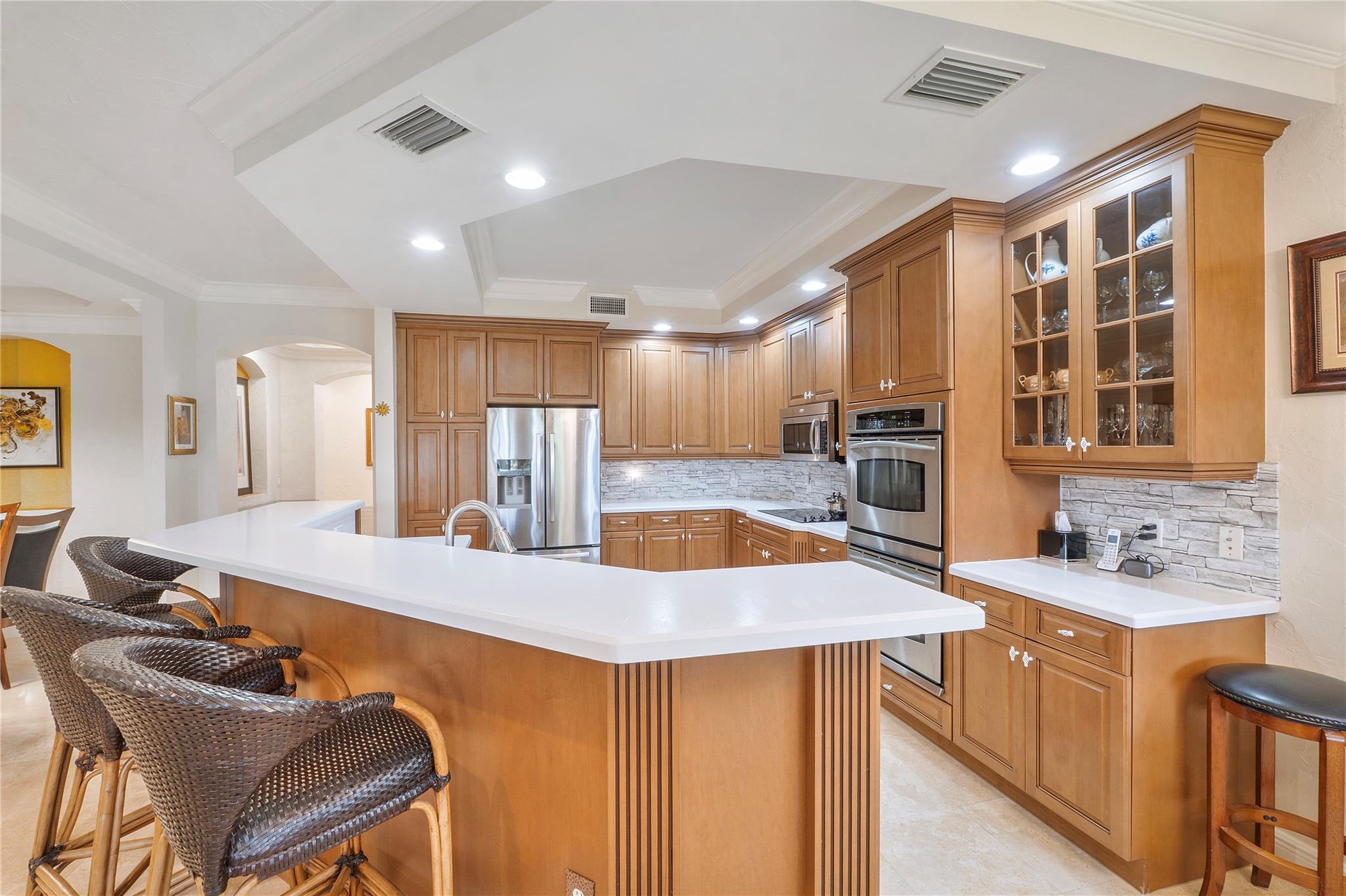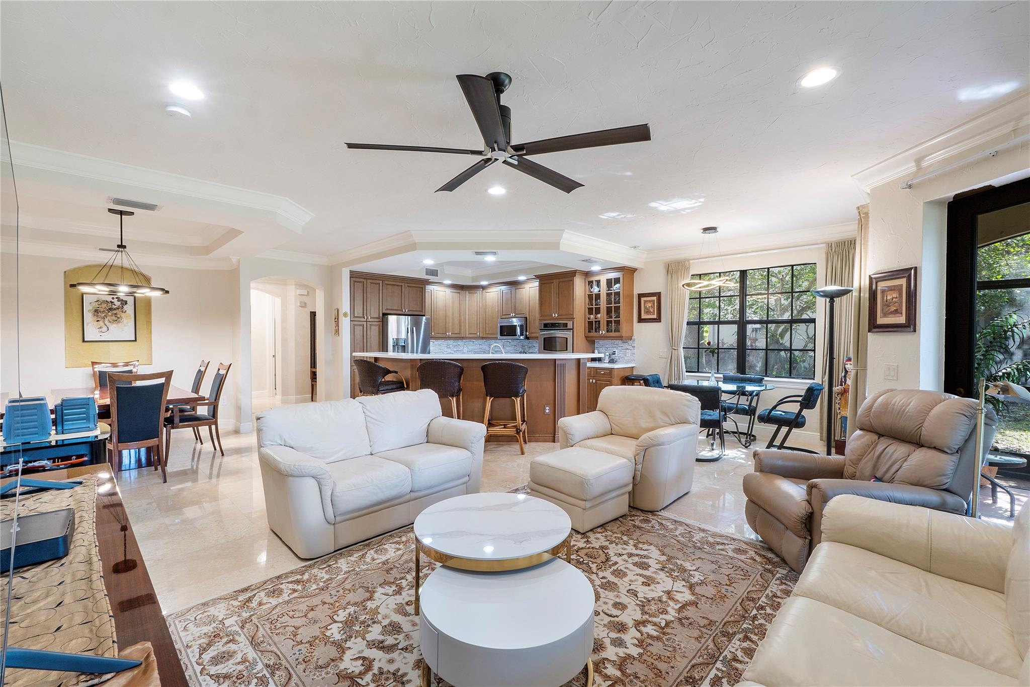 $40,000 price reduction! 3-bedrooms, 2-baths coach home corner residence in Caseras. Price adjustment to make your own updates. 1,663 under air coach home features a first-floor layout with a 2 CG, +offers a range of amenities, including a new roof, exterior insurance, painting, lawn maintenance, roof repair, exterior painting provided by the homeowners' association. Residents have access to the community's fitness center, tennis, pickleball, bar, restaurant, golf course, and pool. The residence features impact glass windows & a private patio that backs directly to the golf course, providing a serene and picturesque setting. Beautiful onsite restaurant, pickleball, gym, tennis, an ideal living opportunity for those seeking a maintenance-free lifestyle. Also, for Rent $5000 monthly annual