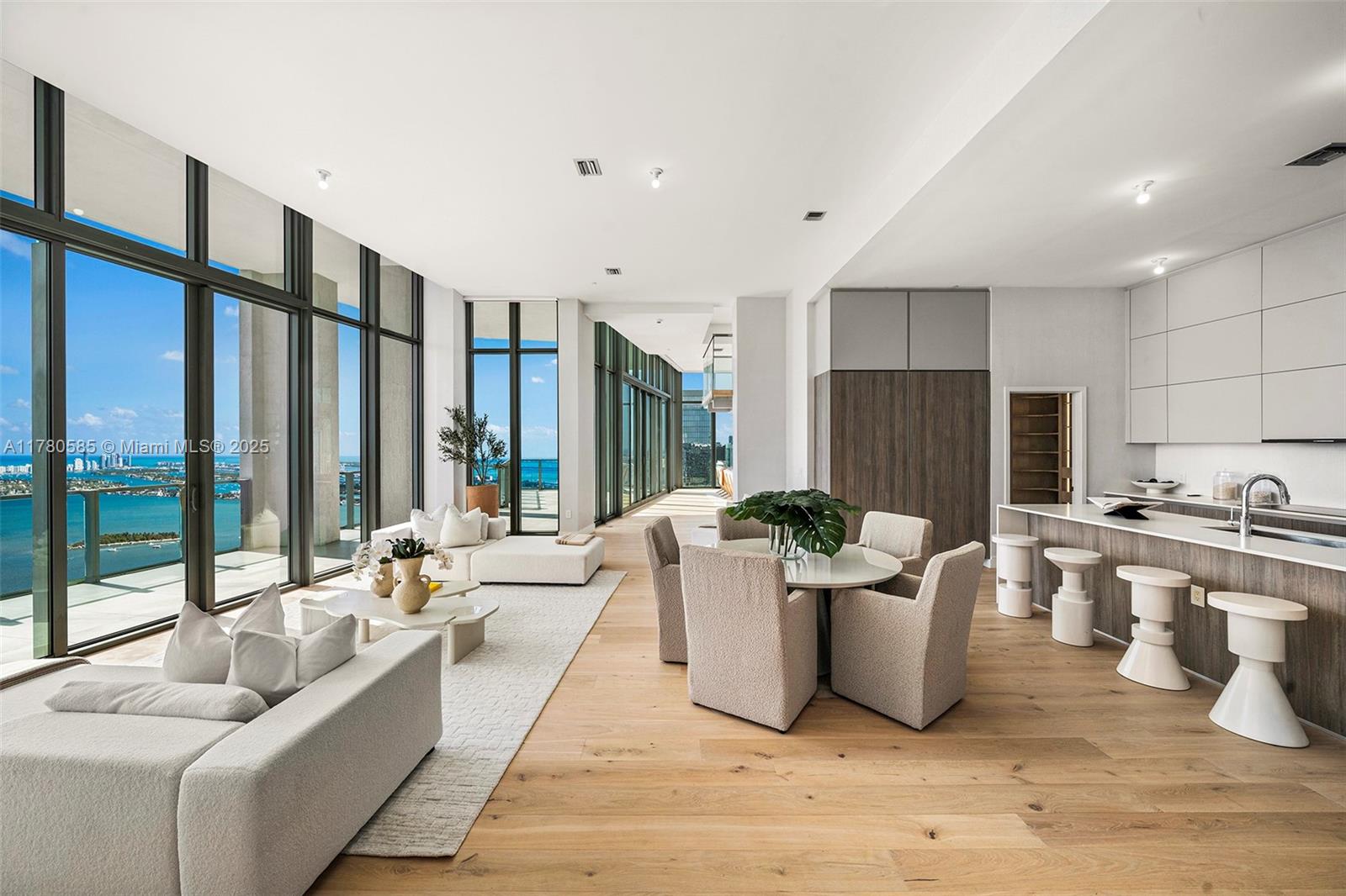This 11,884sf Penthouse possesses qualities that set it apart from any penthouse in Miami. Boasting voluminous 15 ft ceilings, a private roof deck with pool and summer kitchen, 3 primary suites, 270 degree breathtaking views of the ocean, bay, island, downtown, Wynwood and more. Enjoy luminous cityscapes and ocean blues from multiple vantage points. Perfect for entertaining, every detail of this modern masterpiece has been reimagined for a home that exceeds even the highest of expectations. Nestled in the heart of Miami within minutes to Design District/SoBe/Brickell, enjoy quick access to top restaurants, retail, sports, art, and culture.