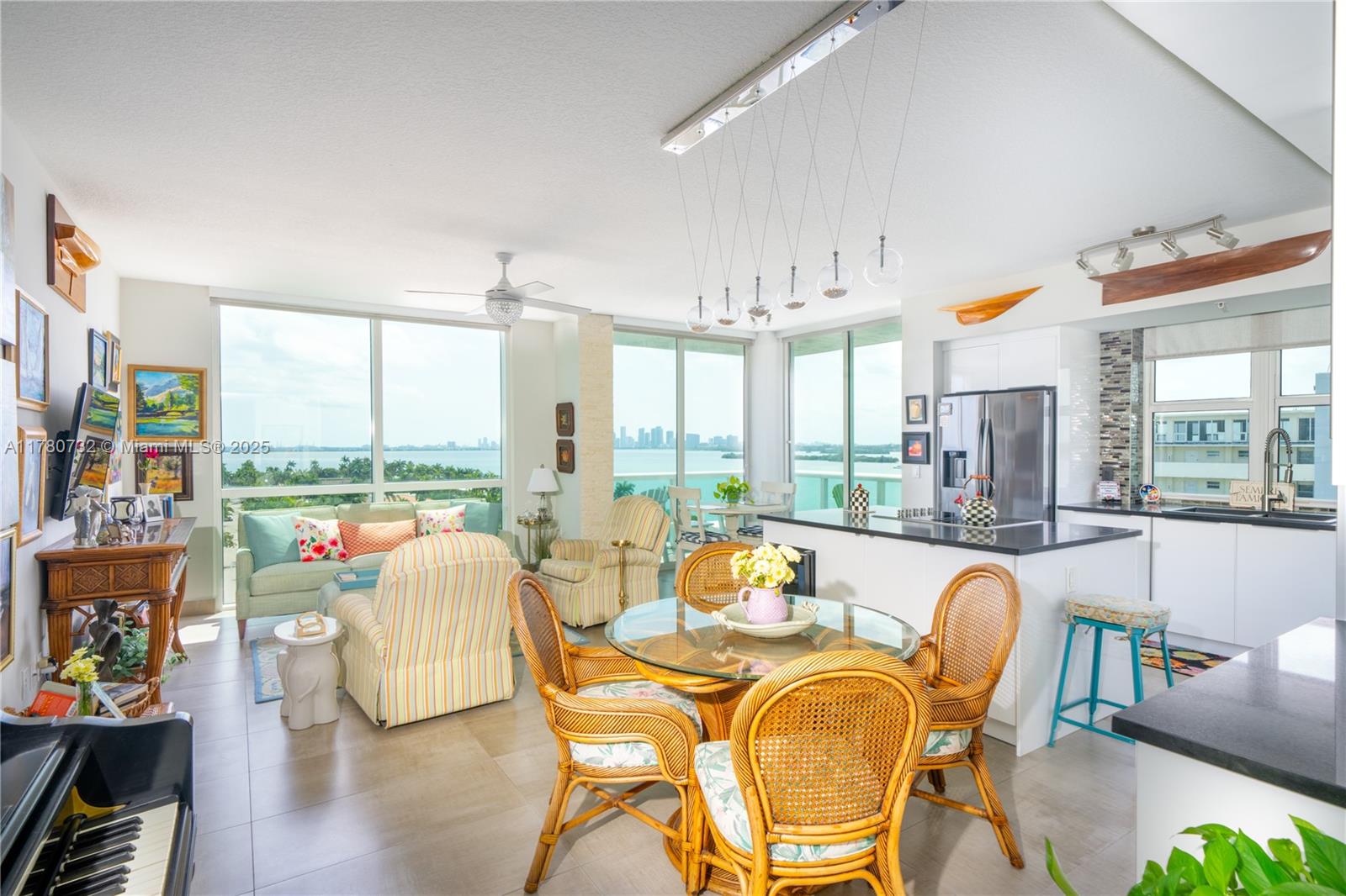 Accepting backup offers. Luxury Waterfront Corner Unit | Enjoy breathtaking Intracoastal and skyline views from this 3-bed, 2-bath corner unit with floor-to-ceiling impact windows and 2 private balconies. Features include an upgraded kitchen with granite counters, stainless steel appliances, wine cooler, and modern cabinetry. Spacious living area with remote-control shades, new tankless water heater, and ceiling fans in every room. Guest room has a custom Murphy bed. Includes 2 garage spaces + unlimited valet. Direct bay access for kayaking and paddleboarding, plus free storage for bikes and gear. Resort-style amenities: 2 pools, spa, gym, sauna, 24-hr security, concierge, and more. Located in booming North Bay Village, undergoing a $2B transformation—don’t miss this rare opportunity!