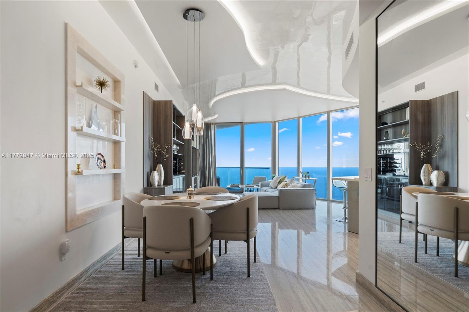 This elegant 2-bed, 2.5-bath, 1,709 SF residence offers stunning ocean and Intracoastal views from floor-to-ceiling glass and an expansive terrace. Featuring interiors by Giorgio Armani, the unit boasts an open-concept layout, Italian-designed kitchen by Armani Dada, Sub-Zero/Wolf appliances, and high-end finishes throughout. The spacious primary suite includes direct access to the terrace, custom walk-in closets, and a luxurious spa-inspired bathroom with a tub, dual vanities, and marble finishes. The second bedroom is also en-suite, offering privacy and comfort for guests or family. Residents can enjoy world-class amenities. Located in the heart of Sunny Isles Beach, this residence offers a truly elevated lifestyle with proximity to fine dining, luxury shopping, and premier schools.