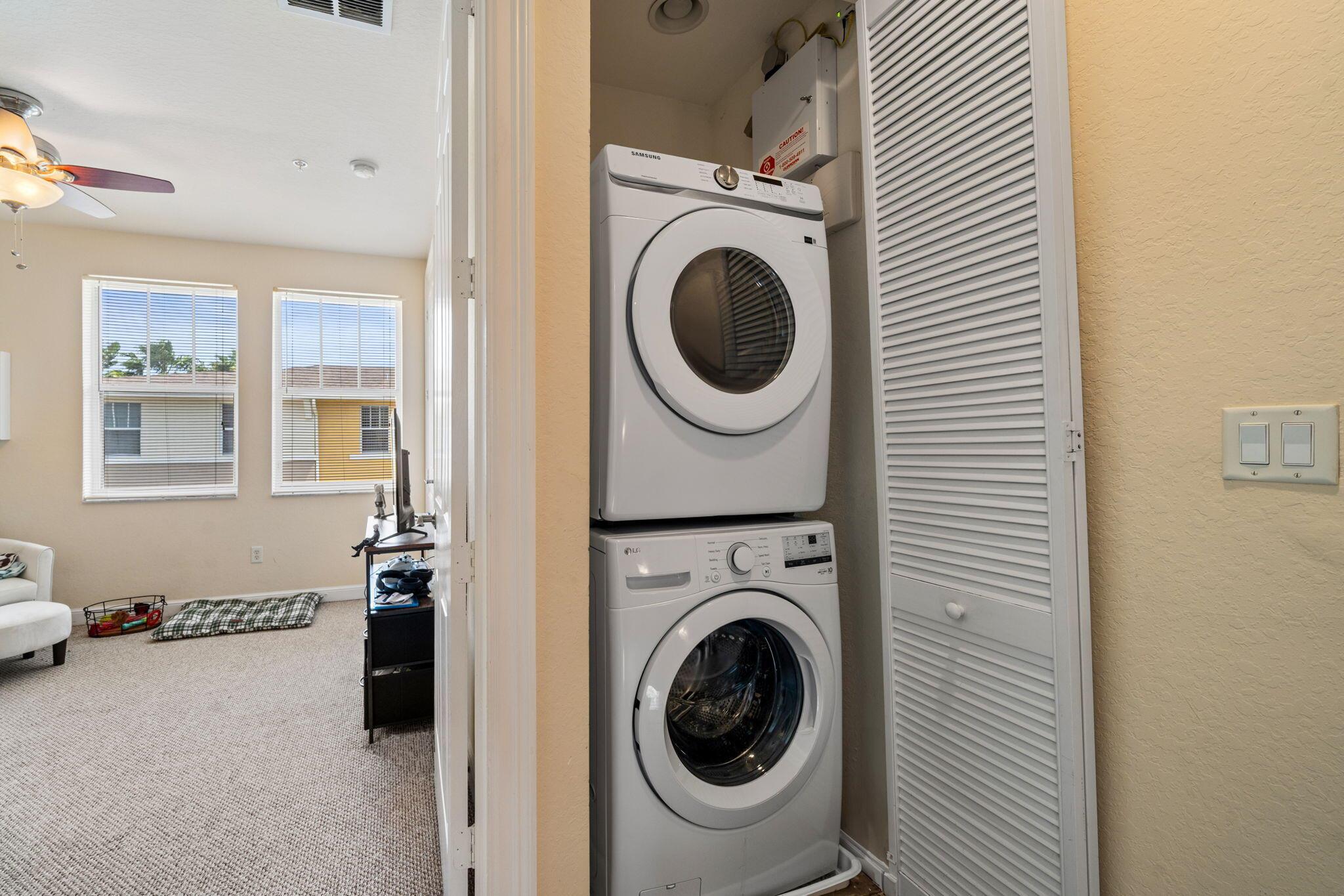PRICE REDUCED TO SELL! MOTIVATED SELLERS! MANNED GATE, CLEAN, QUIET,. Located just minutes from Downtown West Palm Beach, Palm Beach Island, and the Atlantic Ocean. This spacious 2-bedroom + den layout offers flexible living, perfect for first-time buyers, small families, or investors. NO HOPA & ABLE TO RENT OUT. Enjoy a bright, open floor plan with generous living areas, a versatile den ideal for a home office or guest space, and the convenience of an IN UNIT WASHER & DRYER and PRIVATE GARAGE.Community amenities include a resort-style pool, fully equipped gym, and modern clubhouse all designed to support a comfortable and active lifestyle. Prime location, secure community, and incredible value- this home has it all. READY FOR SHOWINGS AND ALL OFFERS!