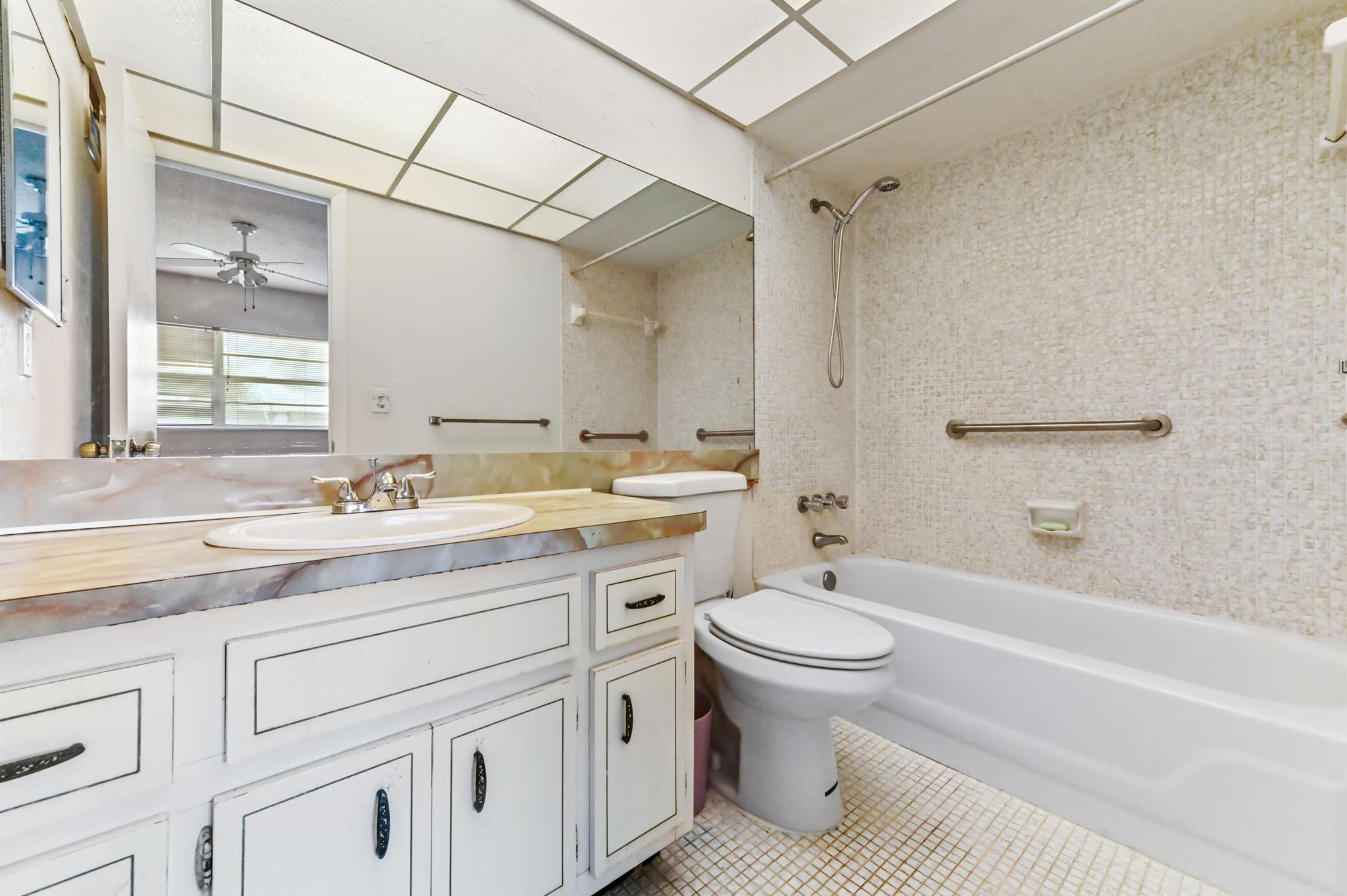 Welcome to this inviting 2-bedroom, 2-bathroom upper-level condo located in the desirable 55+ community of Lauderhill East. This cozy unit offers a functional galley-style kitchen, perfect for preparing your favorite meals, and a combined living and dining area that provides a cozy space for everyday living or entertaining. Plush carpeting flows throughout the living spaces, creating a soft and comfortable atmosphere.