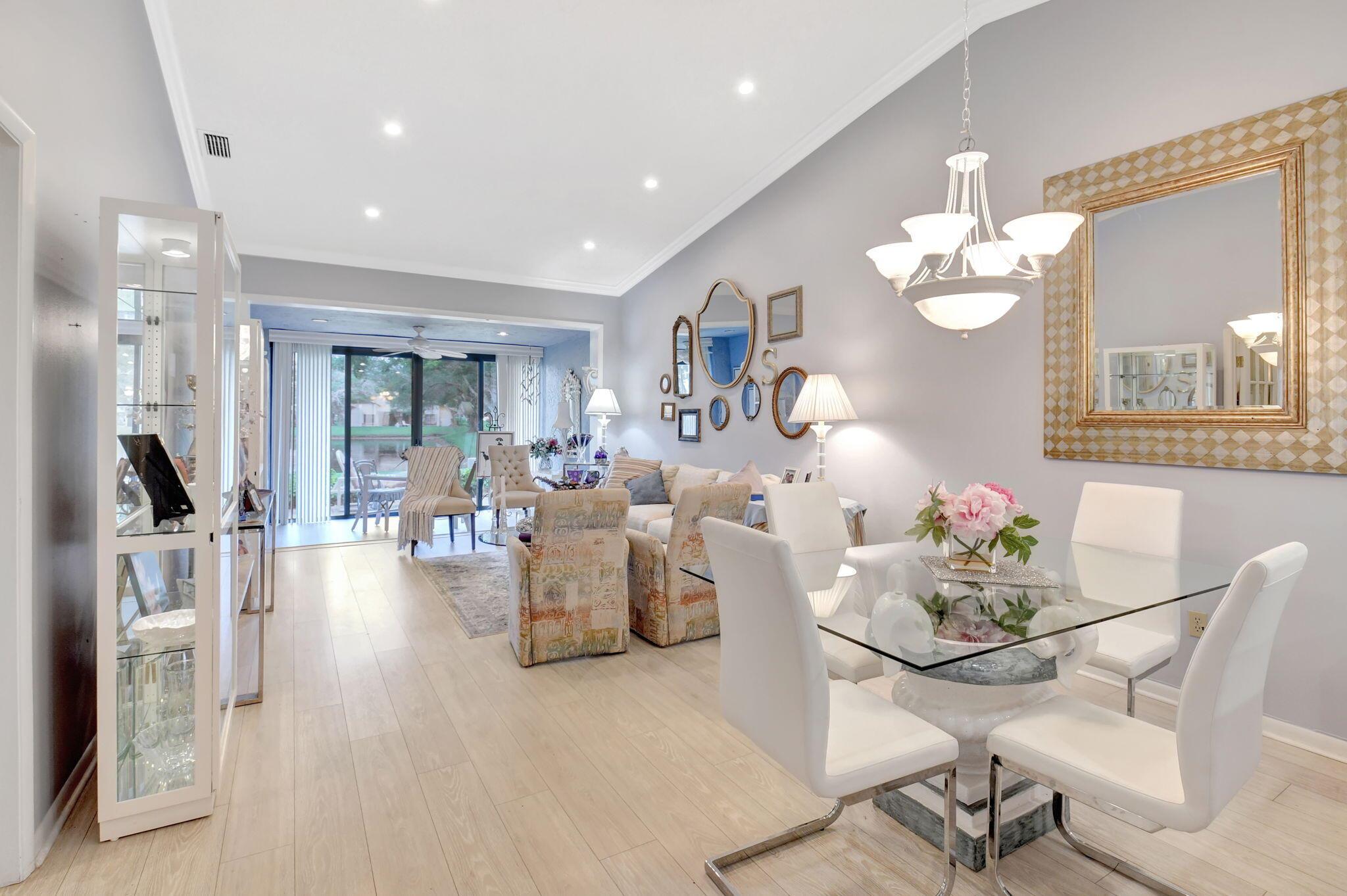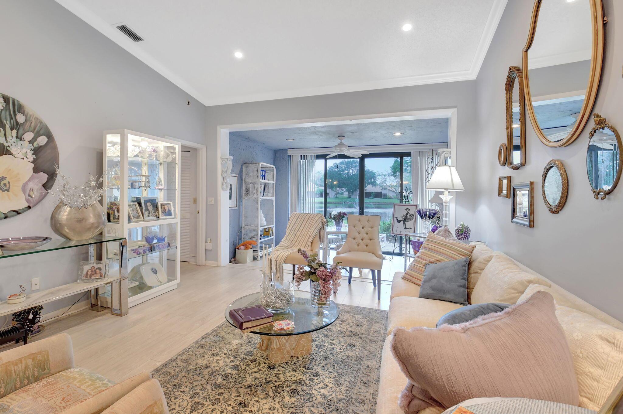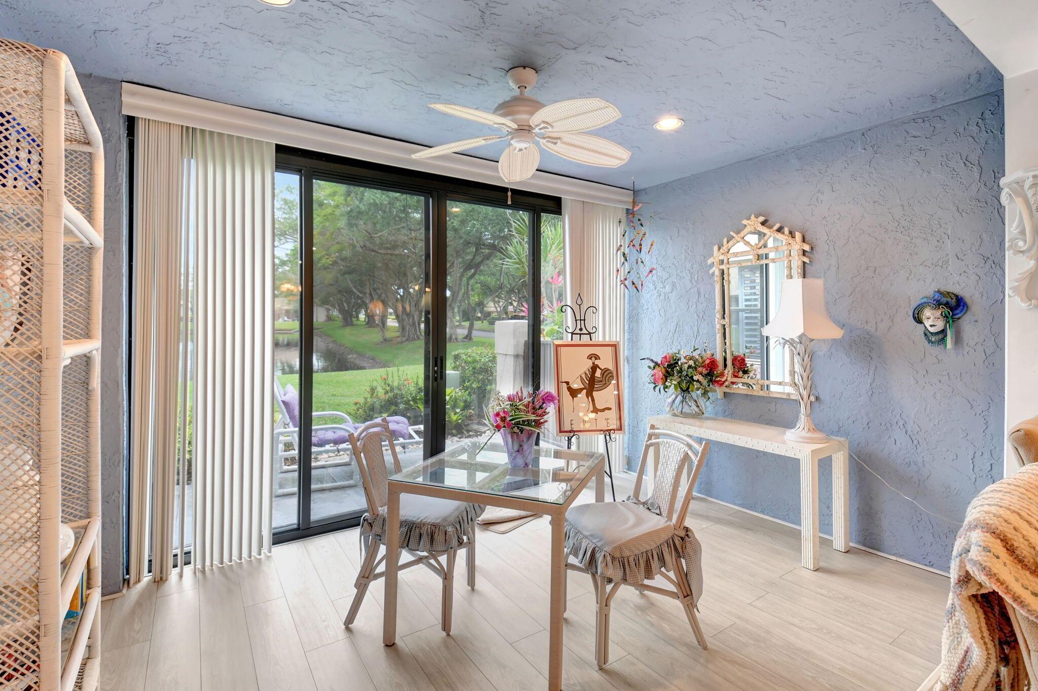 Great long lake view - 3 Bedroom, 2.5 Bathroom updated Villa with a private courtyard and 1.5 car garage. Enjoy the lake view from almost everywhere in this home. Updated eat in kitchen with plenty of cabinet space. Updated bathrooms plus new windows with accordion shutters plus beautiful Plantation Shutter throughout. The roof was replaced in 2024. Easy walking distance to clubhouse, community pools , and other amenities. Boca Delray is a non-mandatory membership community with a 24 hour manned gate, newly remodeled clubhouse, fitness center, 2 community pools, Har Tru tennis courts, Pickleball, bocce, and an 18 hole executive golf course. Affordable golf memberships are available.