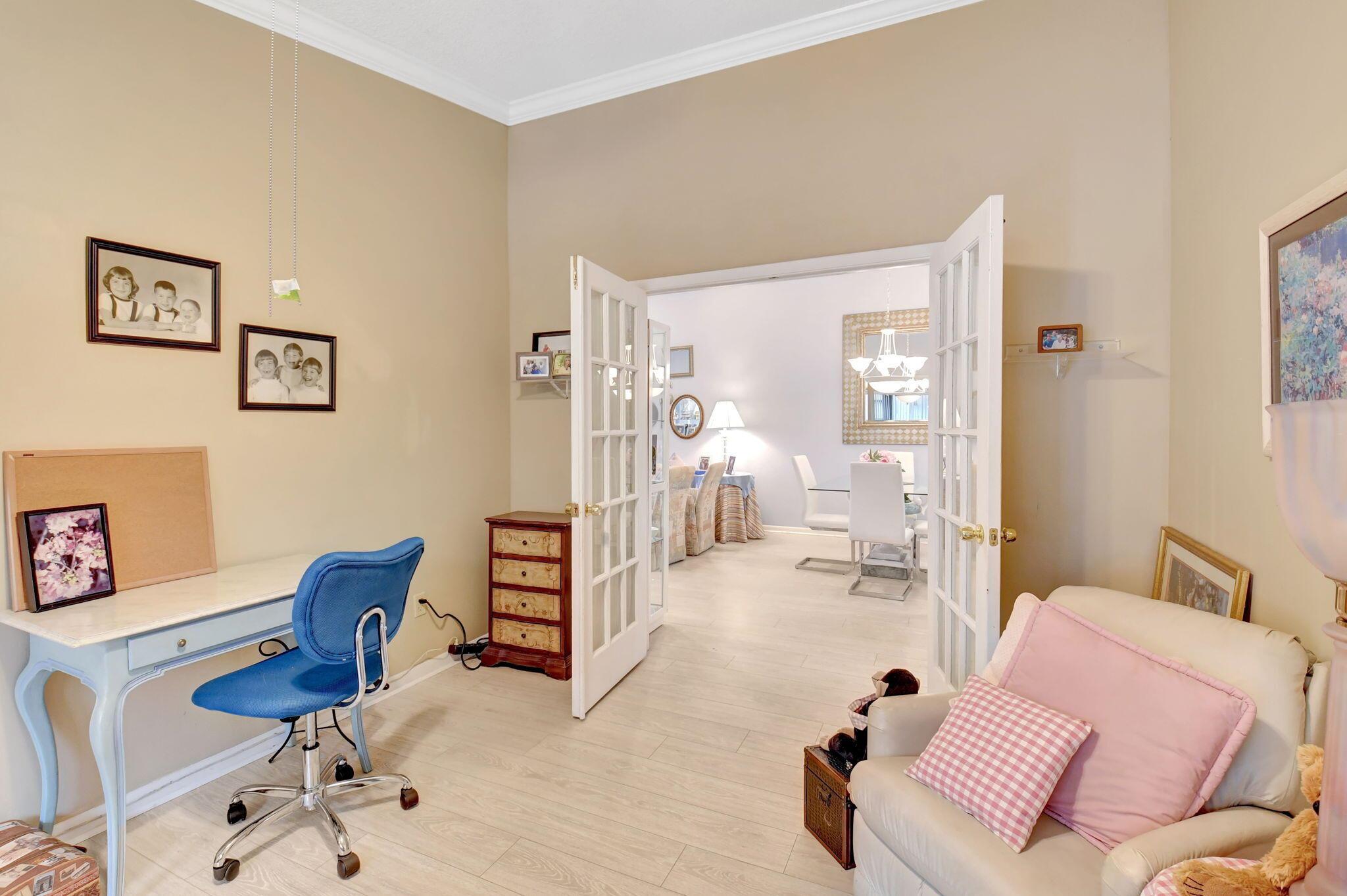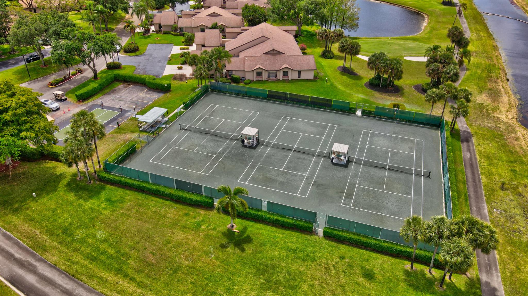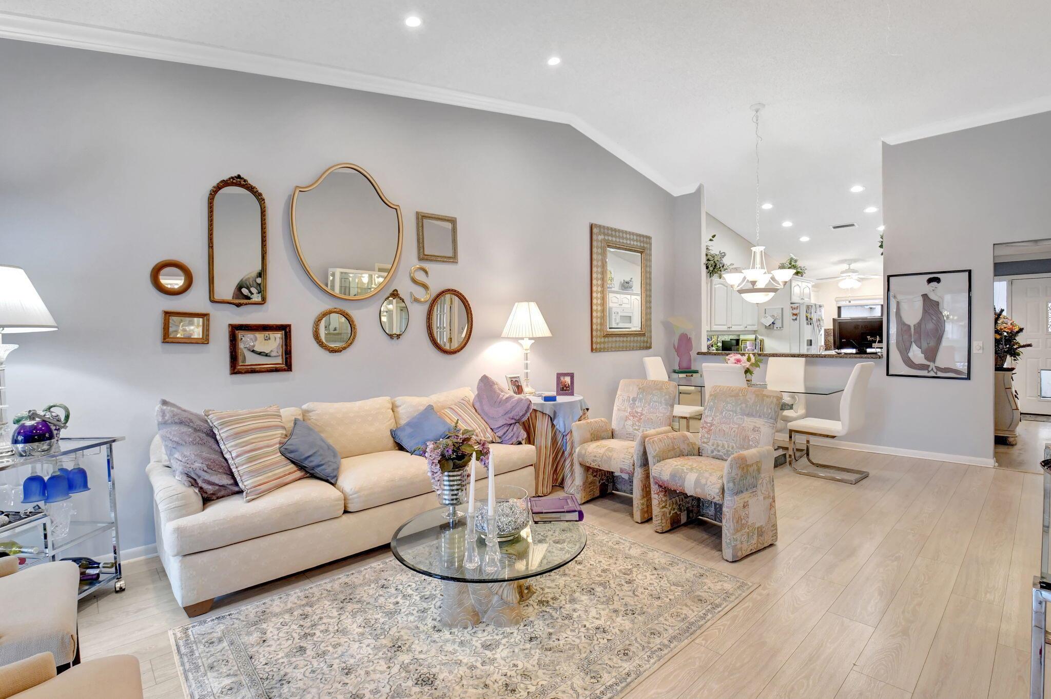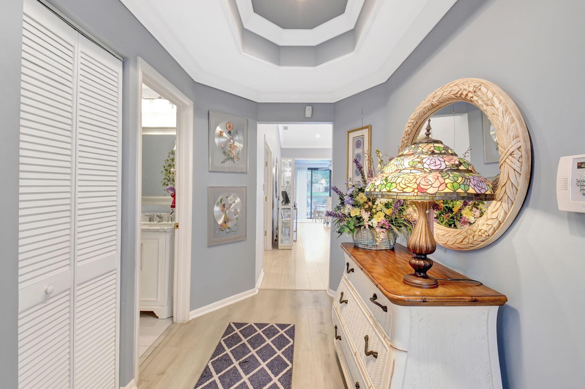 Great long lake view - 3 Bedroom, 2.5 Bathroom updated Villa with a private courtyard and 1.5 car garage. Enjoy the lake view from almost everywhere in this home. Updated eat in kitchen with plenty of cabinet space. Updated bathrooms plus new windows with accordion shutters plus beautiful Plantation Shutter throughout. The roof was replaced in 2024. Easy walking distance to clubhouse, community pools , and other amenities. Boca Delray is a non-mandatory membership community with a 24 hour manned gate, newly remodeled clubhouse, fitness center, 2 community pools, Har Tru tennis courts, Pickleball, bocce, and an 18 hole executive golf course. Affordable golf memberships are available.