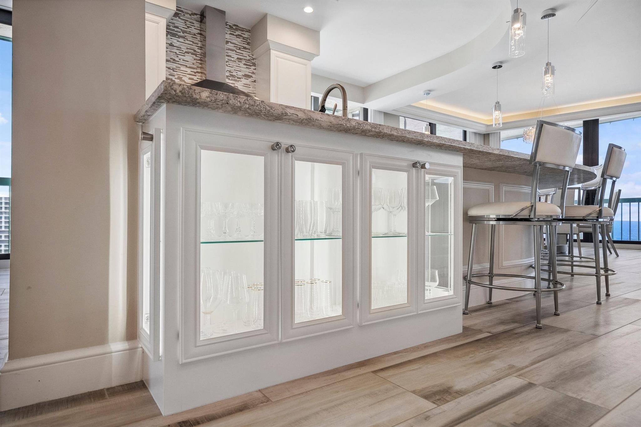 Sky-High Luxury: Northeast Corner Penthouse with Unrivaled ViewsThis extraordinary northeast corner penthouse offers an unmatched vantage point where azure waters meet endless sky. Meticulously reimagined with extensive bespoke upgrades, this 3-bedroom, 3-bathroom haven showcases panoramic ocean-to-river vistas through premium impact-resistant glass.The chef-inspired kitchen features sleek quartz countertops, professional-grade appliances, and an elegant wet bar with custom cabinetry--perfect for entertaining while enjoying breathtaking views.Notable enhancements include new porcelain tile throughout, impact-resistant sliders and windows, and refreshed balconies extending the living space outdoors. The crowning glory? A spectacular rooftop terrace--your private oasis in the sky for