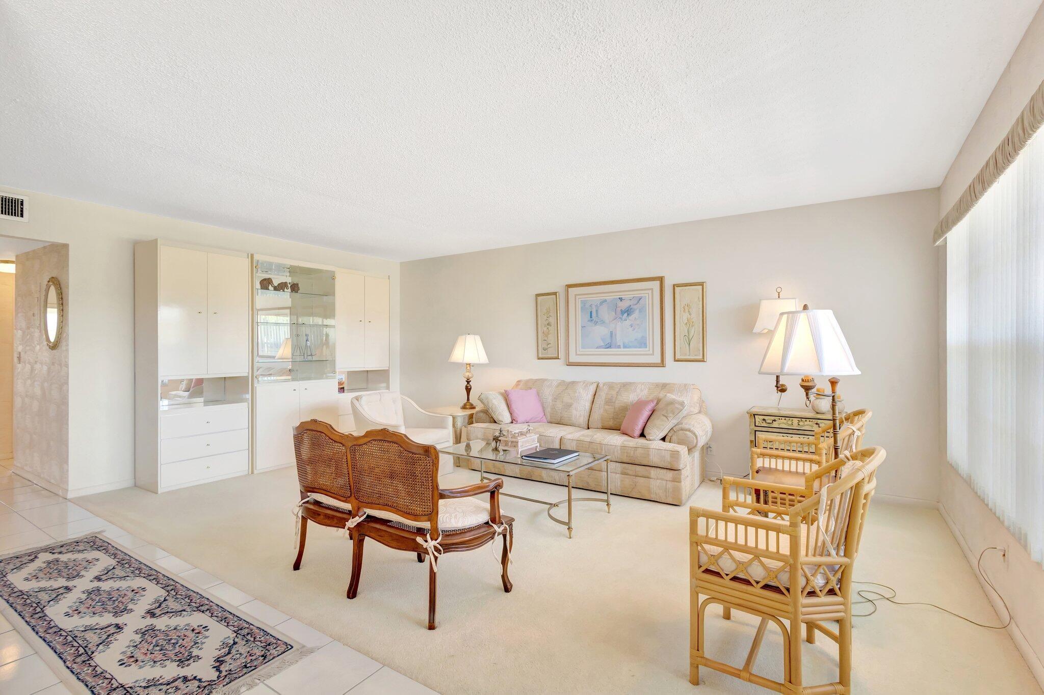 DISCOVER RESORT STYEL LIVING IN THIS EXTRA LARGE SECOND FLOOR CONDO IN THE SOUGHT AFTER WELLINGTON F ASSOCIATION. LUXURY BUILDING WITH NEW ROOF, ELEVATOR ,TRASH SHOOTS AND 2 LAUNDRY ROOMS ON EVERY FLOOR. THIS COMFORTABLE 2 BEDROOM 2 FULL BATH UNIT OFFERS NEW HOT WATER TANK, CENTRAL AIR AND IS FULLY FURNISHED AND MOVE IN READY. ENJOY THE CONVENIENCE OF 2 PRIVATE POOLS. Assigned parking spot plus visitor parking available; local bus for errands/shopping both within & outside The Village; COME AND ENJOY RESORT STYLE LIVING IN THIS GATED COMMUNITY FOR ADULTS 55+. Clubhouse with theater, shows, movies, craft and card rooms, billiards, aerobics, yoga, and dance classes. GREAT LOCATION: close to shops, restaurants, PBI airport and beaches.