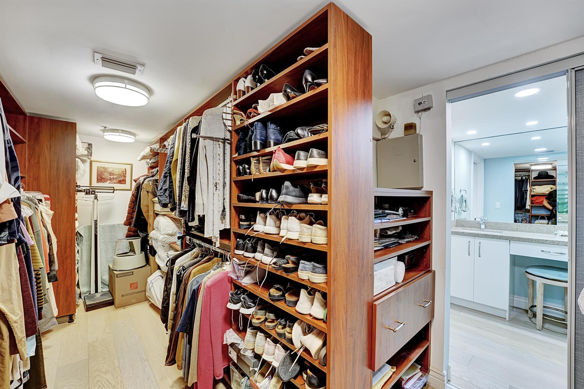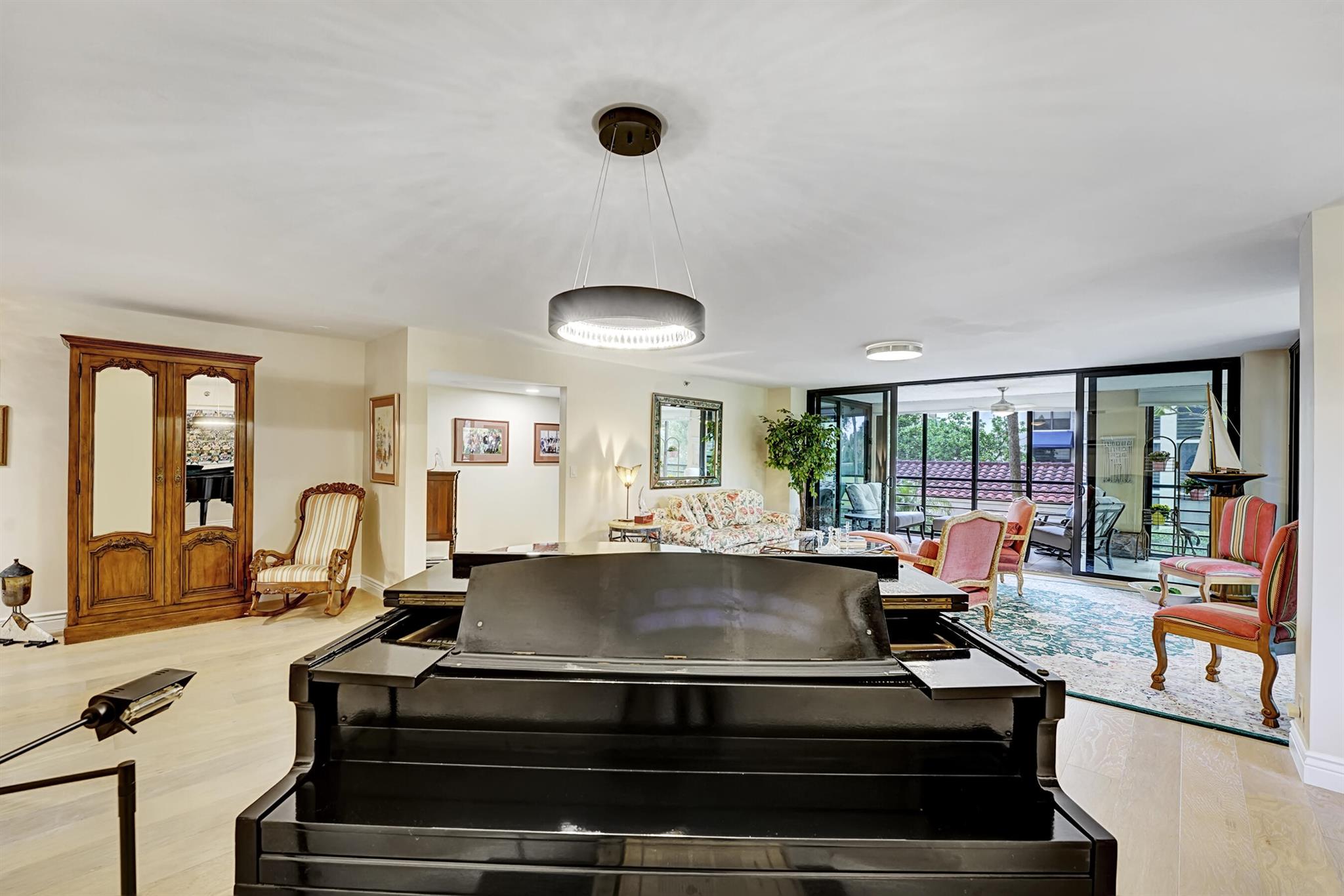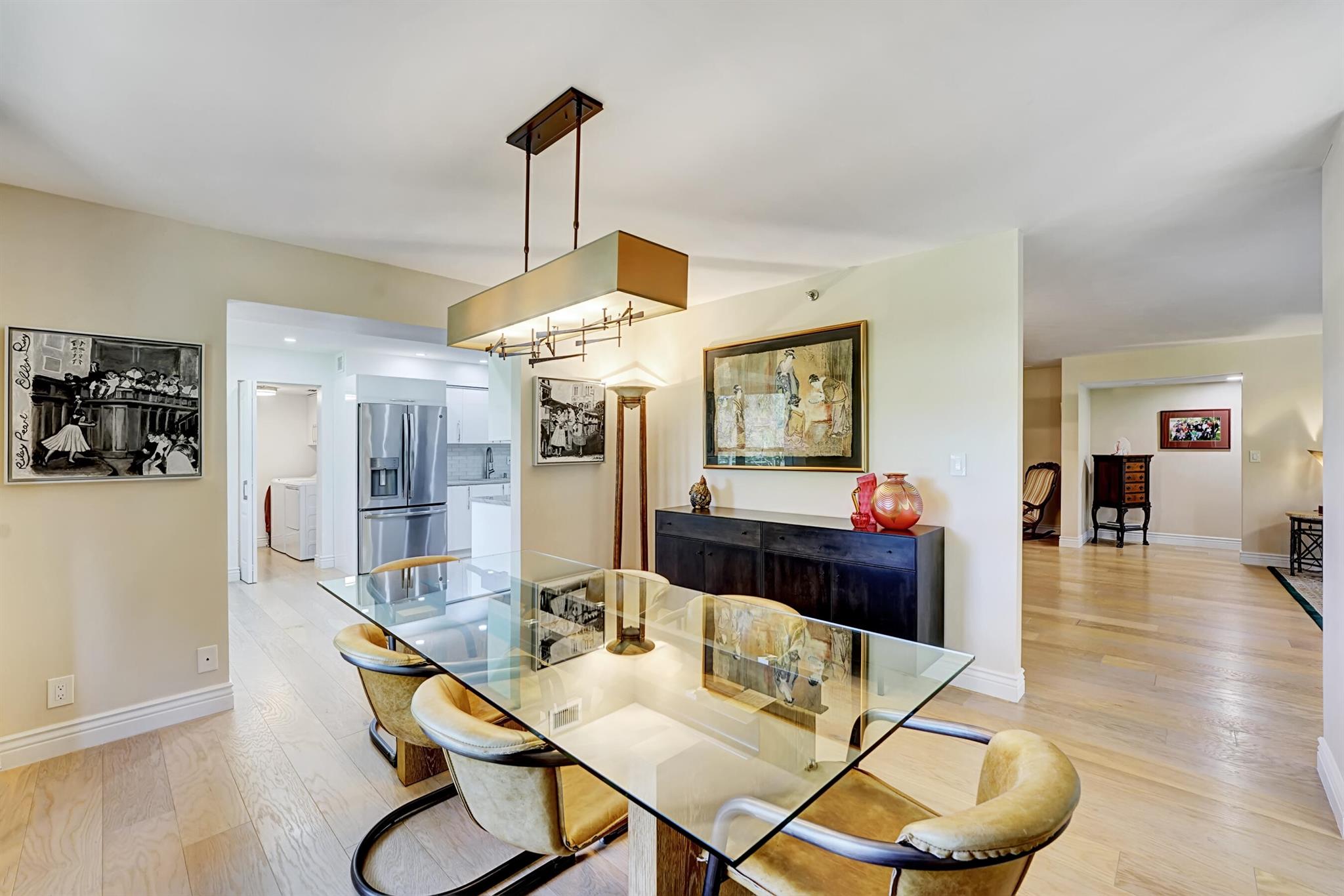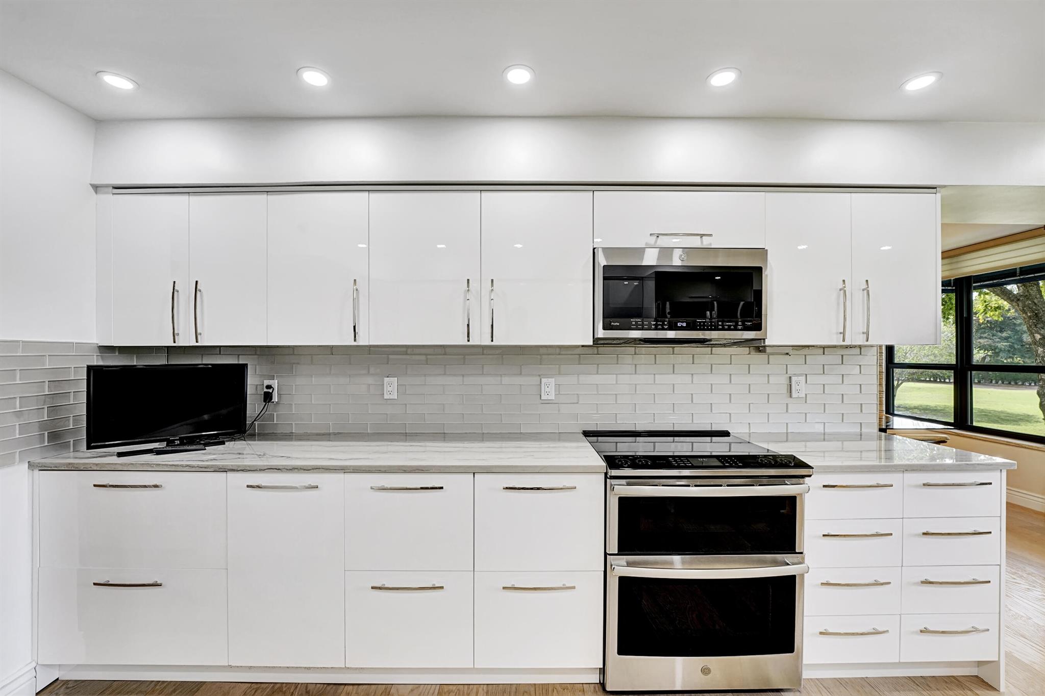 Don't miss the opportunity to own this stunning, move-in ready corner condo that lives like a private home. Completely renovated with meticulous attention to detail, this spacious residence has an expansive wraparound balcony with a gorgeous view of the golf course. Warm wood flooring flows throughout, complementing a host of luxury upgrades. The contemporary chef's kitchen is a true showstopper, featuring quartzite countertops, a double oven range, ample storage with easy-access drawers, a large walk-in pantry with shelving, and a built-in workstation overlooking the greens. The primary suite offers a spa-like bathroom with generous storage, an oversized shower, a high-end toilet, along with a massive walk-in closet outfitted with custom shelving.