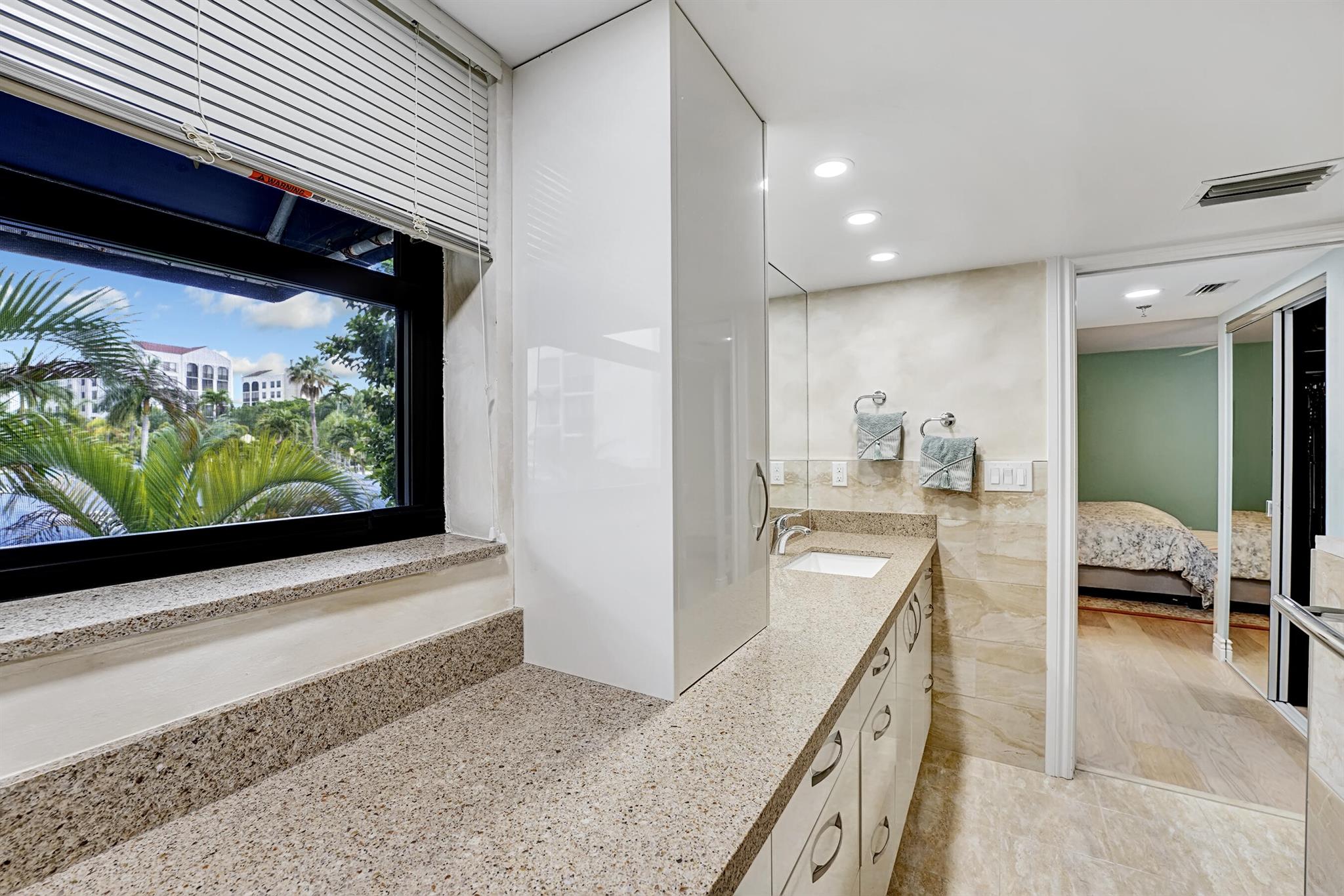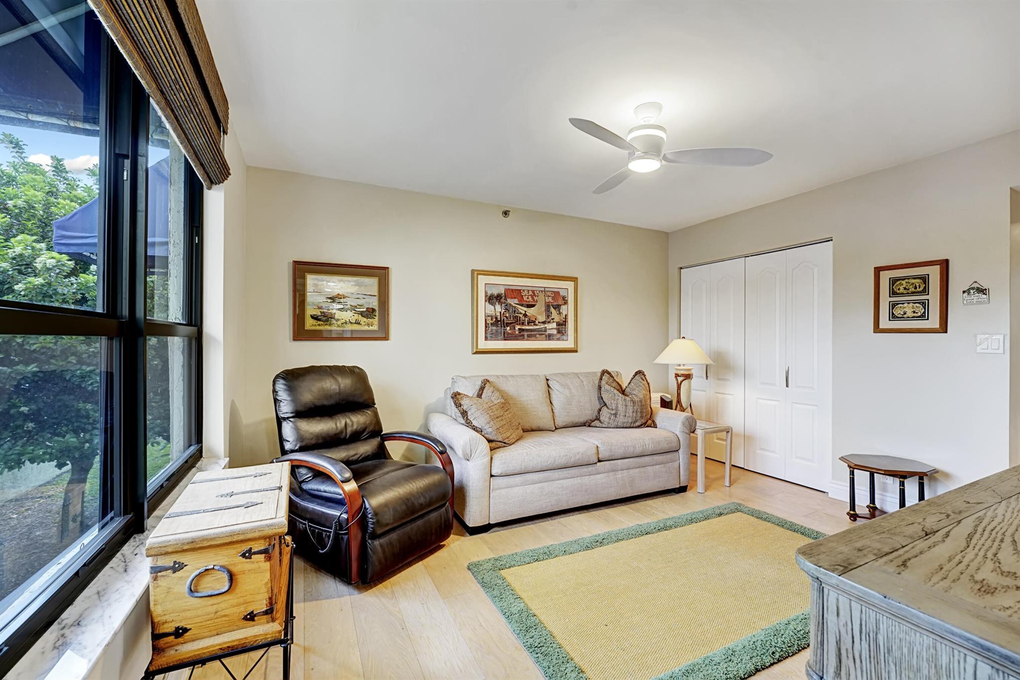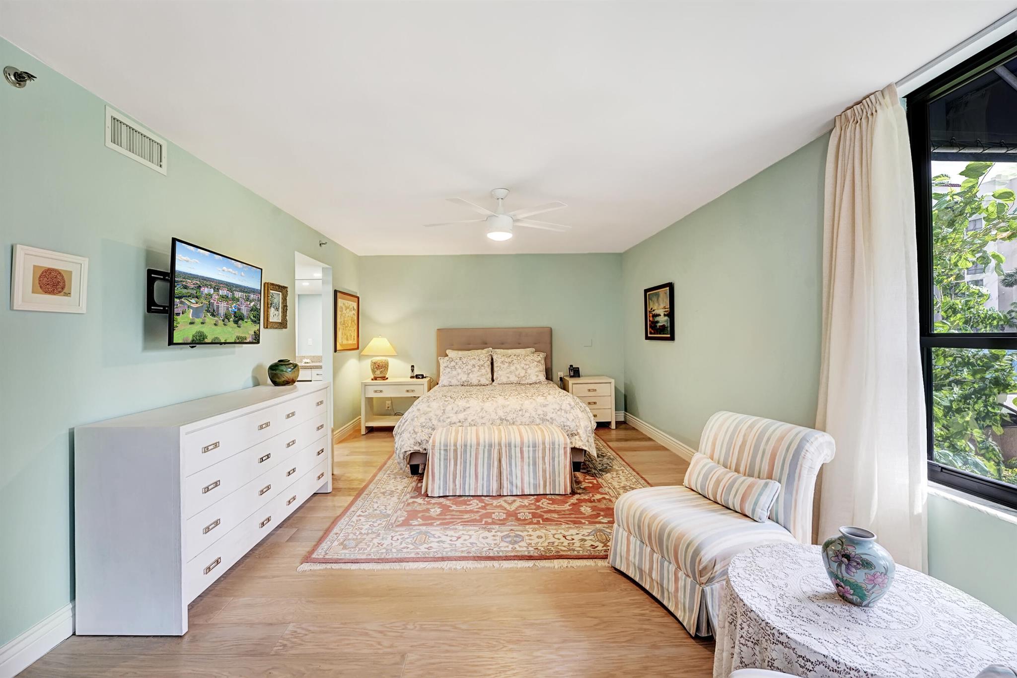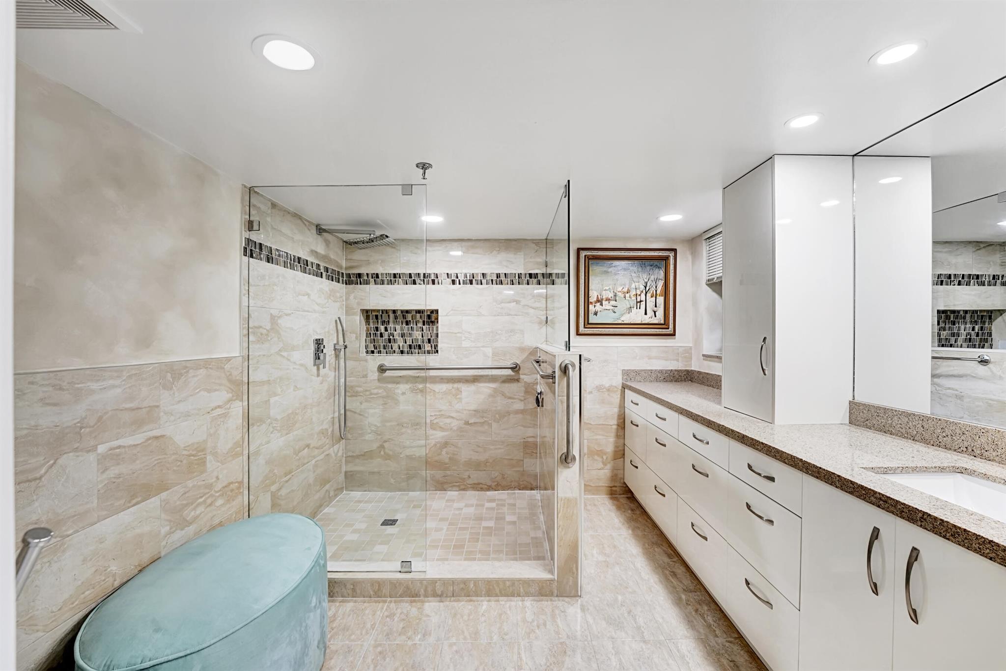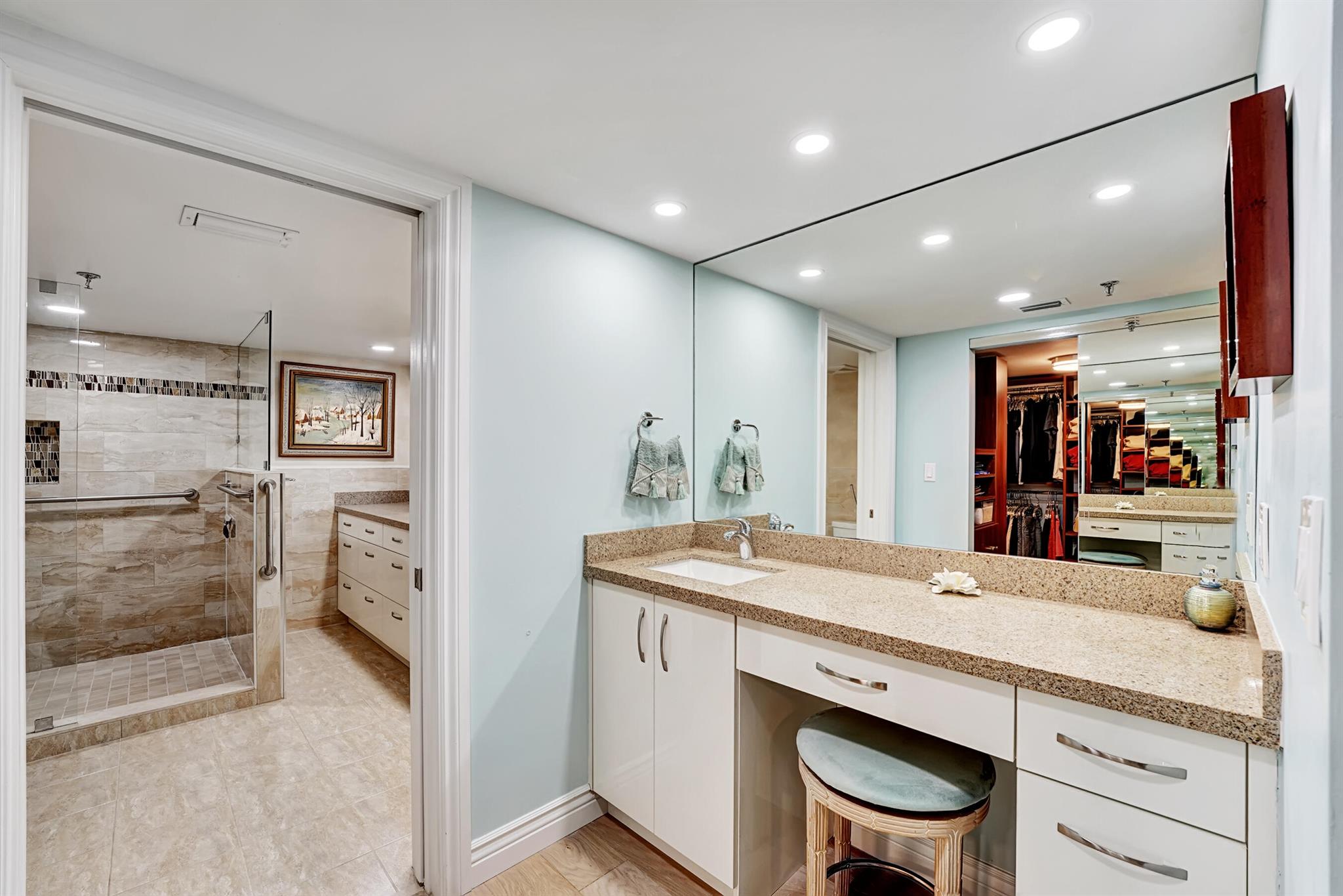 Don't miss the opportunity to own this stunning, move-in ready corner condo that lives like a private home. Completely renovated with meticulous attention to detail, this spacious residence has an expansive wraparound balcony with a gorgeous view of the golf course. Warm wood flooring flows throughout, complementing a host of luxury upgrades. The contemporary chef's kitchen is a true showstopper, featuring quartzite countertops, a double oven range, ample storage with easy-access drawers, a large walk-in pantry with shelving, and a built-in workstation overlooking the greens. The primary suite offers a spa-like bathroom with generous storage, an oversized shower, a high-end toilet, along with a massive walk-in closet outfitted with custom shelving.