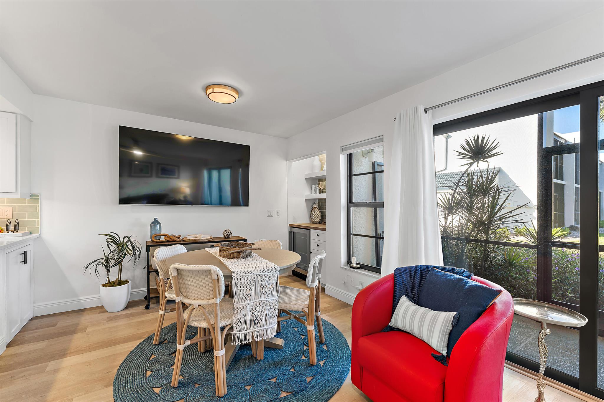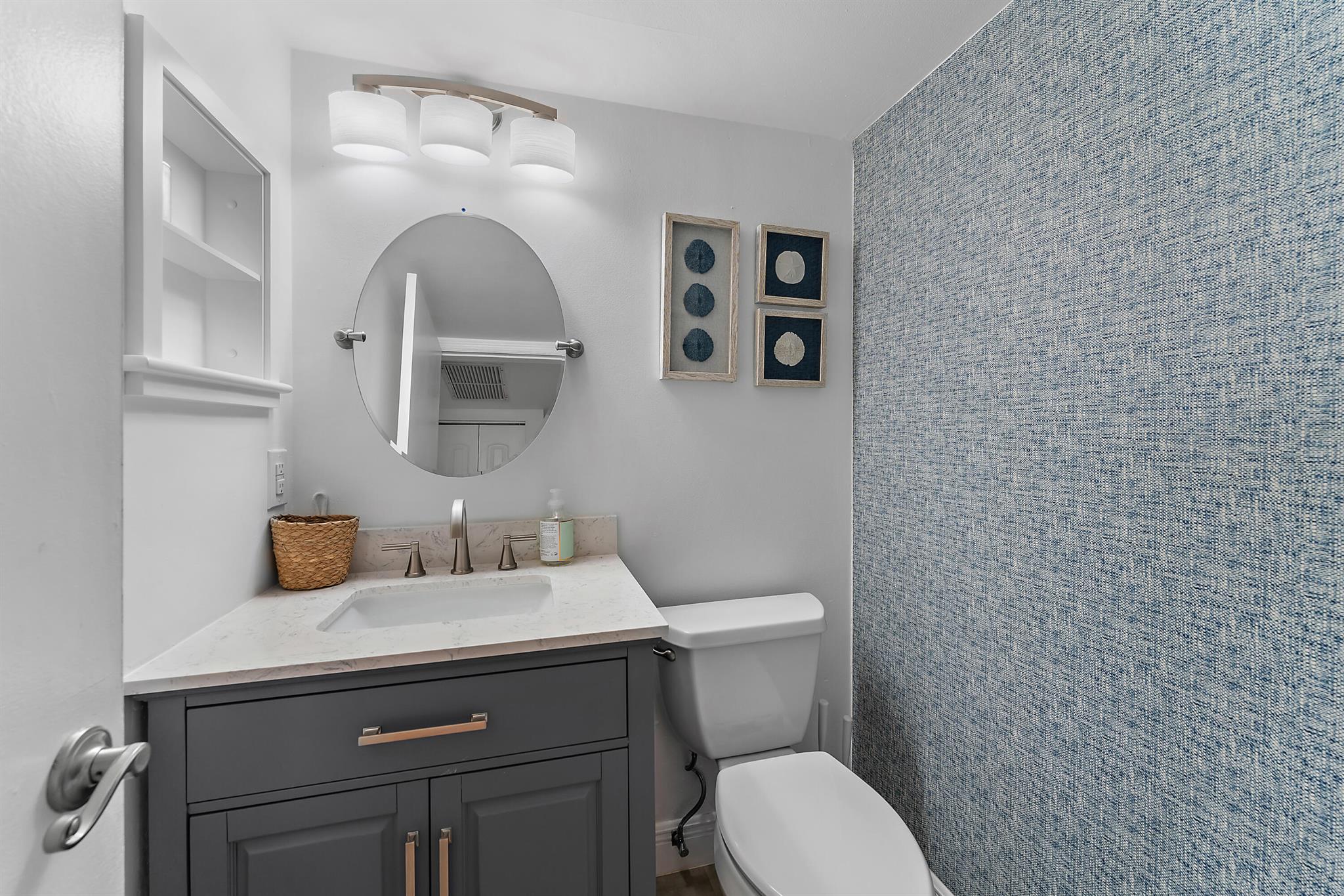 Located in Jupiter Ocean & Racquet Club, this 1-bedroom, 1.5-bath condo offers an updated and move-in-ready coastal living experience. Recent enhancements include a completely refreshed kitchen featuring refaced cabinetry, quartz countertops, and stainless steel appliances. The open living area includes a new sleeper sofa and an added bar with beverage center, providing flexibility for both daily living and entertaining. The home showcases luxury vinyl flooring throughout, a walk-in shower in the upgraded full bath, refreshed vanities in both bathrooms, and a spacious walk-in closet in the bedroom. Other functional upgrades include impact windows and sliders, a 2021 roof, 2021 AC, and a 2019 water heater. Enjoy your morning coffee on the peaceful, north-facing patio