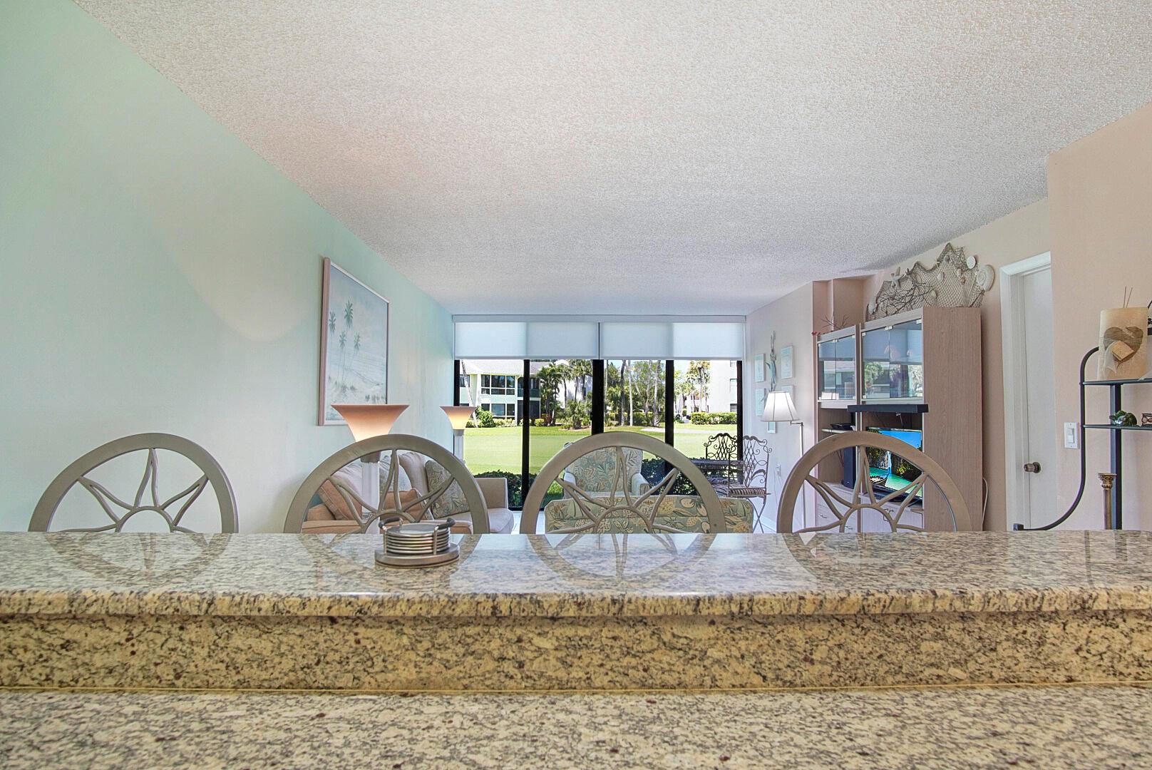 Beautiful furnished 1 bedroom, 1 bath condo has been upgraded to include granite kitchen counter top, new vanity, new bedroom flooring & extra storage. New AC in 2023, new washer dryer 2023, new roll down shades on lanai area. Extended living room with great views of the golf course. Just 7 minutes walk to the ocean!! Enjoy beautiful Ocean Village and the many amenities it has to offer including 3500 feet of private beach, 9-hole 3 par golf course, bocce ball, shuffle board, pickleball, tennis, multiple pools and hot tubs, new fitness center and clubhouse, NEW restaurant and tiki bar, NEW resort style main pool 2025, 24 hour gated community and close proximity to downtown Ft. Pierce and the inlet.