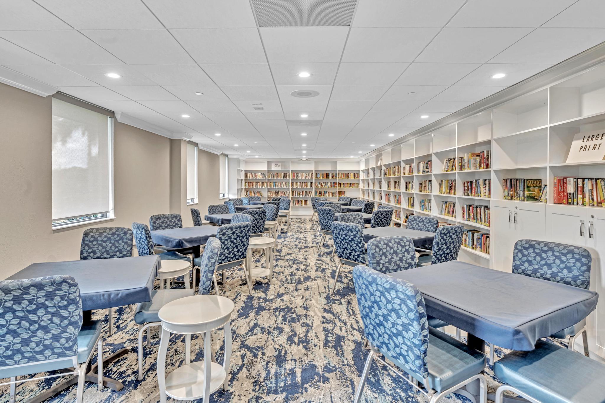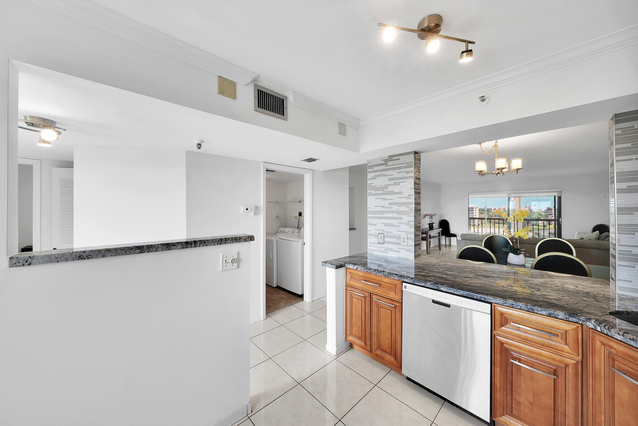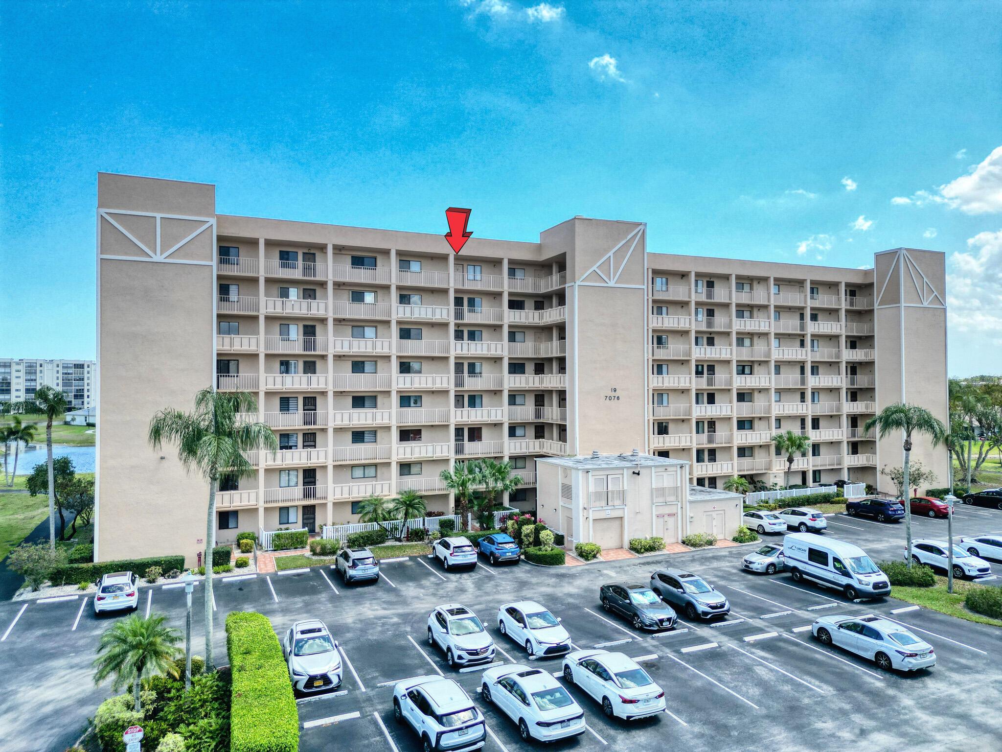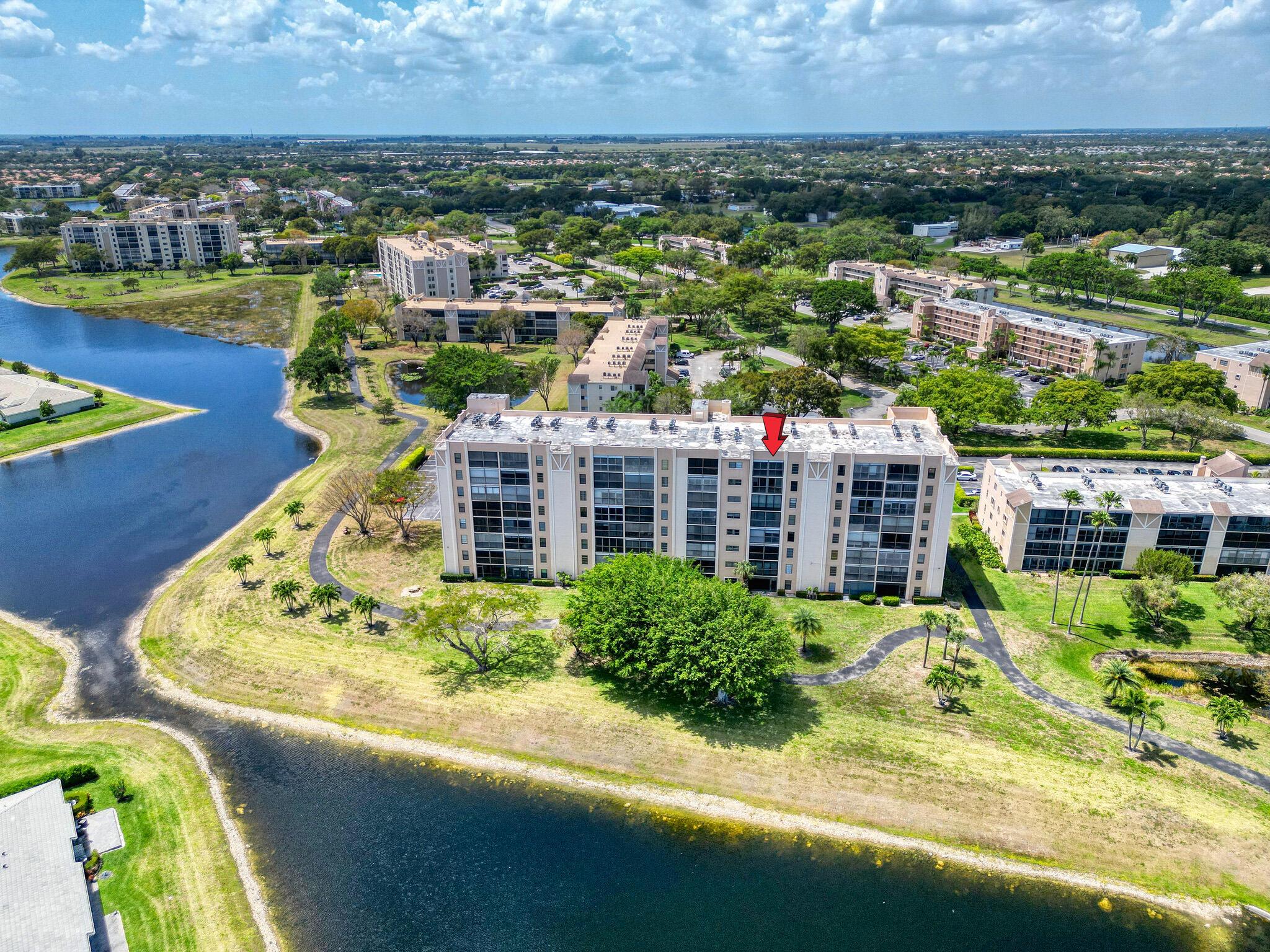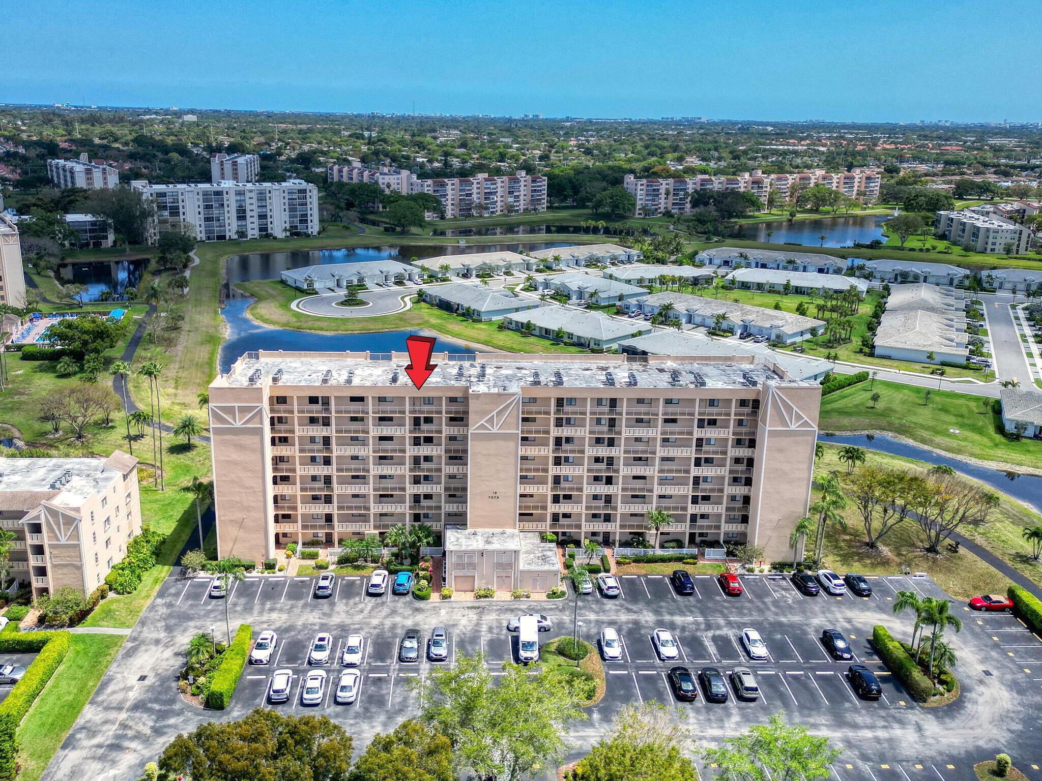 Don't miss this top-floor penthouse (8th floor), updated 2 bed, 2 bath condo in the desirable Huntington Lakes community with stunning water views. This bright, open-layout unit features ceramic tile floors, granite countertops, and a large eat-in kitchen. The spacious primary suite includes two walk-in closets and direct access to a screened, covered balcony shared with the living room. Partially furnished with in-unit laundry, ample storage, and an extra storage unit. The building has two elevators and is steps from the outdoor pool. Enjoy a newly renovated clubhouse with an indoor Olympic-size pool, theater, fitness center, game rooms, tennis, pickleball, and more. Resort-style 55+ living at its best!