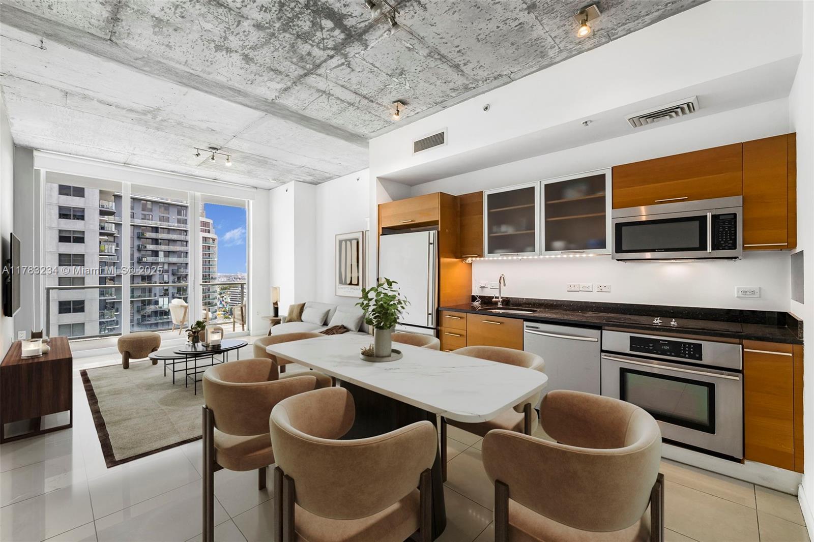Perched high on the 27th floor, Residence H2706 at 2Midtown is a modern 1-bed, 1-bath condo offering soaring 10’ ceilings, floor-to-ceiling windows, and a spacious terrace with stunning sunset views. Enjoy a thoughtfully designed layout featuring a walk-in closet, in-unit washer/dryer, and assigned garage parking. Residents have access to premium amenities including a heated pool, hot tub, spa, steam room, sauna, fitness center, 24/7 concierge, security, bike storage, and EV charging stations. Located in the heart of Midtown, just steps from the Design District’s top dining, shopping, and nightlife—this is urban Miami living at its best.