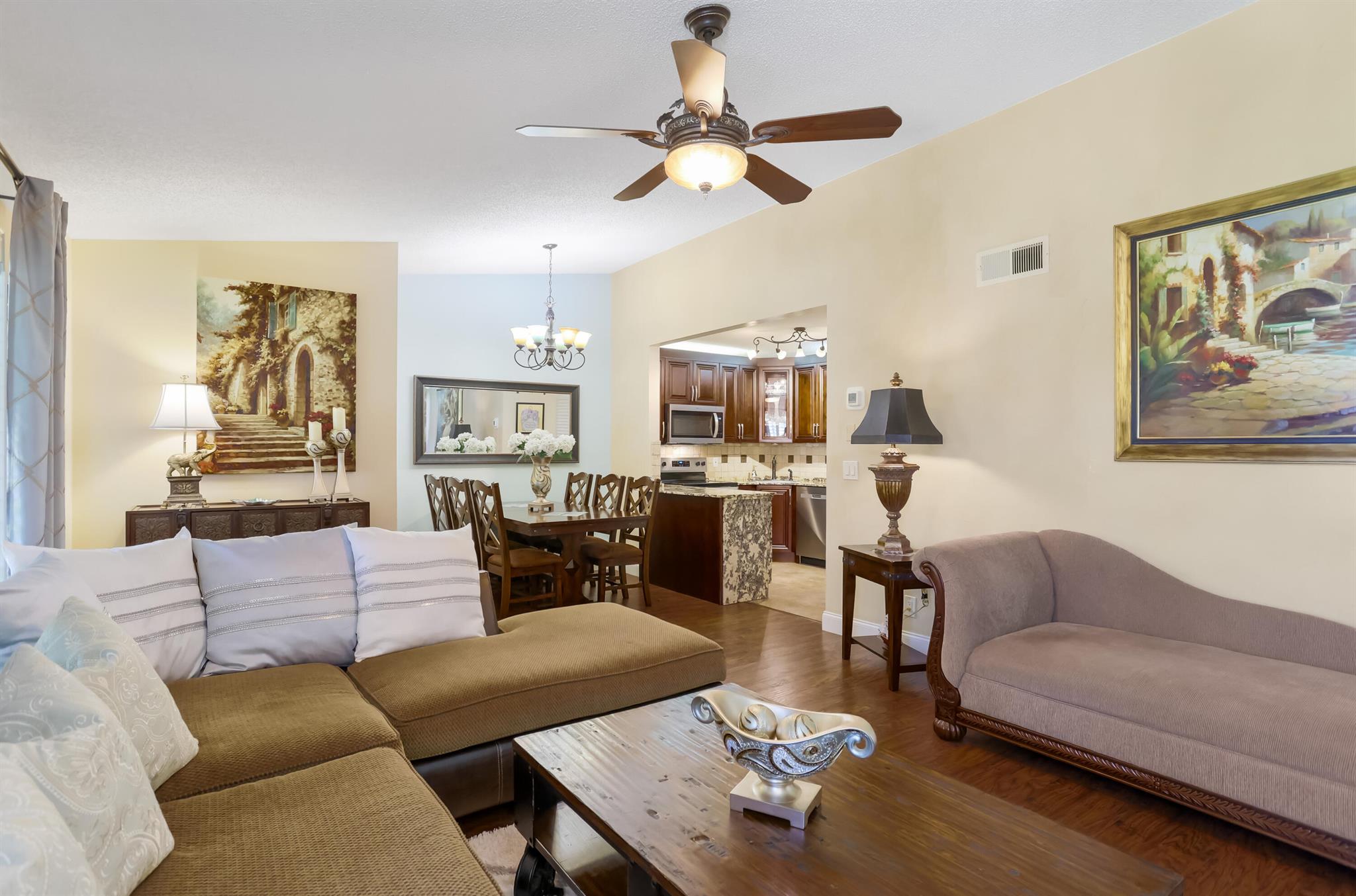 Impeccably upgraded and super clean retreat in perfect condition! Fall in love with this meticulously maintained 2nd/top floor condo offering a blend of luxury and convenience. The heart of this home is the exquisite kitchen, featuring rich solid wood cabinetry, beautiful granite countertops, and sparkling new appliances. Hi-quality laminate flooring flows throughout, leading to beautifully appointed bathrooms with floor-to-ceiling tile work. The spacious living room is enhanced by a vaulted ceiling and a sophisticated Venetian plaster feature wall, creating a truly inviting atmosphere. Step out onto your unique balcony, offering the flexibility of open-air enjoyment with screens or year-round use with sliding glass doors closed. New roof! For added ease, the condo can be fully furnished.
